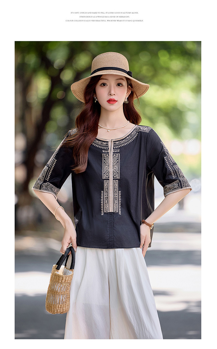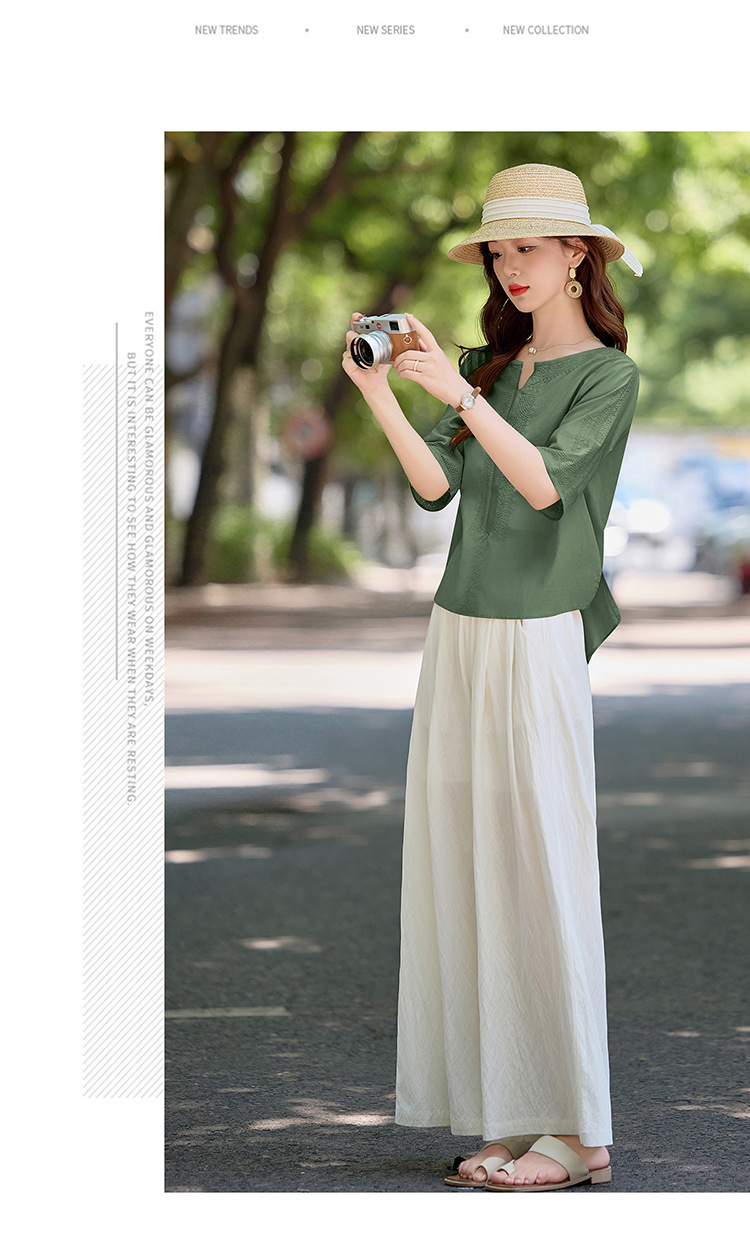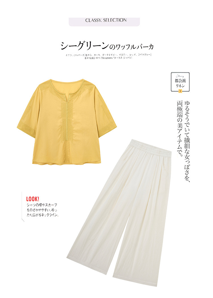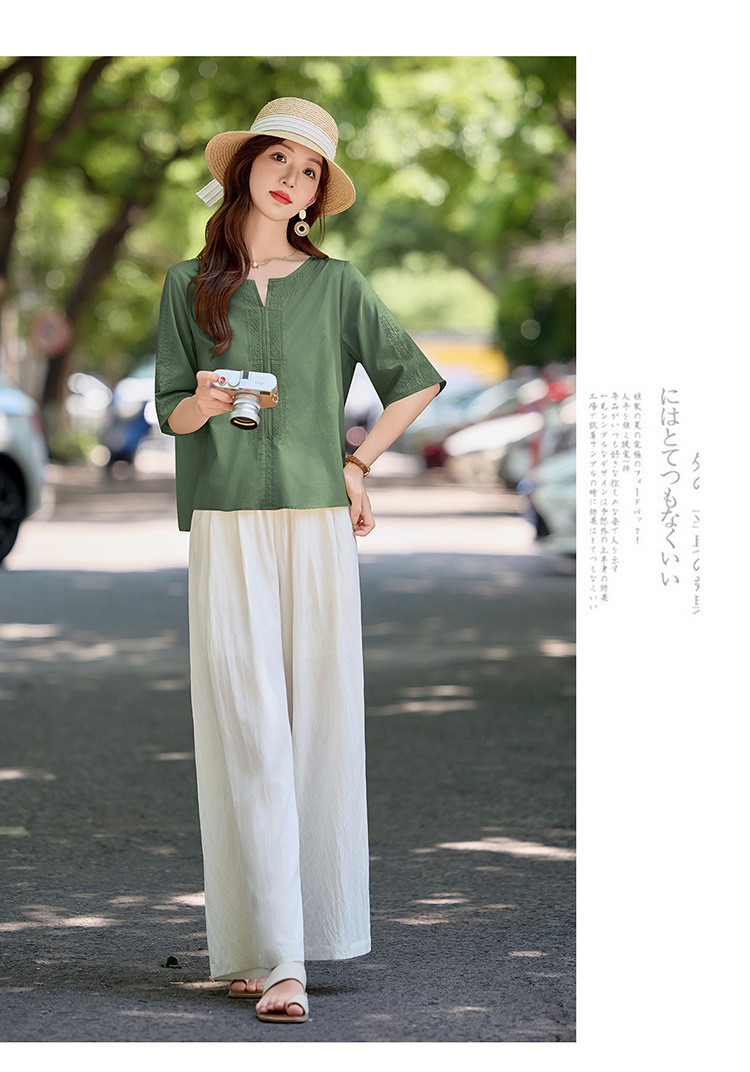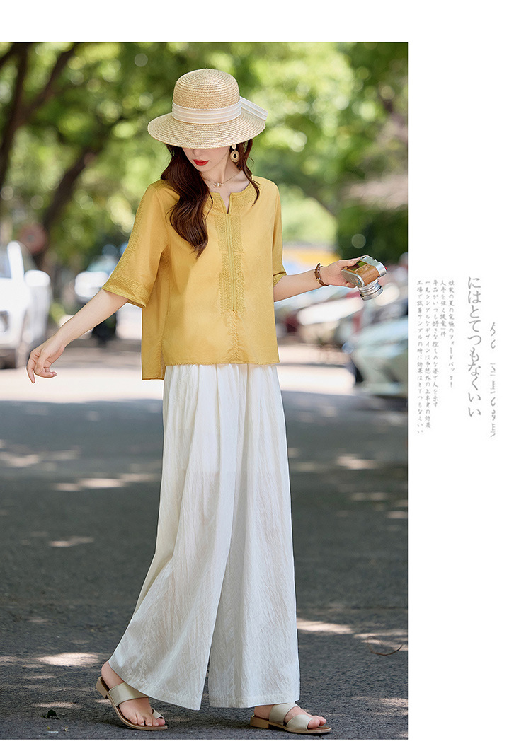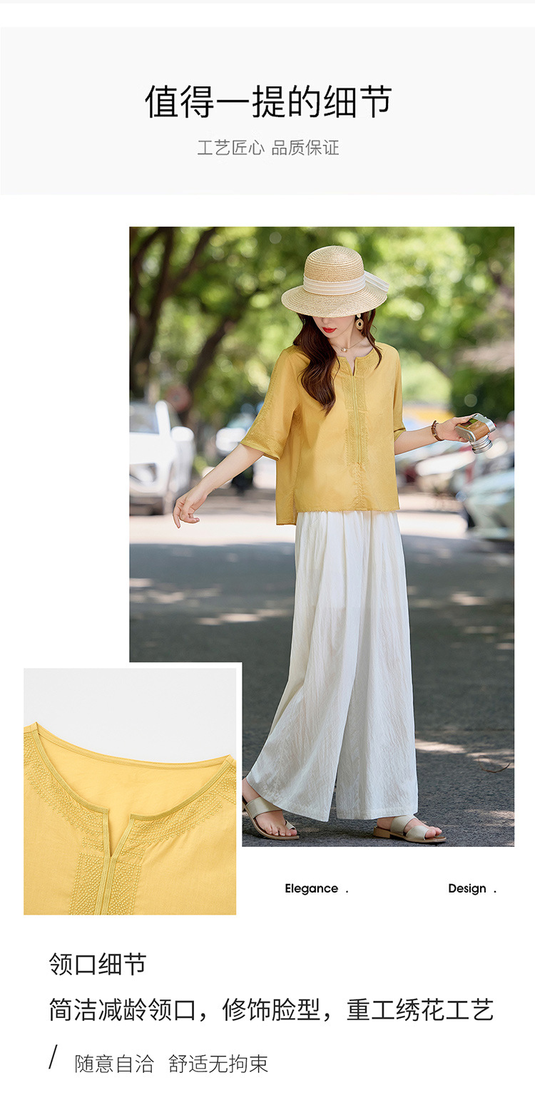 YLFS9015夏季新款棉麻套装女印花上衣坠感阔腿裤两件套宽松显瘦遮肉休闲潮