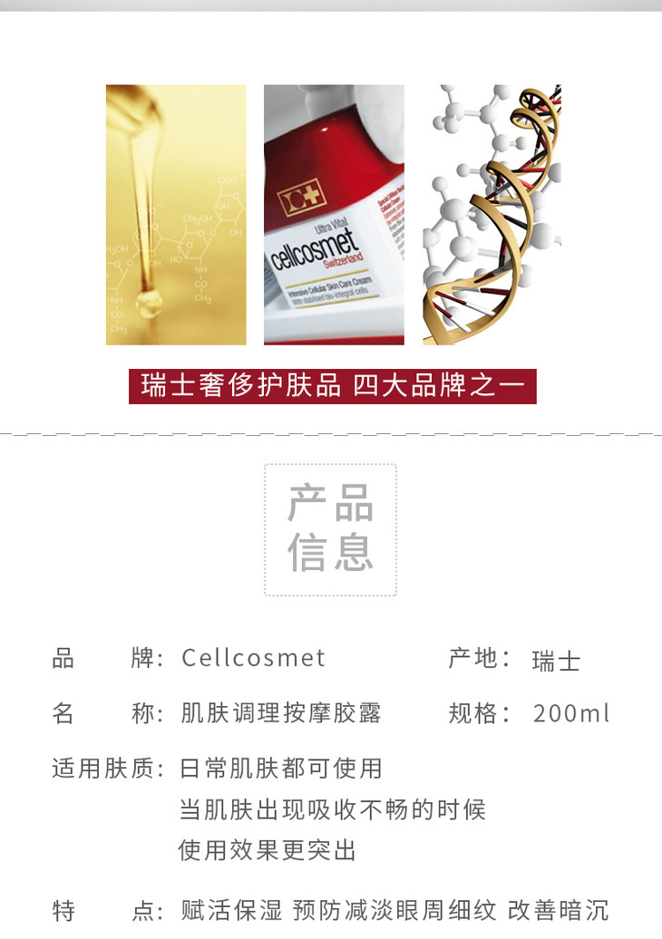 瑞士Cellcosmet瑞妍肌肤调理按摩胶露 200ml