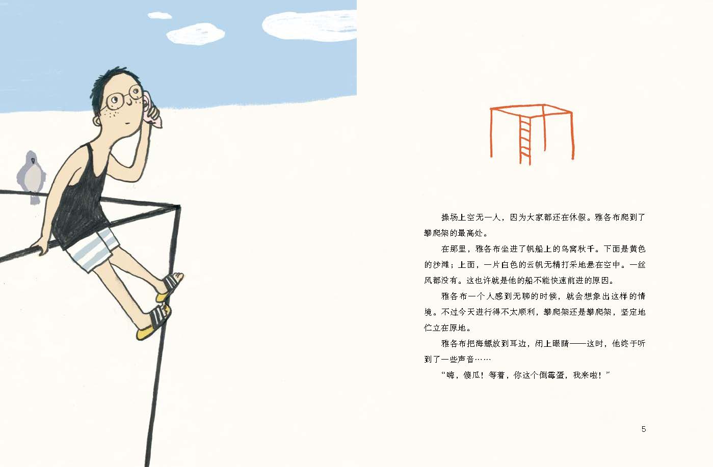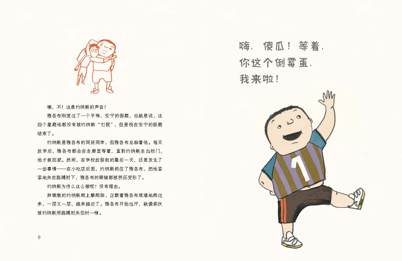 雅各布是一个性格内向、顺从、胆小的孩子,他不爱讲话,喜欢一个人沉浸在想象的世界里;约纳斯是一个内心敏感、容易冲动的孩子,他成绩不太好,有时候会动手欺负同学。他们的互动就像两人一同参与到想象游戏中那样,通过象征性的交流,让雅各布变得勇敢、自信;让约纳斯主动反思了自己的行为,卸下了“武装”;也让他们产生共情心理,重新认识了彼此。这两个角色的形象很有代表性,他们的故事也会给读者也带来治愈和成长。
