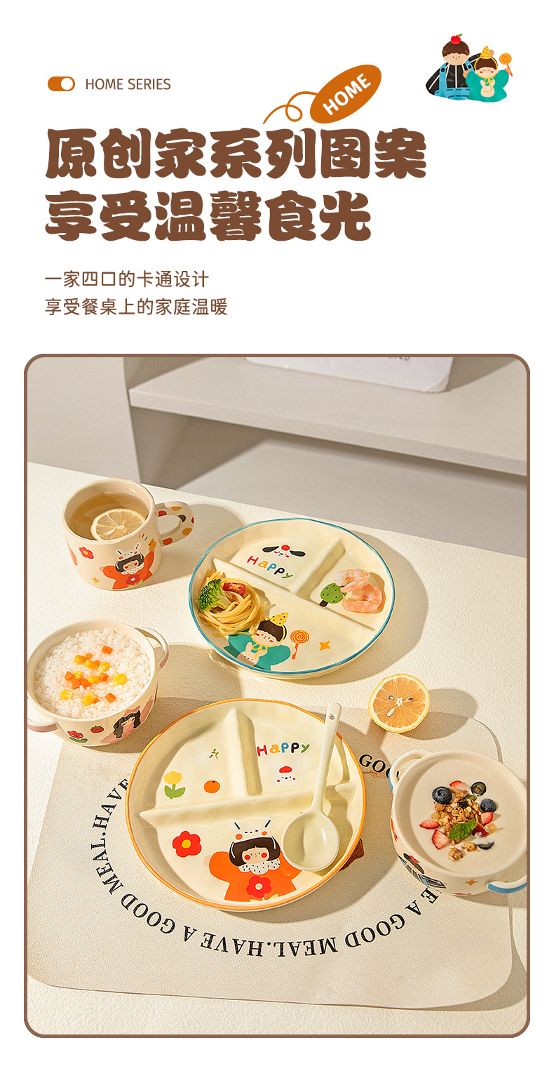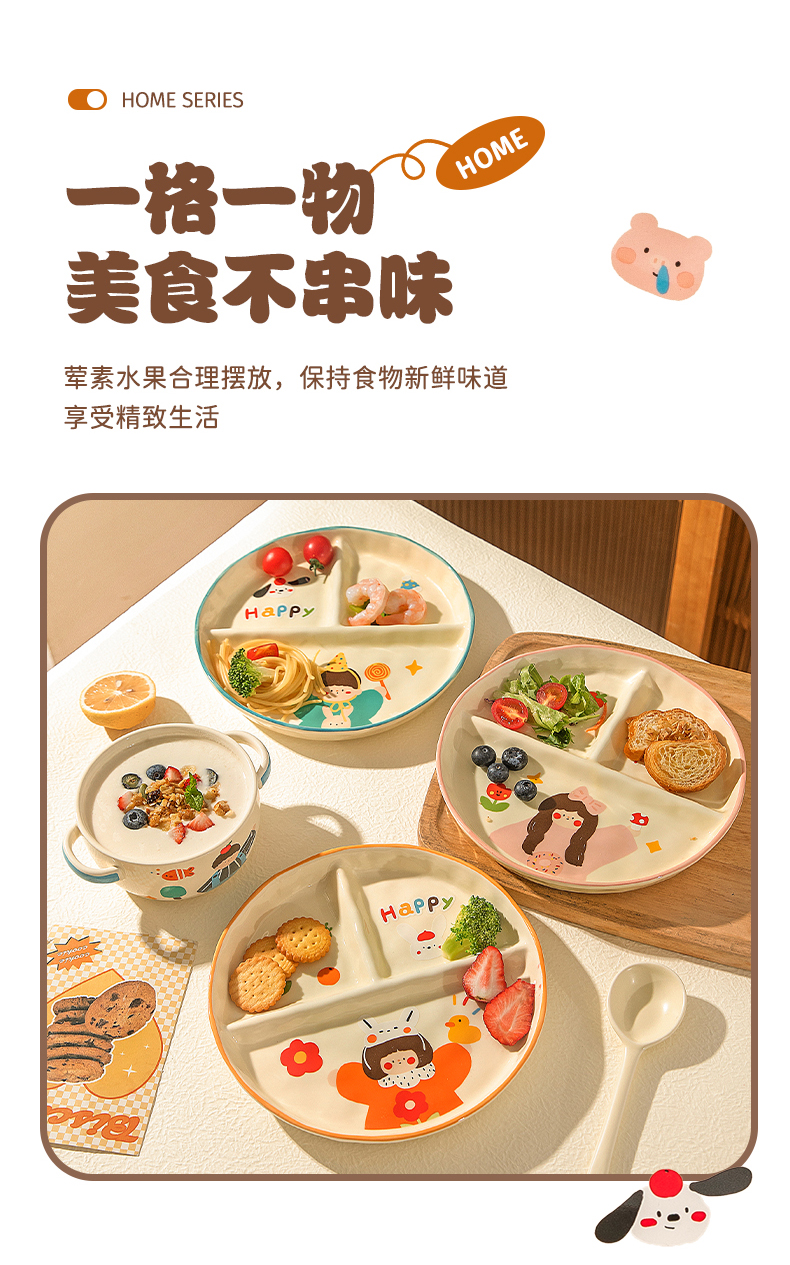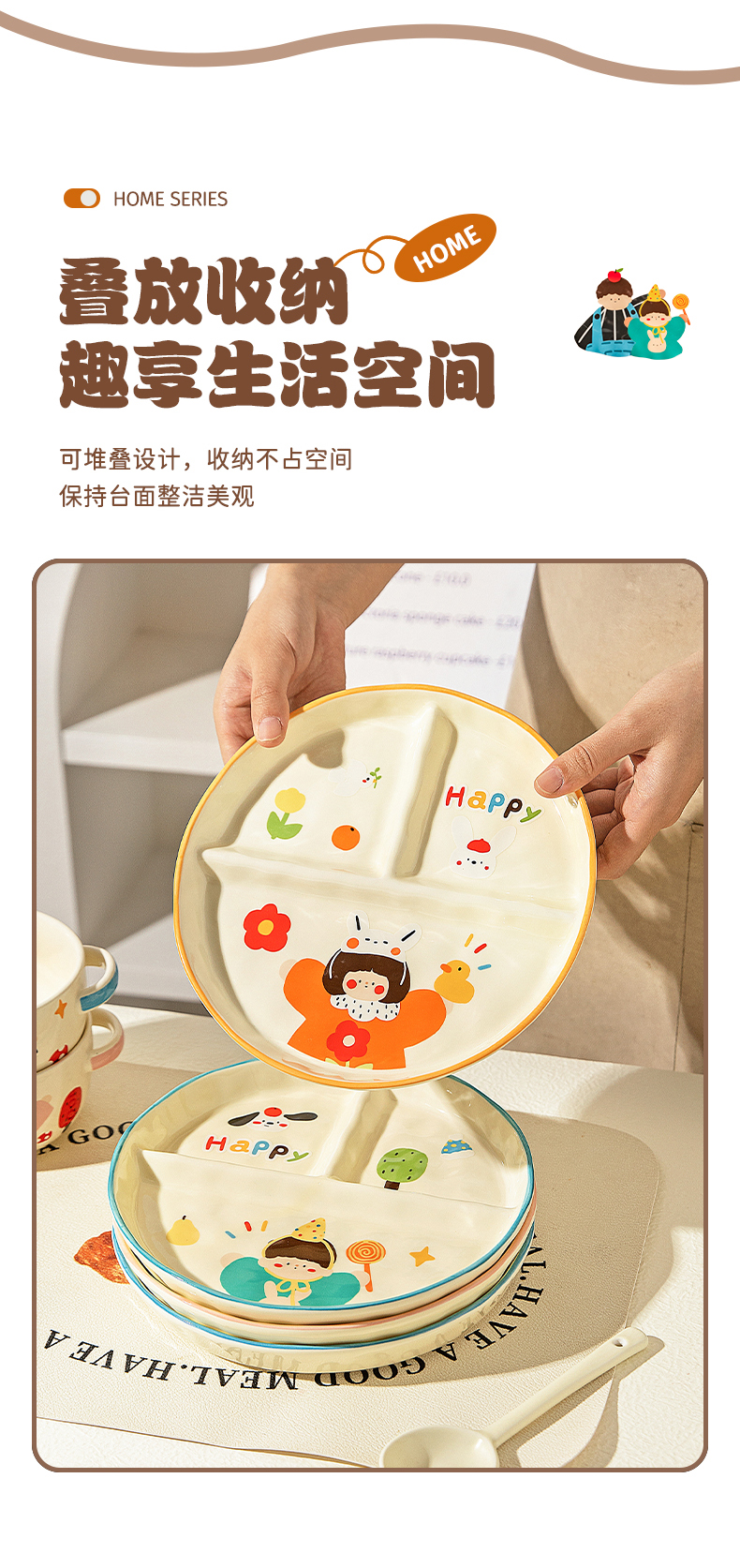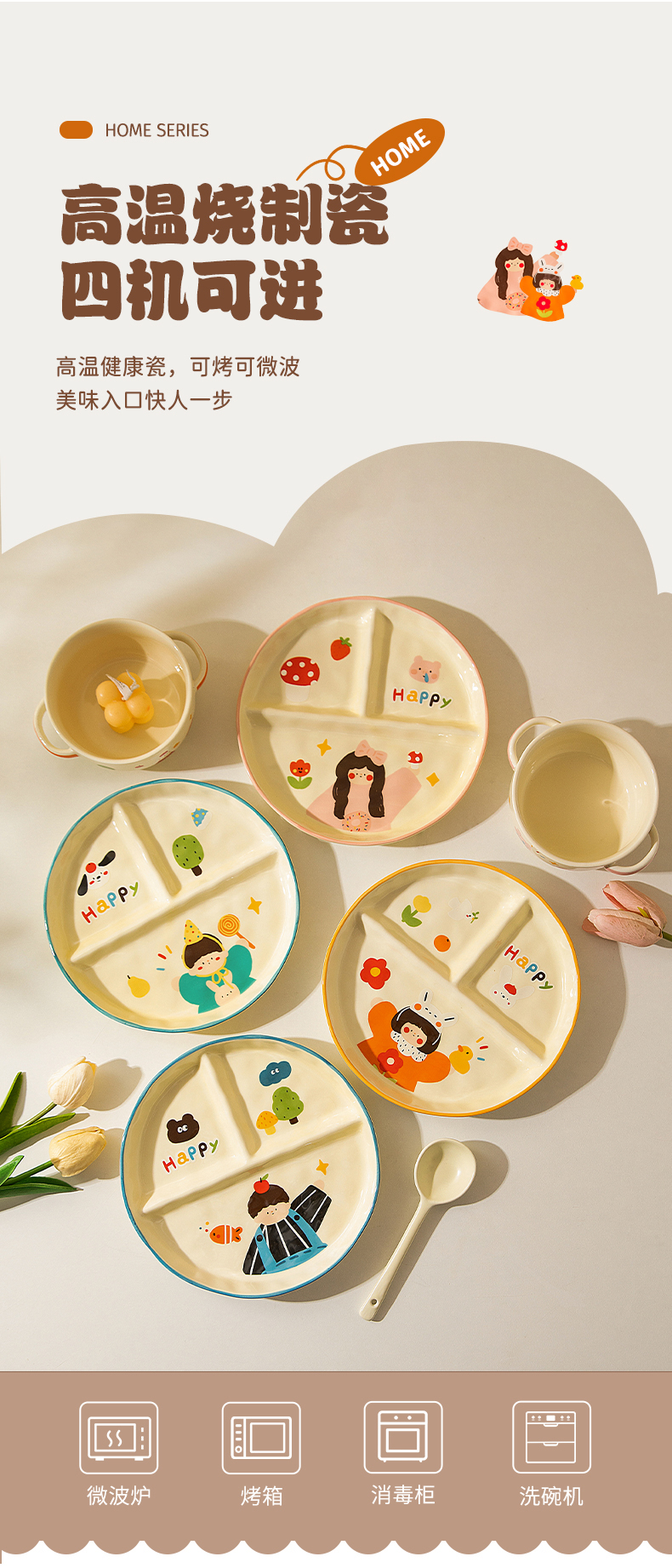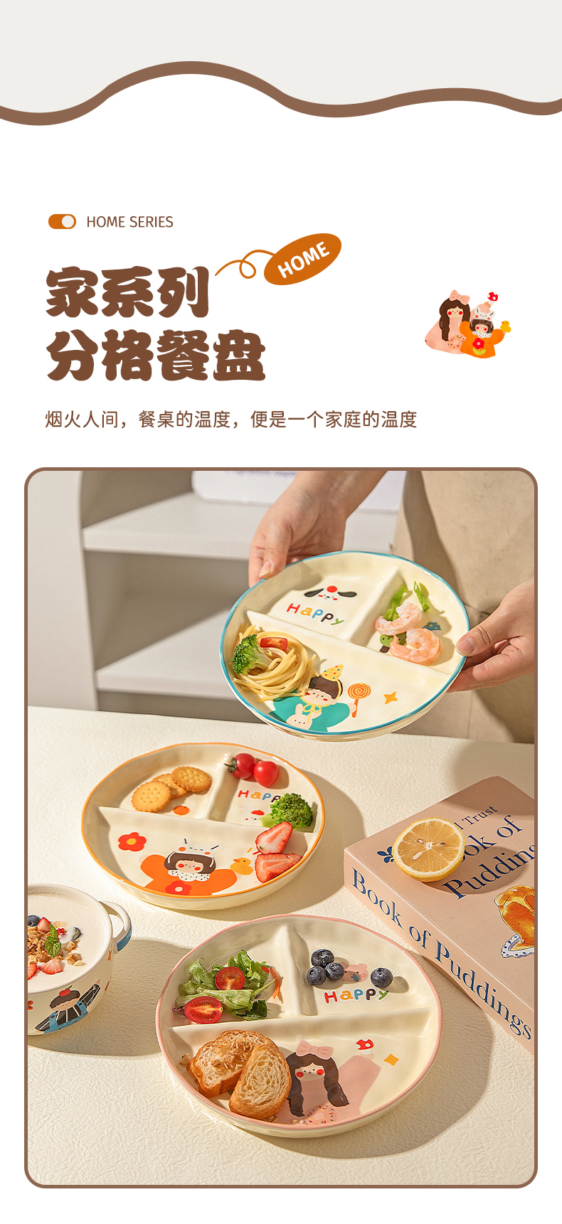 摩登主妇一家三口陶瓷分格餐盘儿童餐具大人减脂家用水果早餐盘子