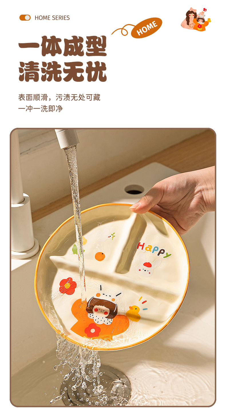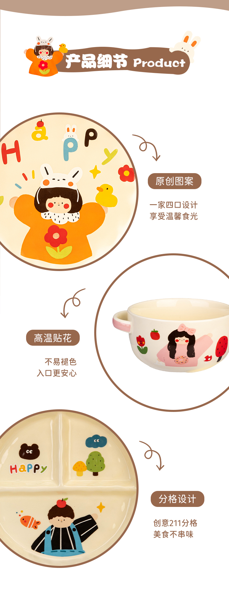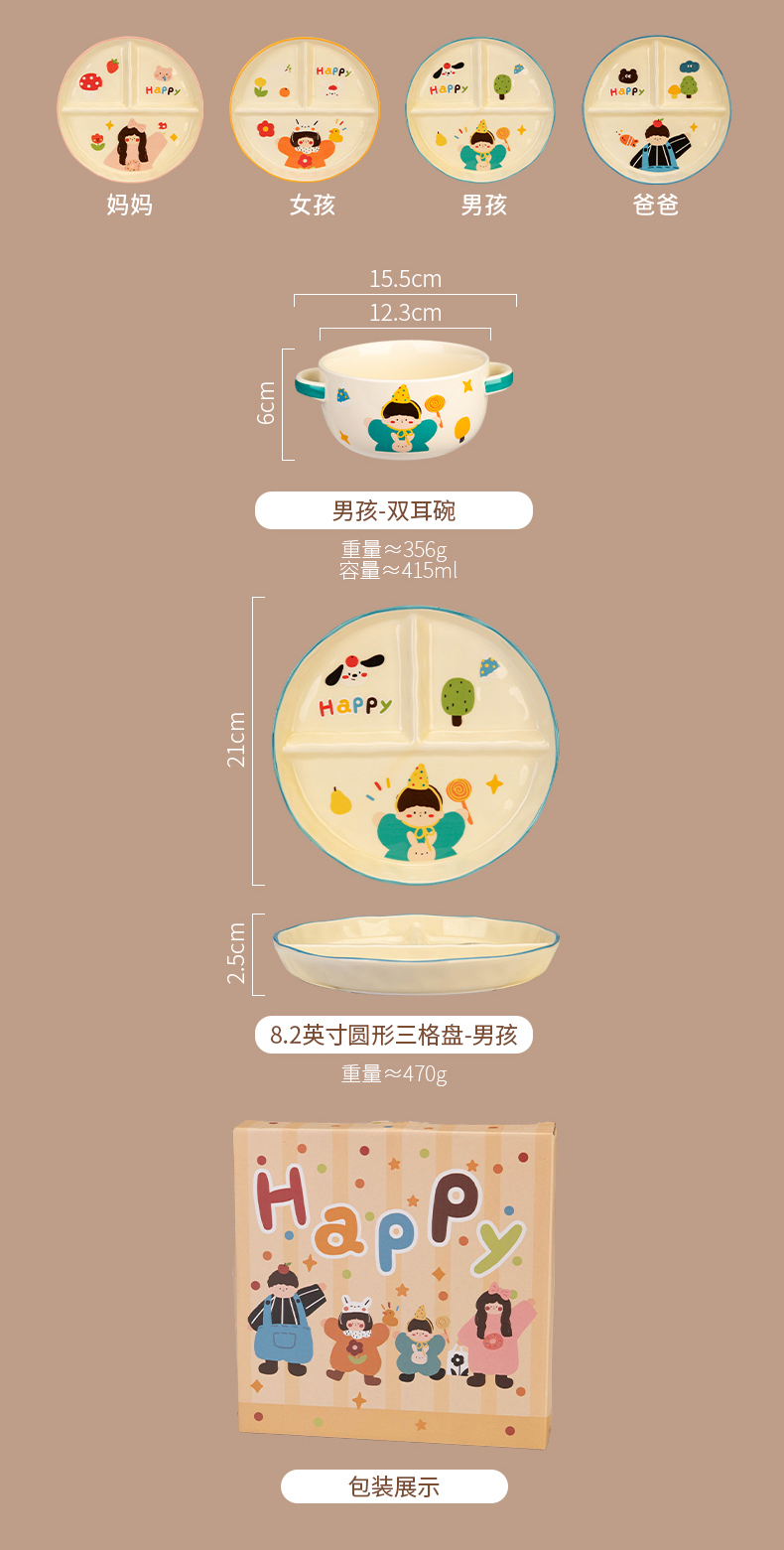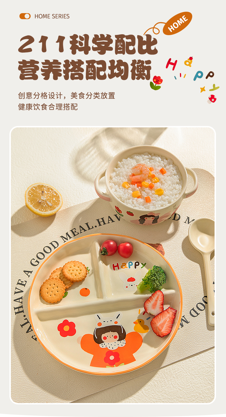 摩登主妇一家三口陶瓷分格餐盘儿童餐具大人减脂家用水果早餐盘子