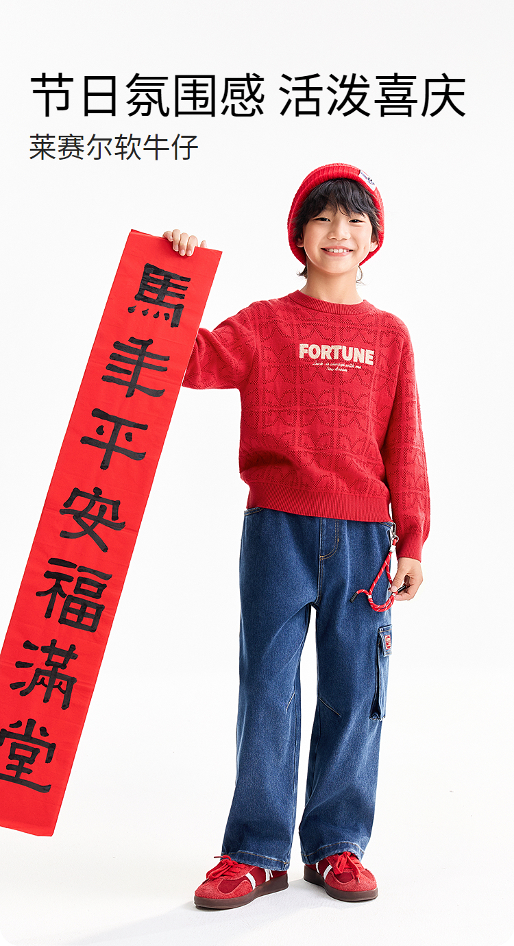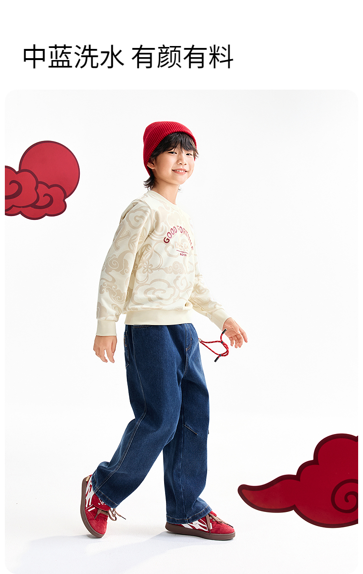 【实体店同款】男童全腰梭织牛仔单裤春季新款安奈儿童装AB616013