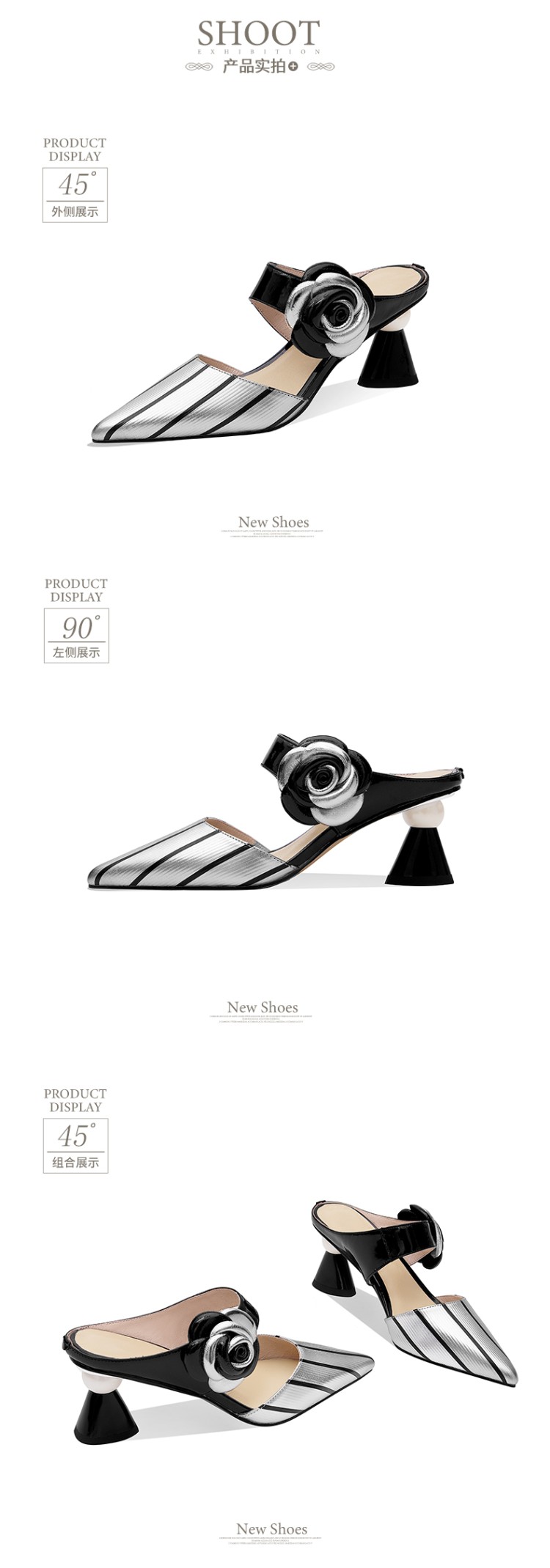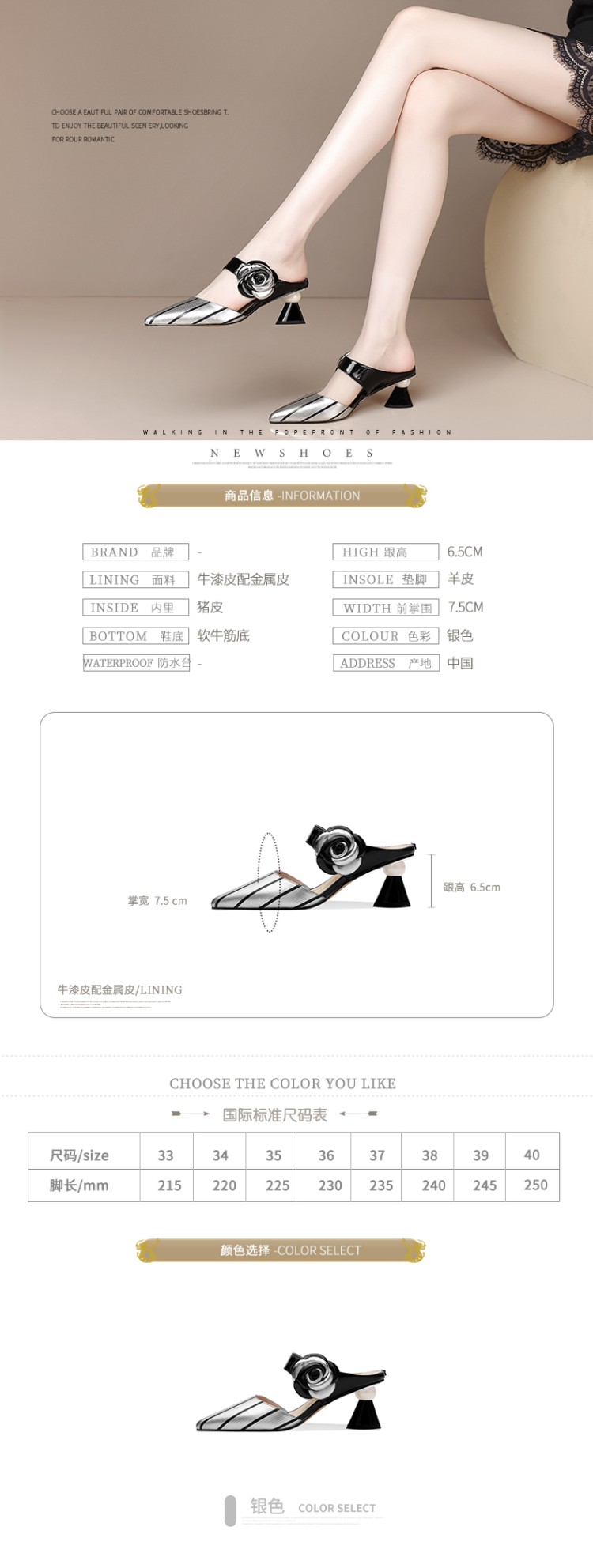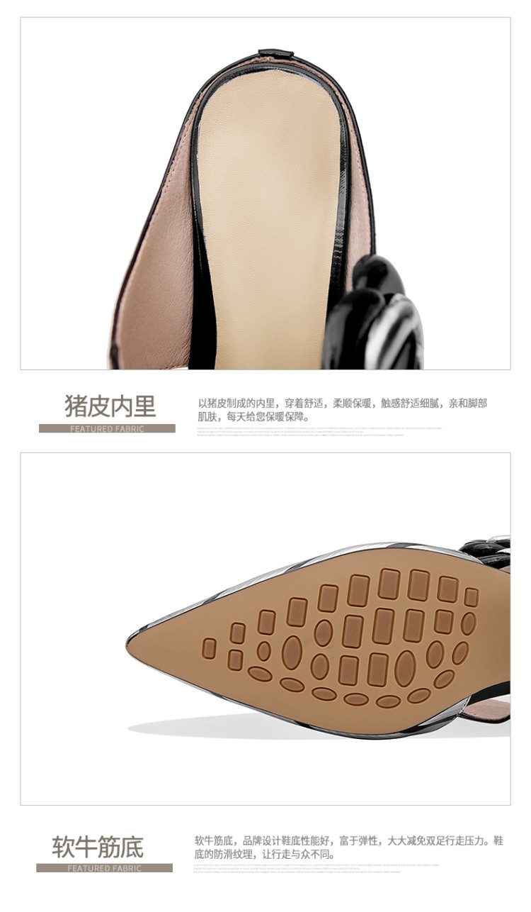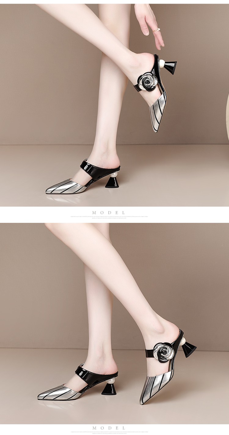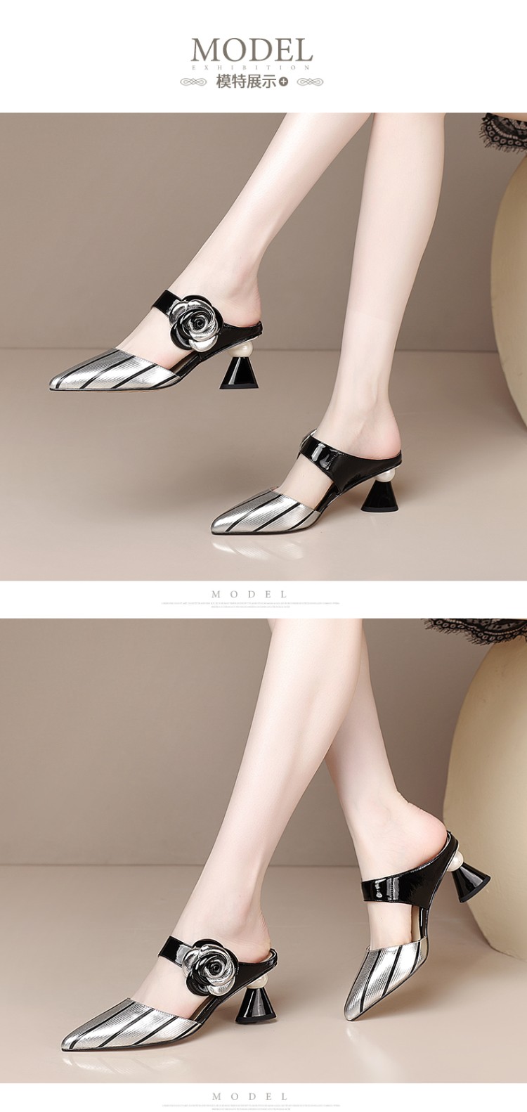粗跟高跟尖头水钻包头凉拖鞋,女外穿半拖鞋懒人拖 LD-9044