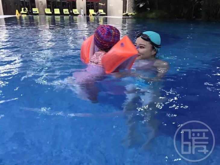 ▽2017年5月,去莫干山,快5岁的暖暖仍然穿着这套最喜欢的红色星星款泳衣。我们在恒温泳池里玩了一下午