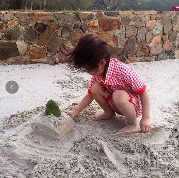 ▽2016年3月在民丹岛,专心致志玩沙子,还是穿着红色星星款