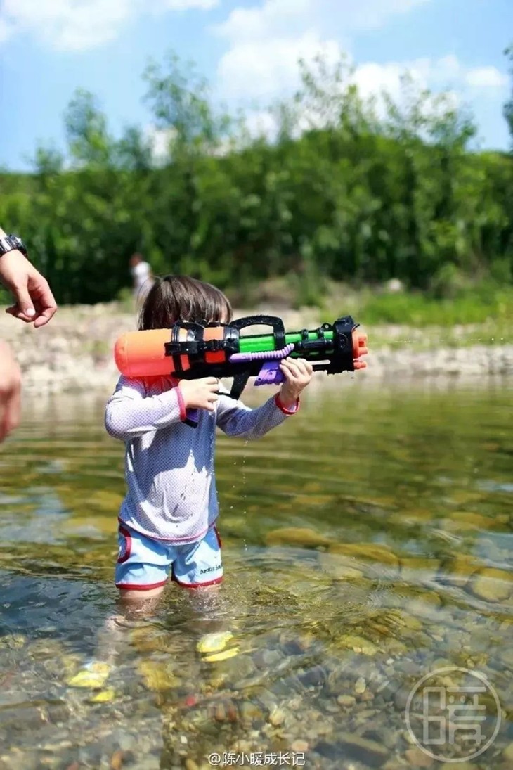 ▽2015年7月在河北兴隆,因为有泳衣和遮阳帽保护,可以尽情撒欢,她玩得超开心~