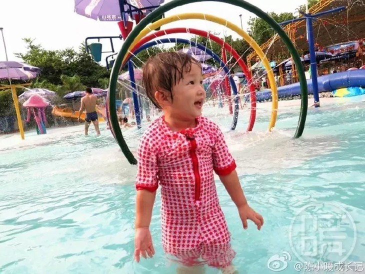 ▽这是14年8月带她去深圳水上乐园玩的时候拍的,那天玩了一下午一点没黑。那个时候暖暖还有点肉乎乎的感觉,不过泳衣弹力很大,完全不会觉得勒。玩尽兴了抱她起来,不到5分钟就干透了。