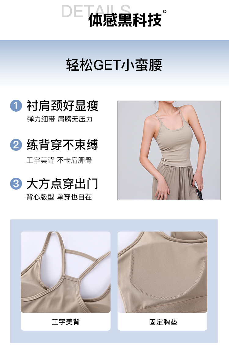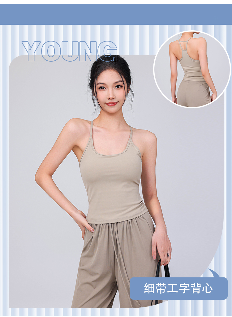 【限时秒】YOGACODE【火树银花系列】运动背心女带胸垫免穿内衣吊带上衣细肩带工字美背一体式瑜伽背心