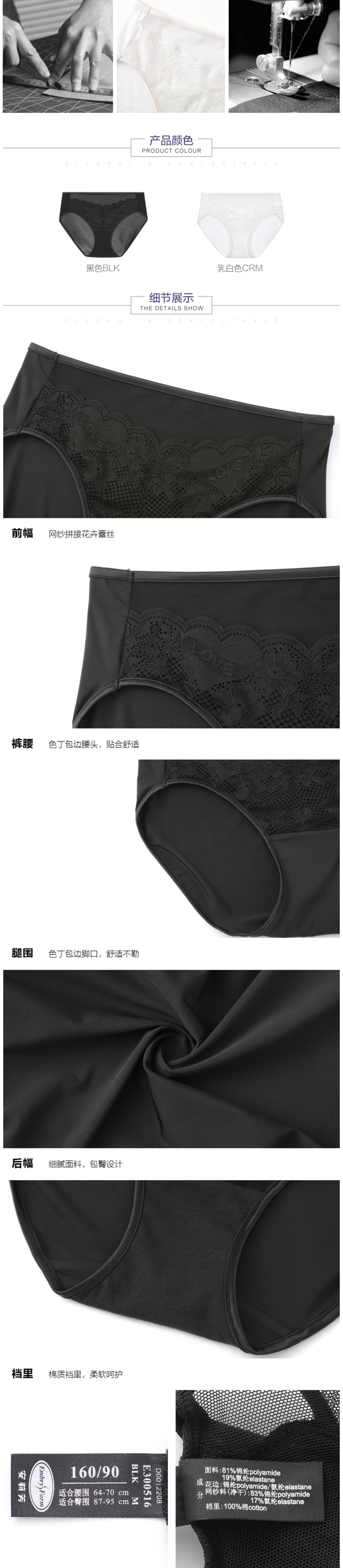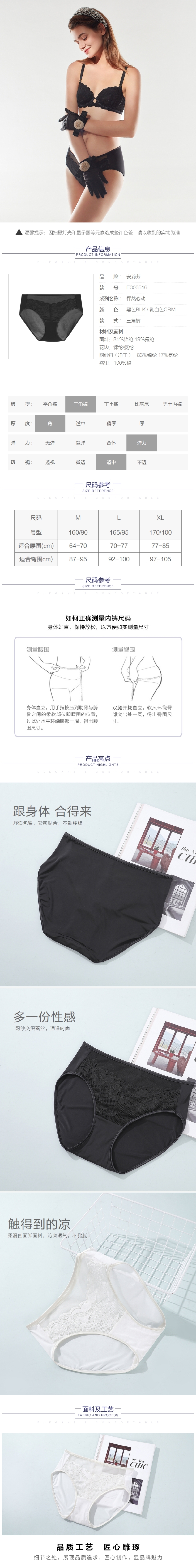 安莉芳冰丝薄款纯棉底裆内裤女士性感蕾丝中腰三角裤E300516
