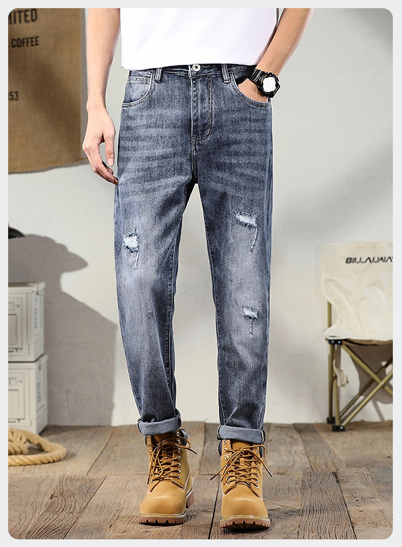 【新款DYG】大依优型大码潮款破洞牛仔裤长裤舒适休闲简约百搭加肥加大男装