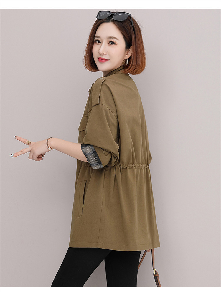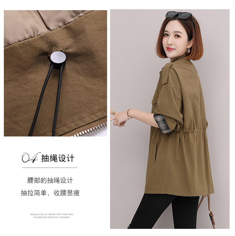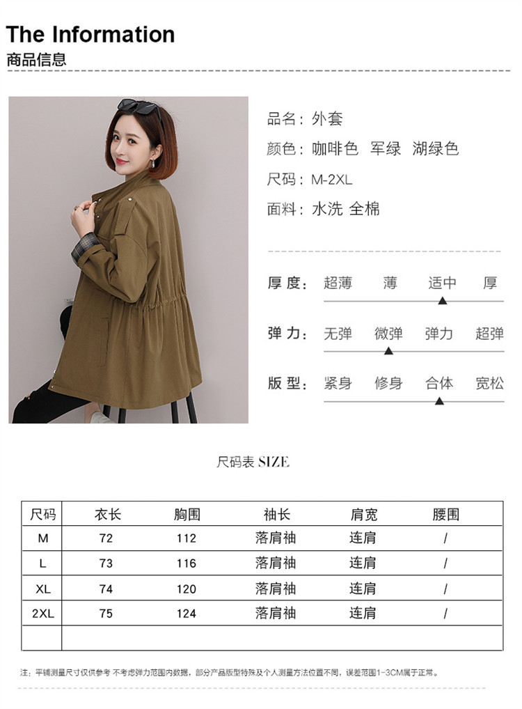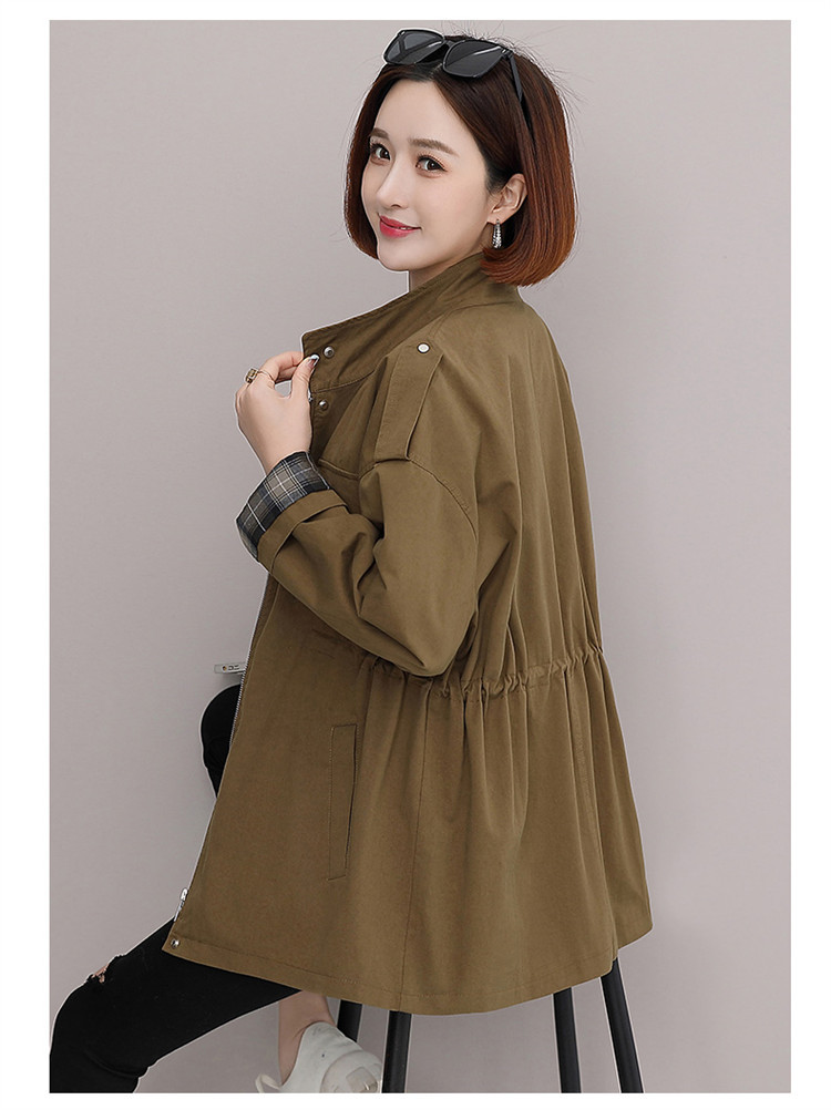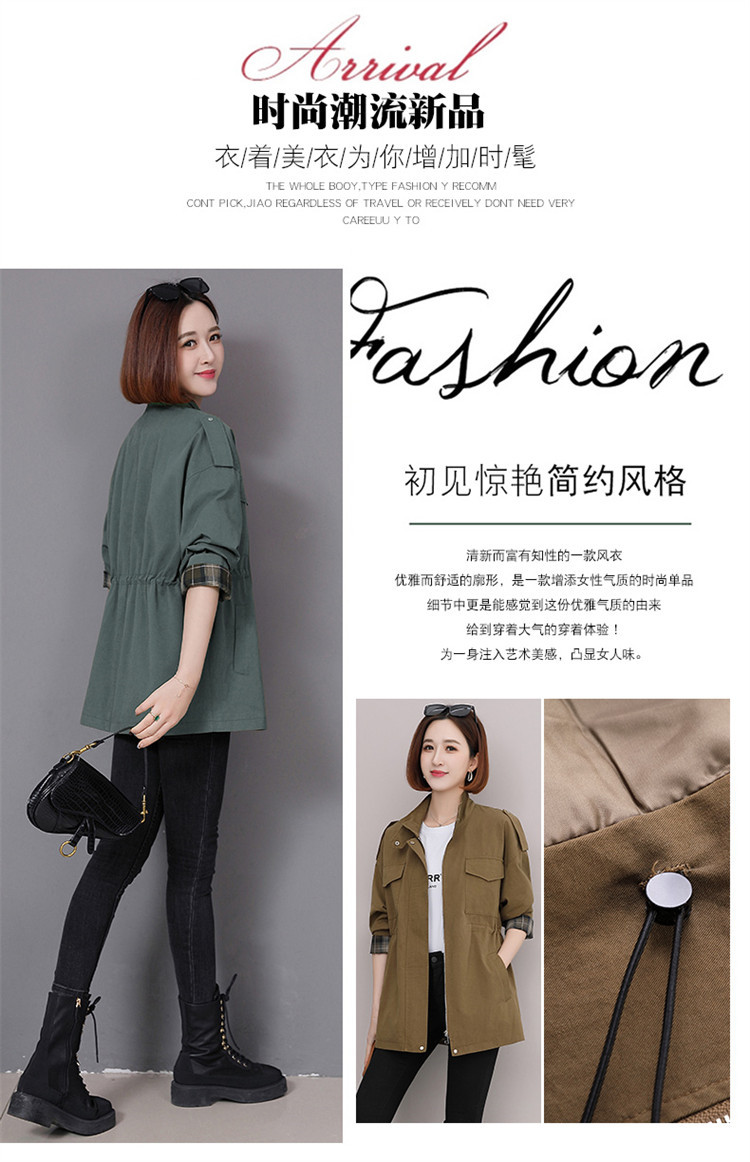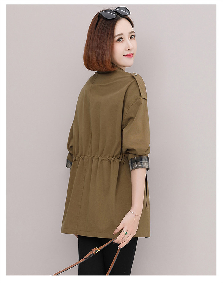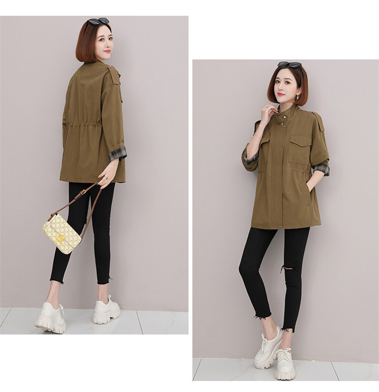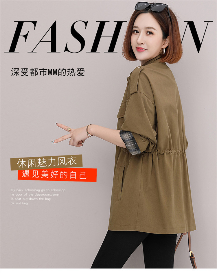 HR WY72139宽松舒适纯色减龄休闲中长款风衣外套