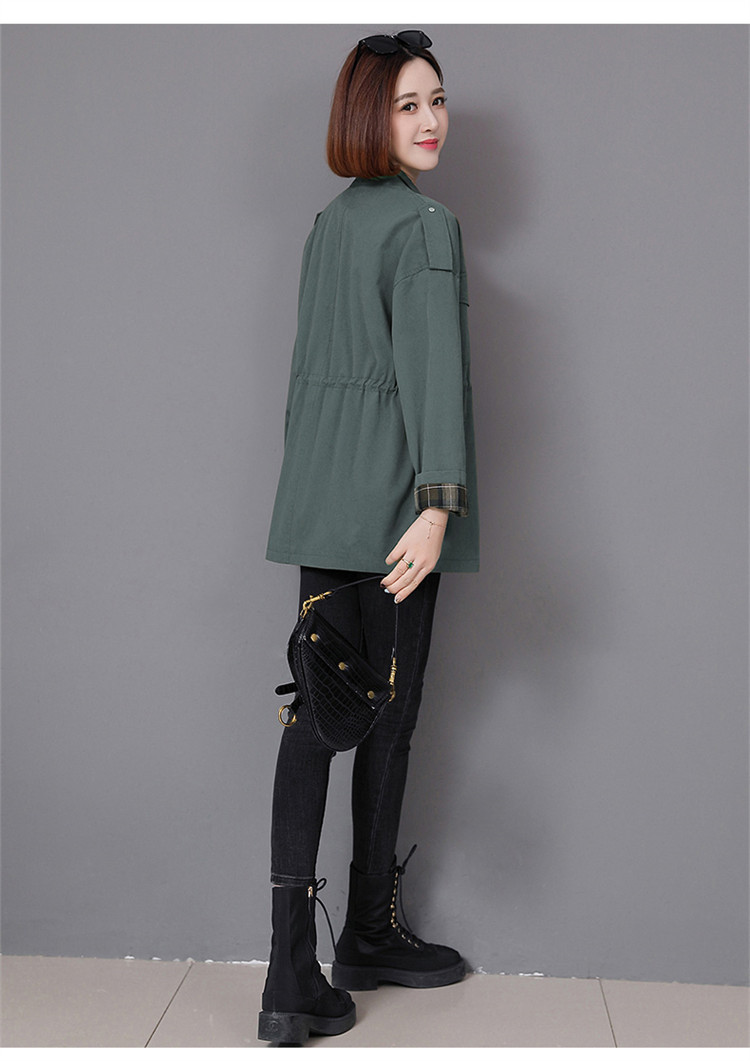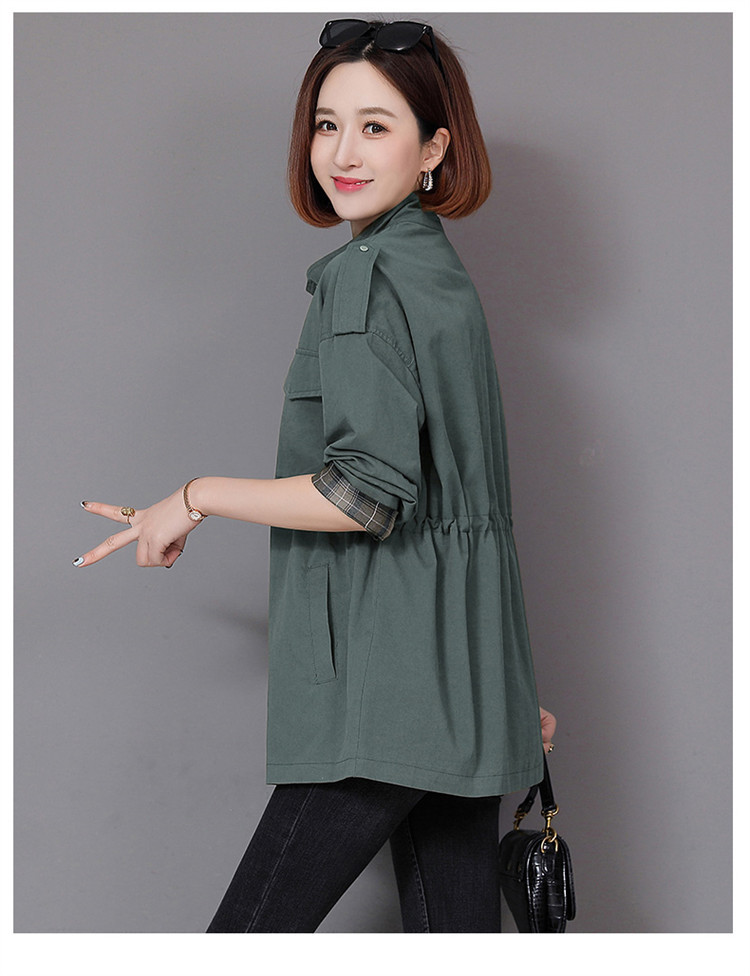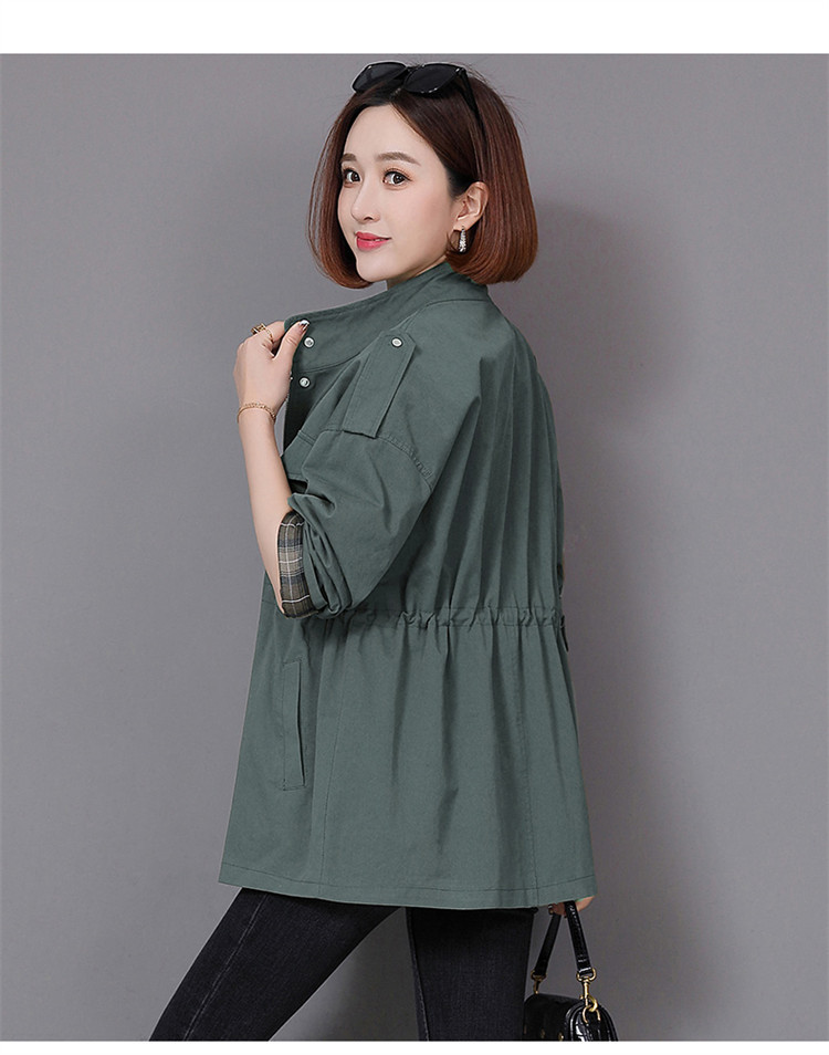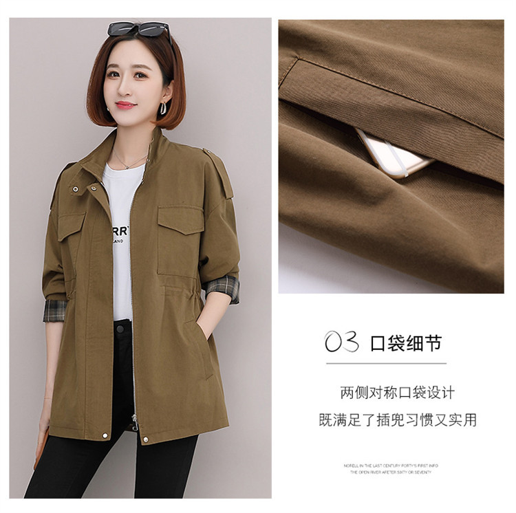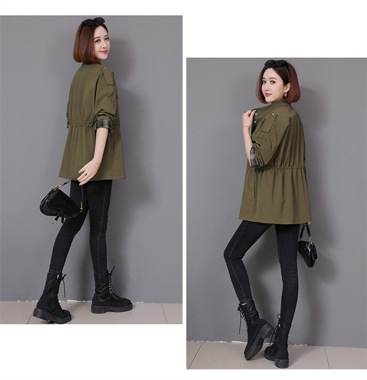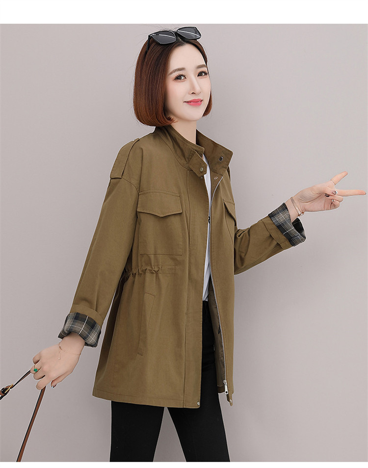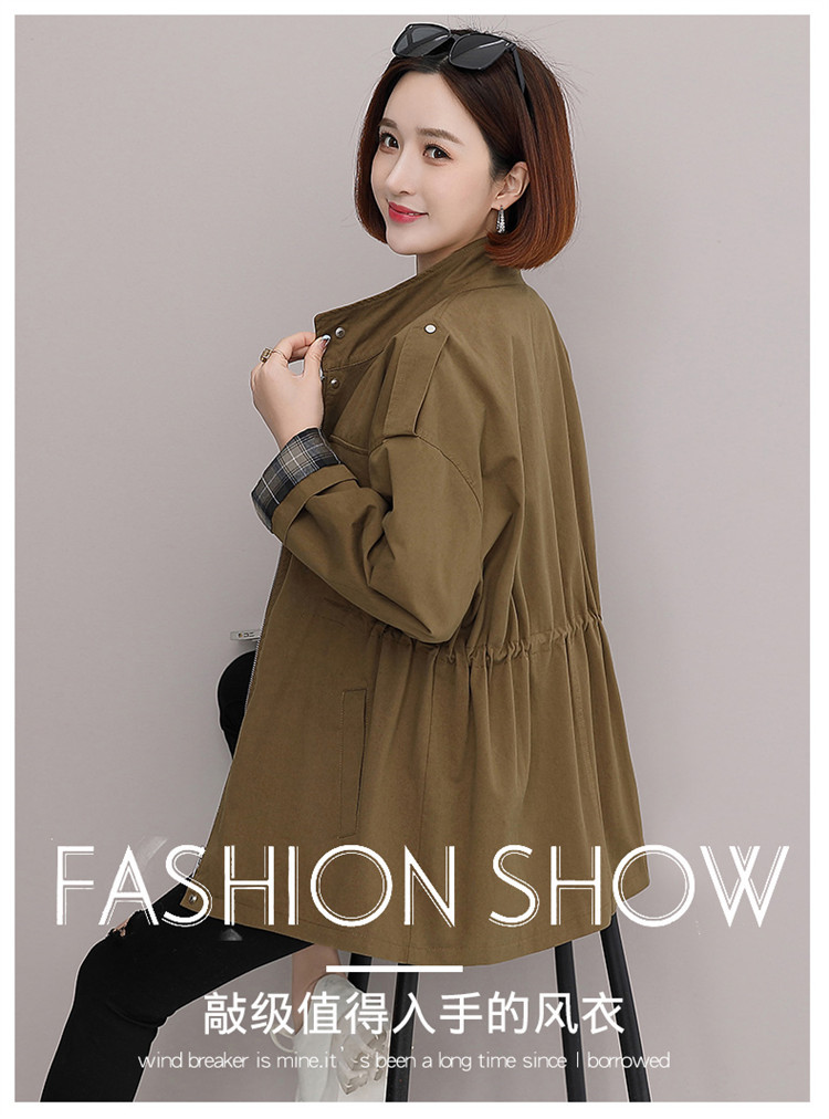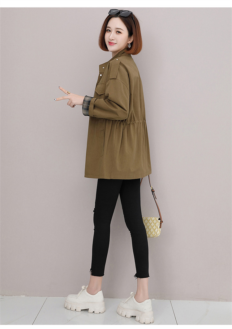 HR WY72139宽松舒适纯色减龄休闲中长款风衣外套