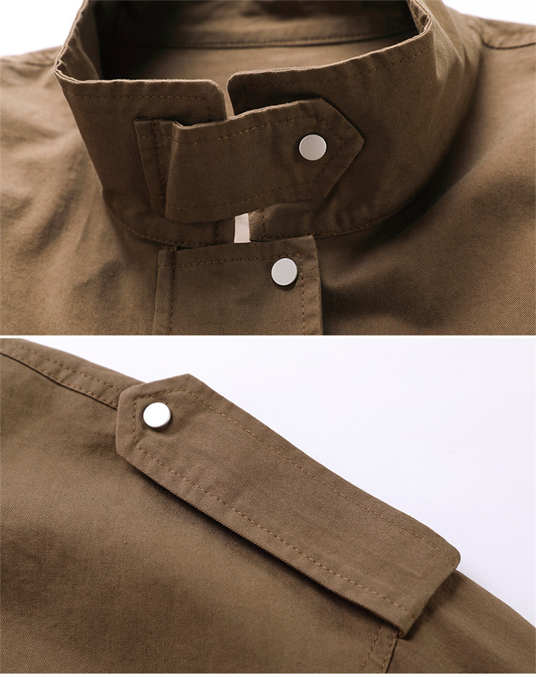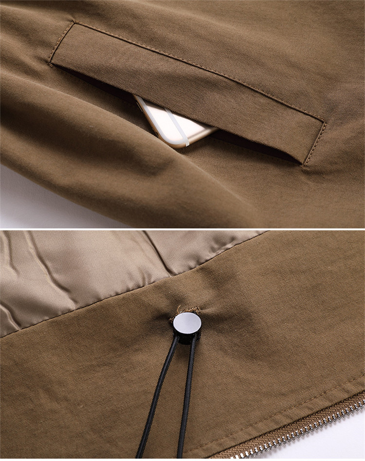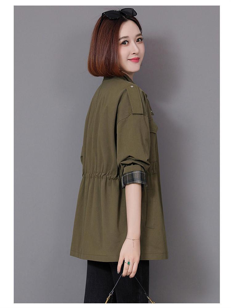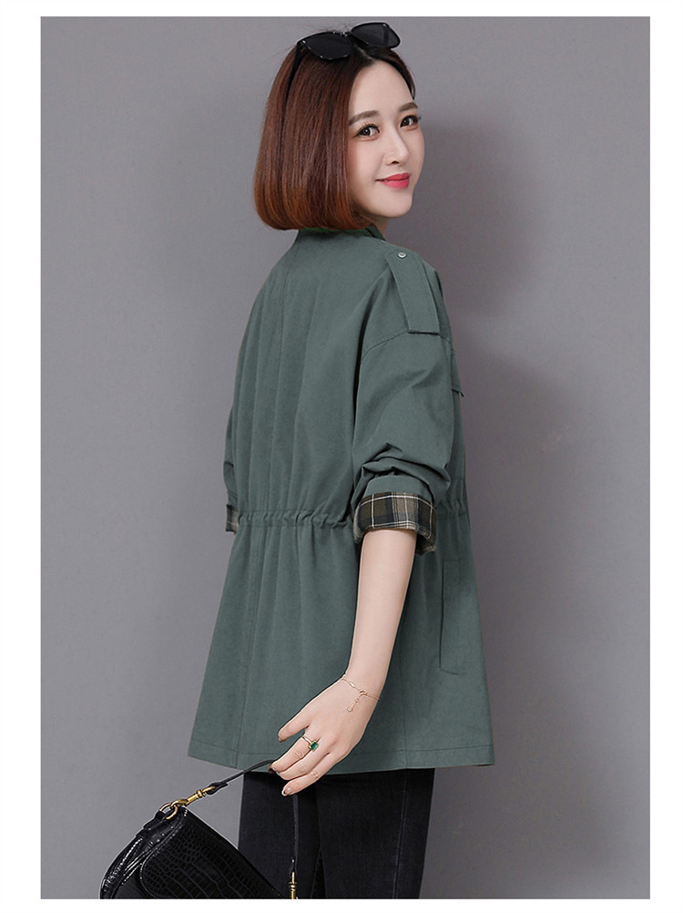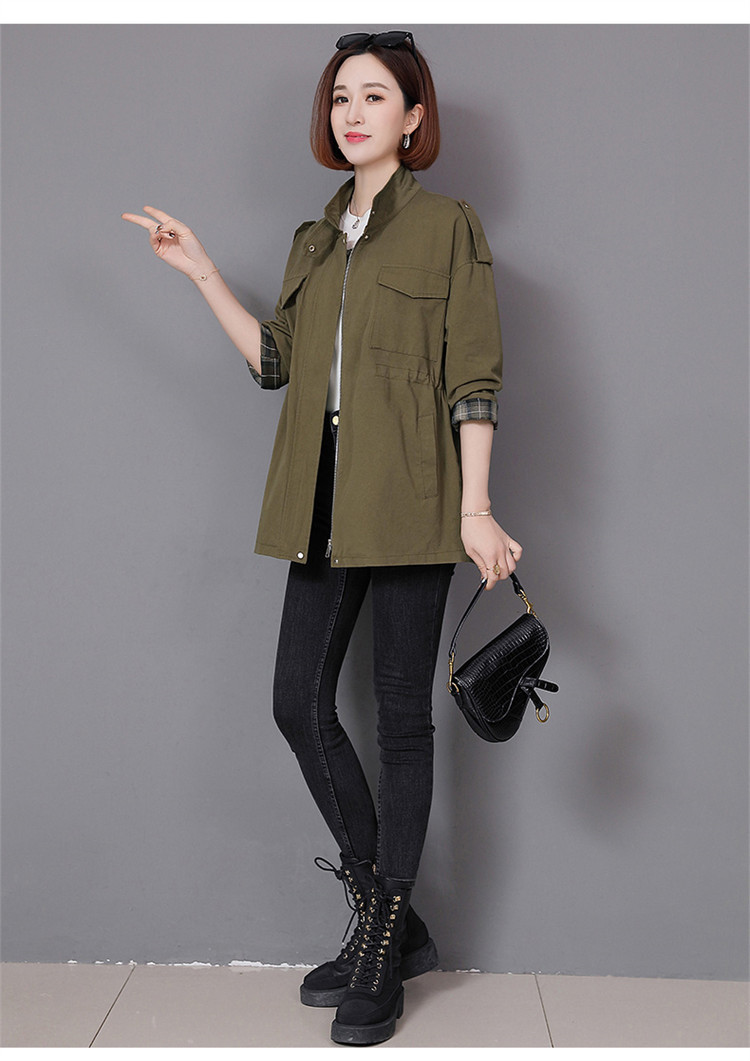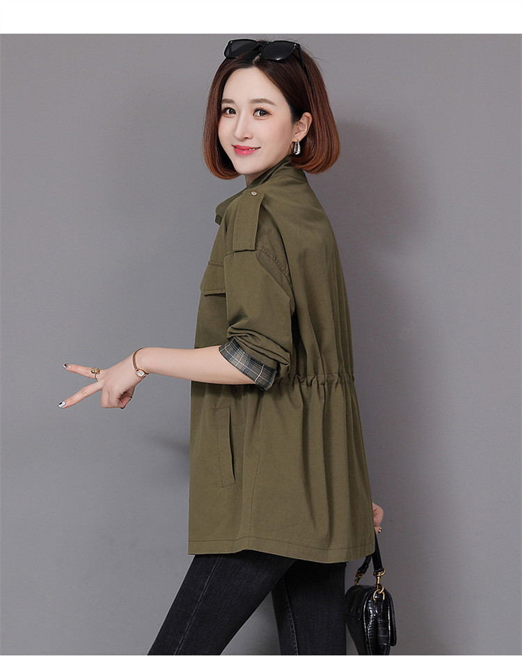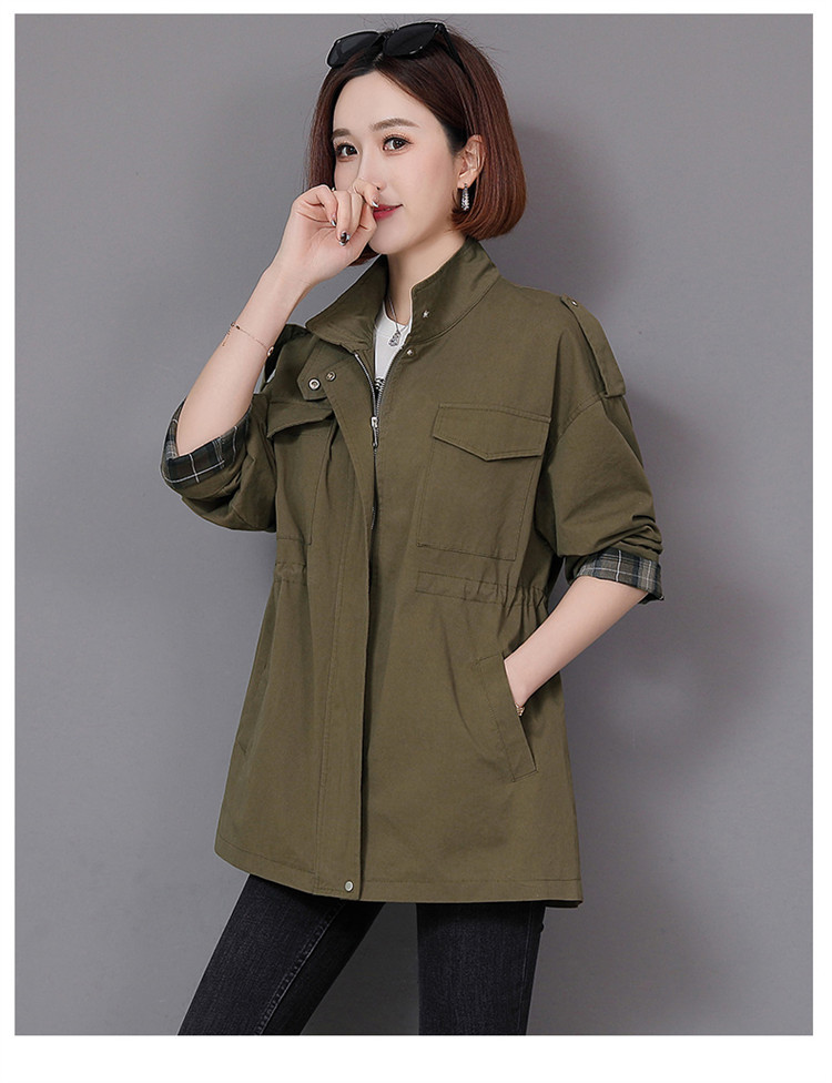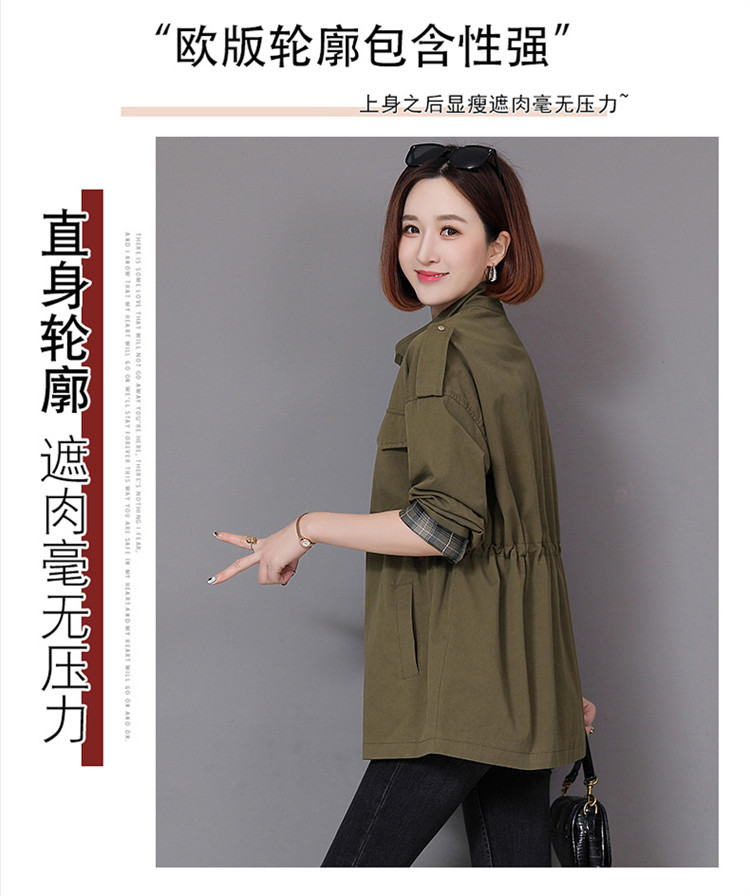 HR WY72139宽松舒适纯色减龄休闲中长款风衣外套