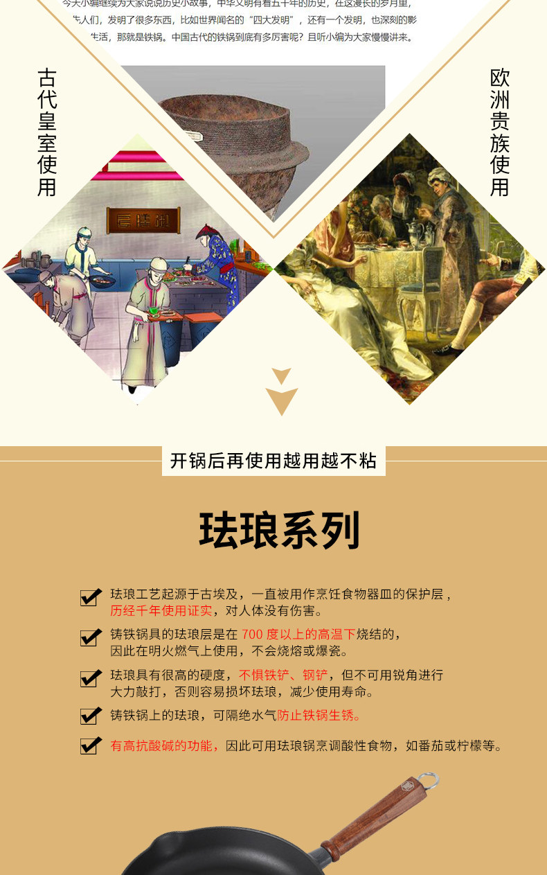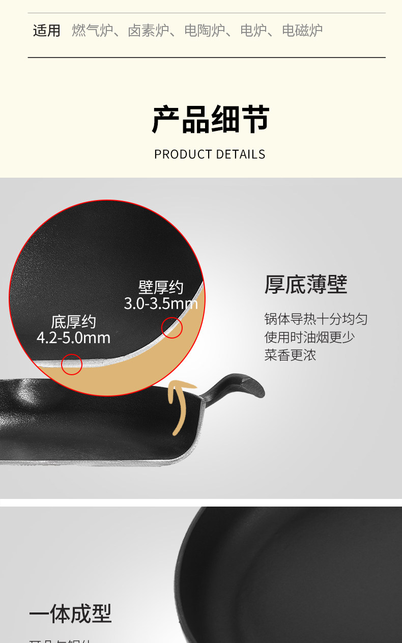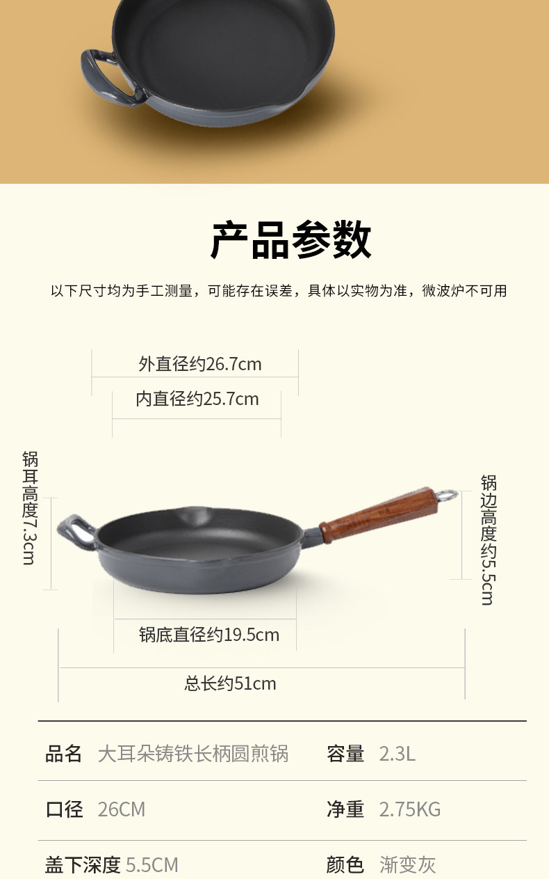 【品牌直发】铸味 | 26cm铸铁锅平底煎锅家用珐琅锅牛排锅大耳朵单柄炒锅