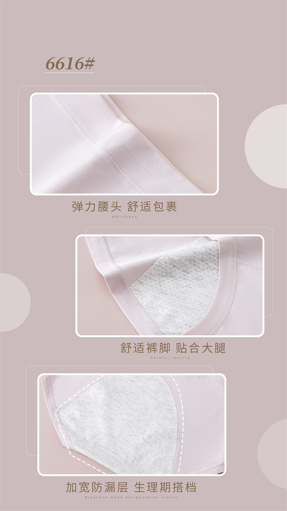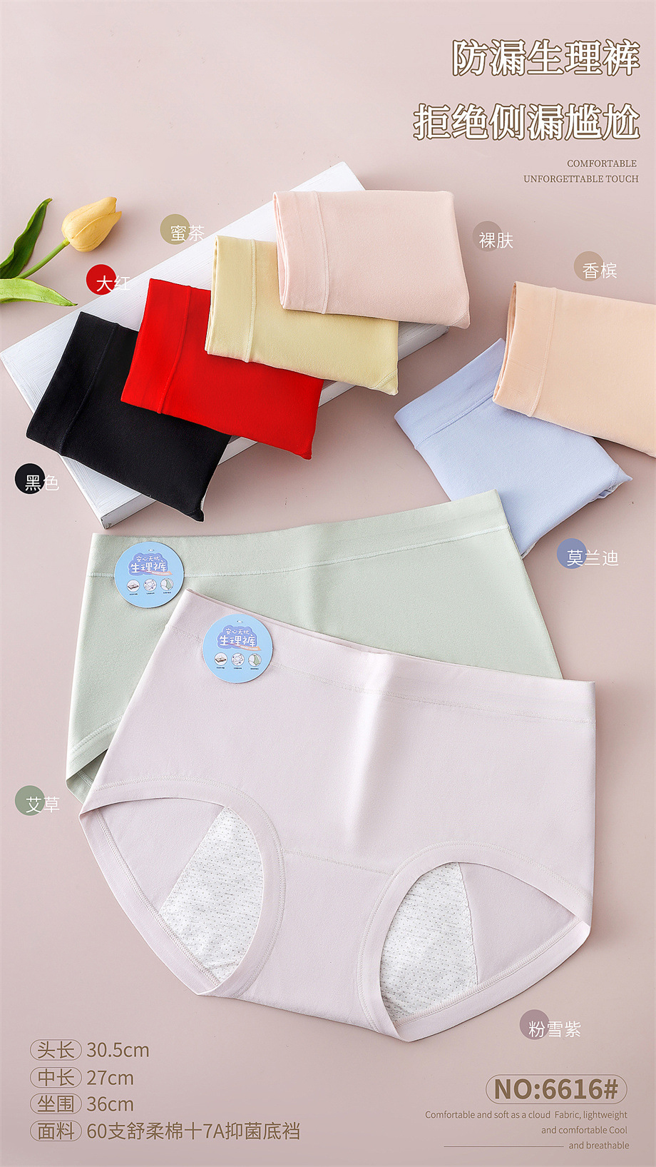 JHNY-6616# 【1条】60支舒柔棉无痕高腰大版女士内裤底裆舒适生理裤