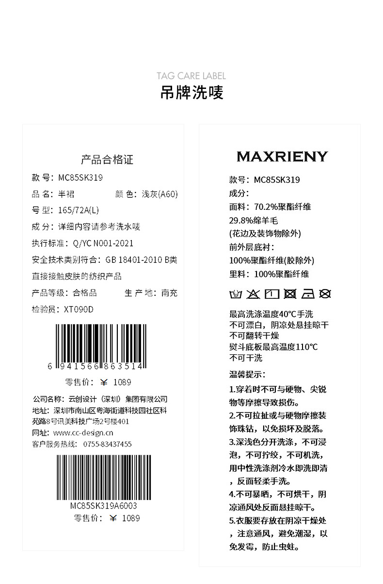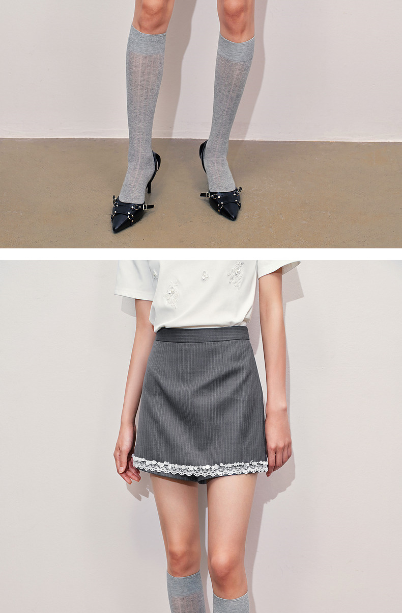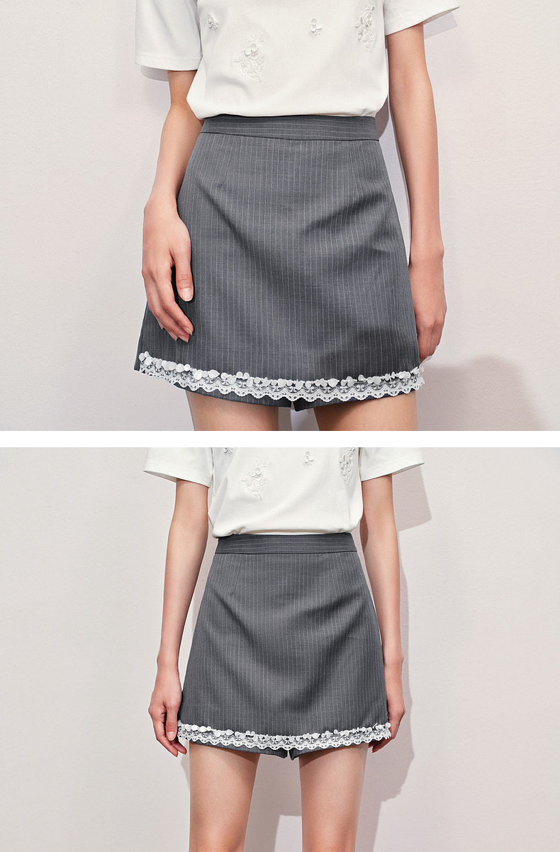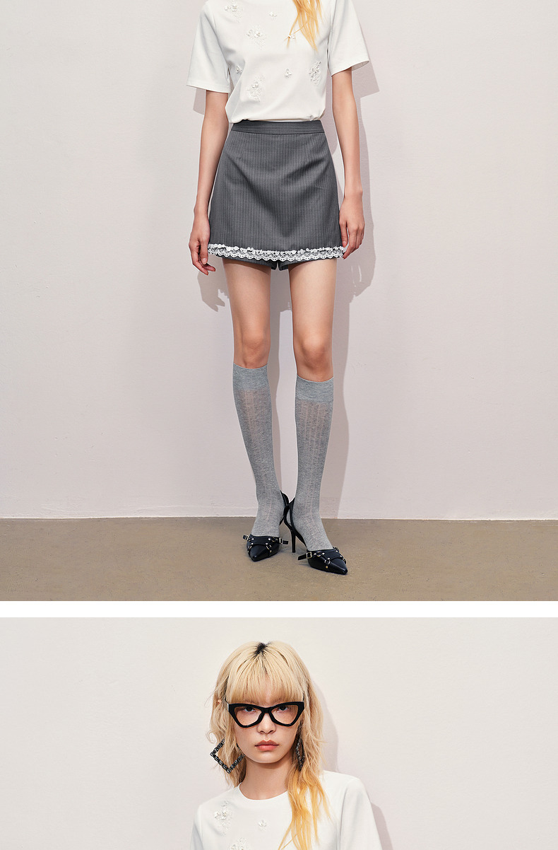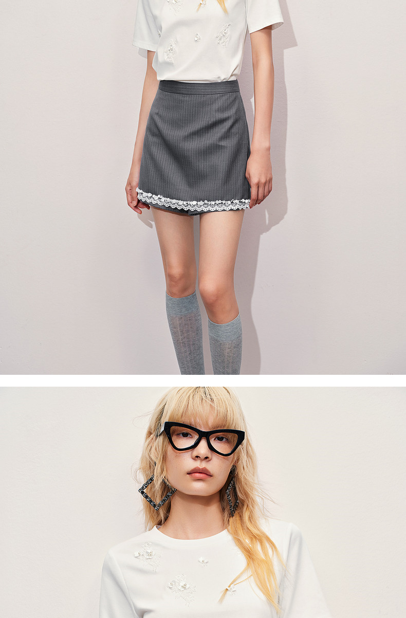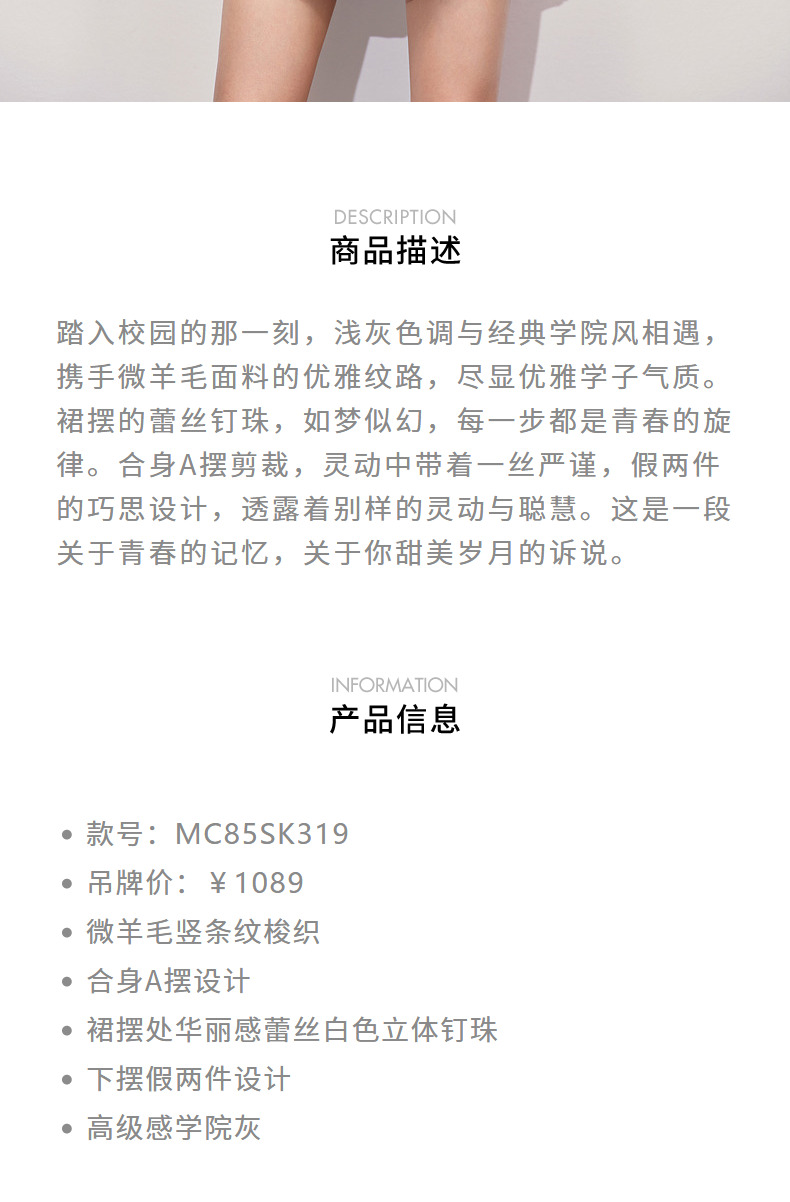 【浪漫度假-商场同款】MAXRIENY蕾丝裙摆短裙学院风甜美半裙(货号:MC85SK319)