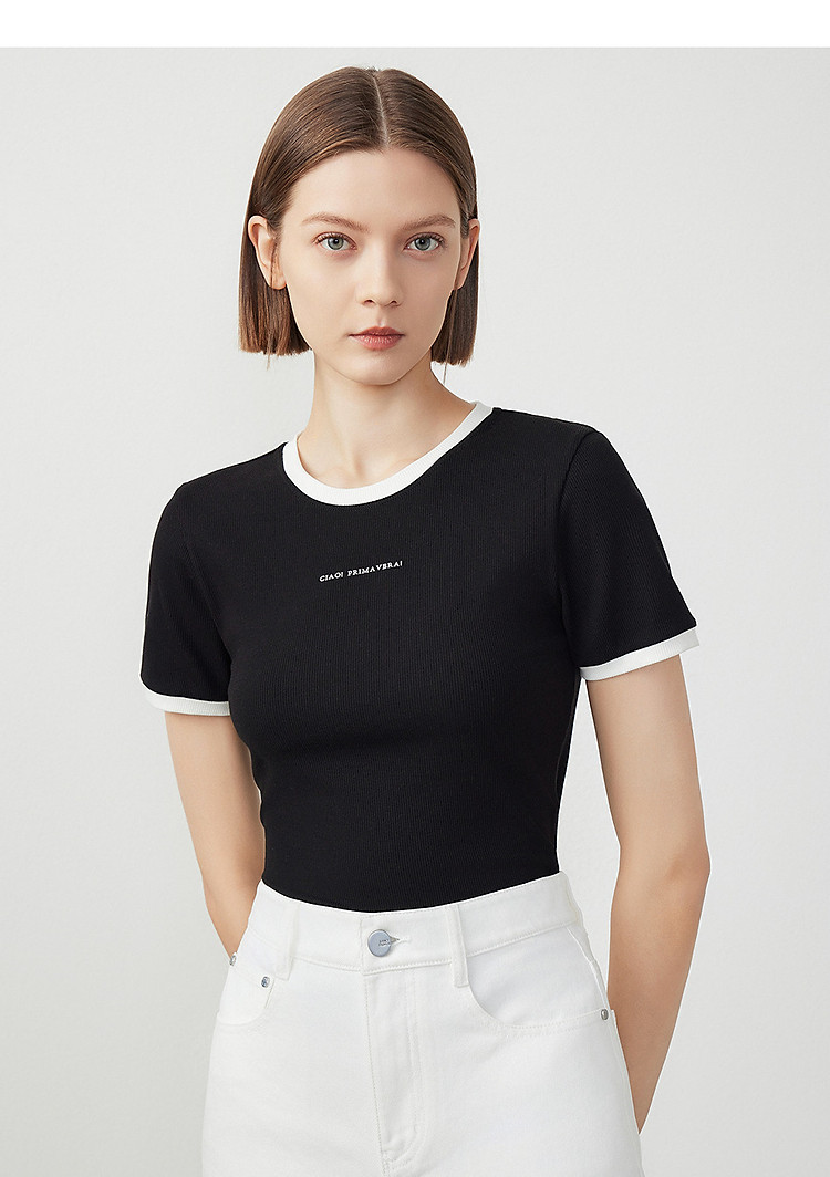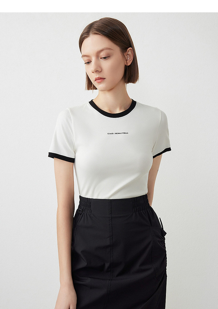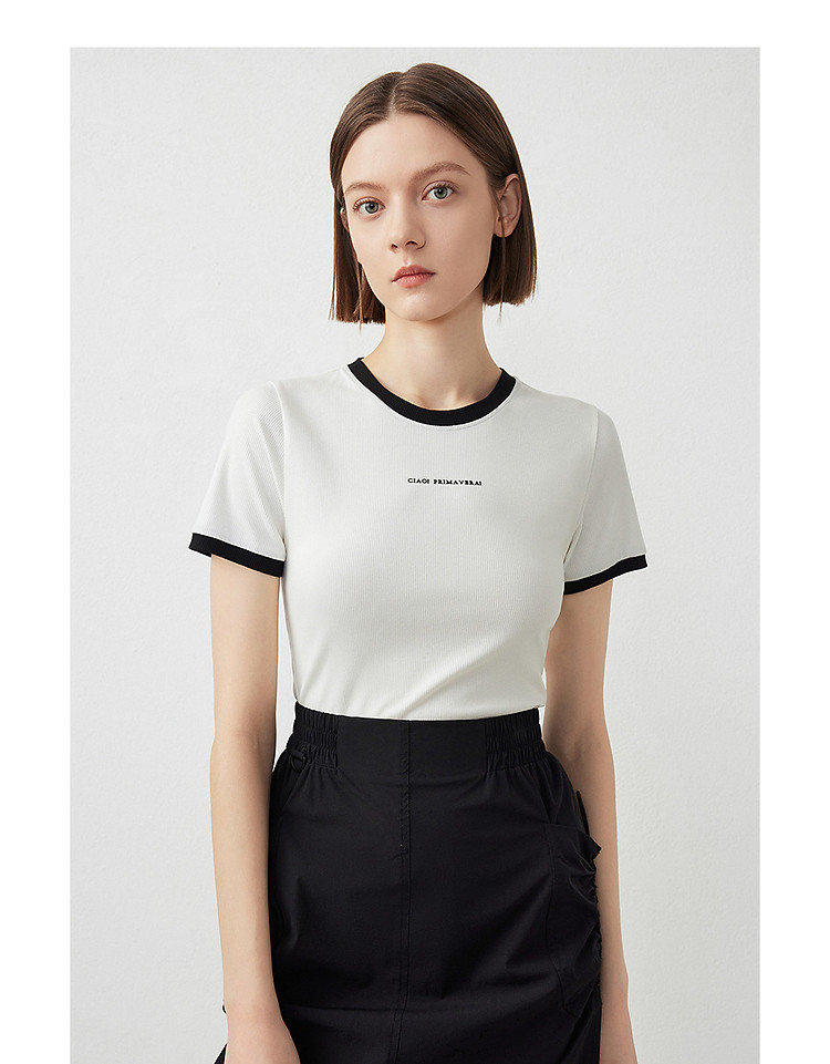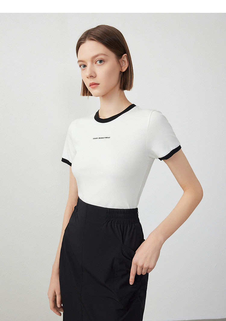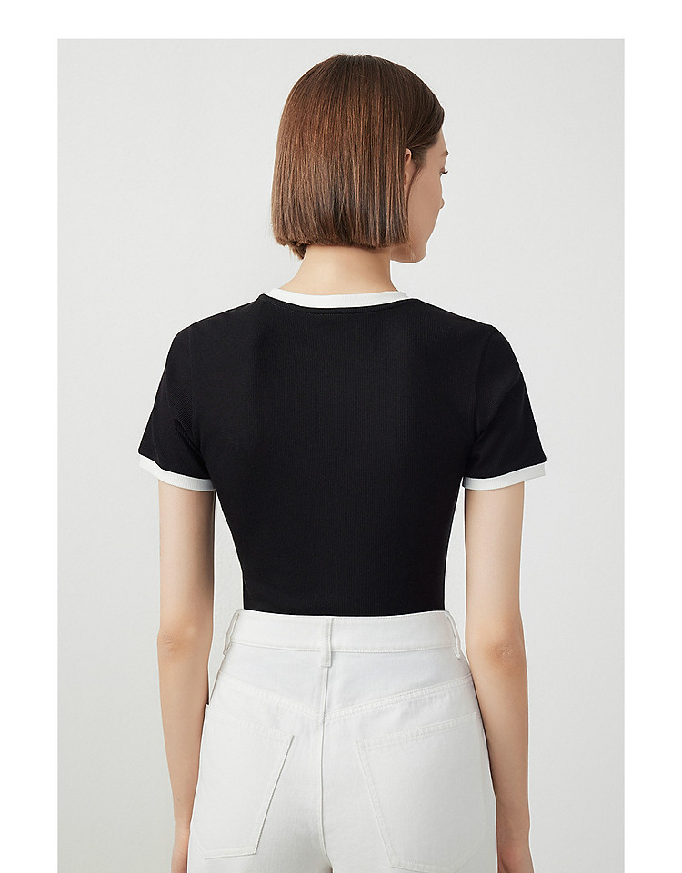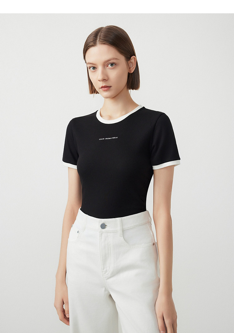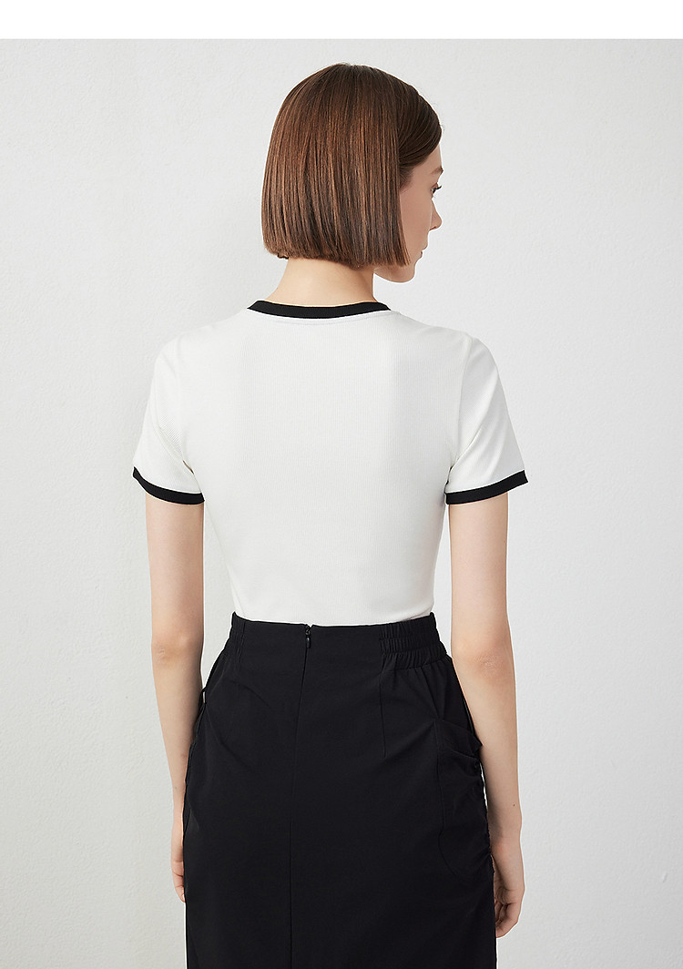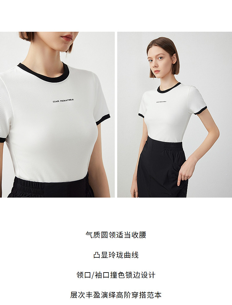 朗姿修身撞色拼条T恤LCFA18JTS027B11