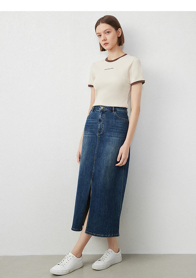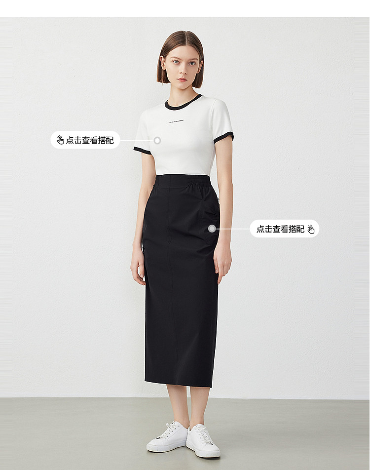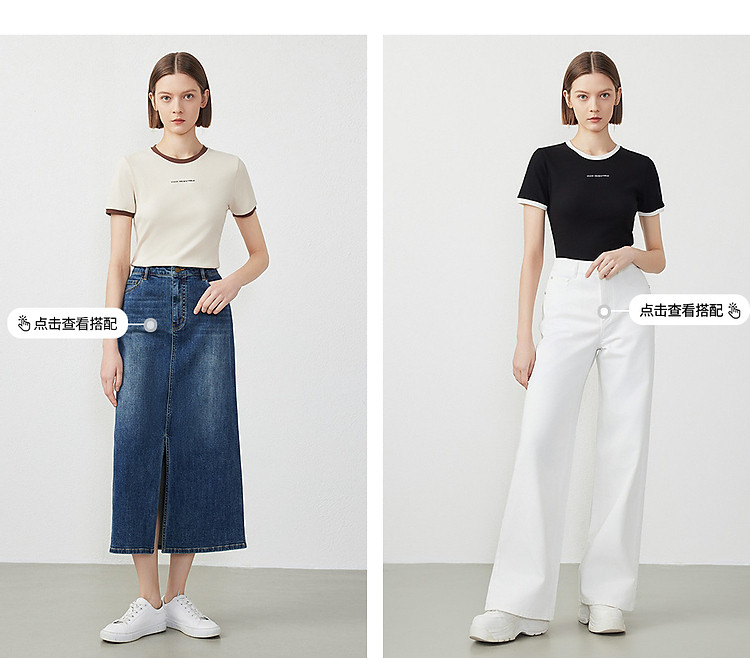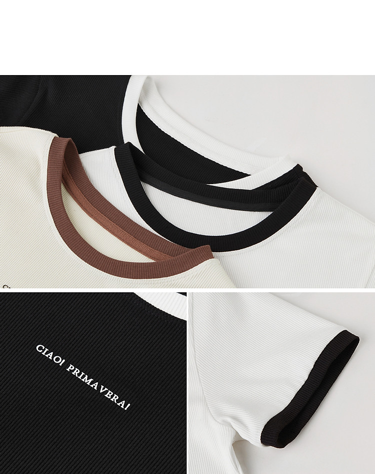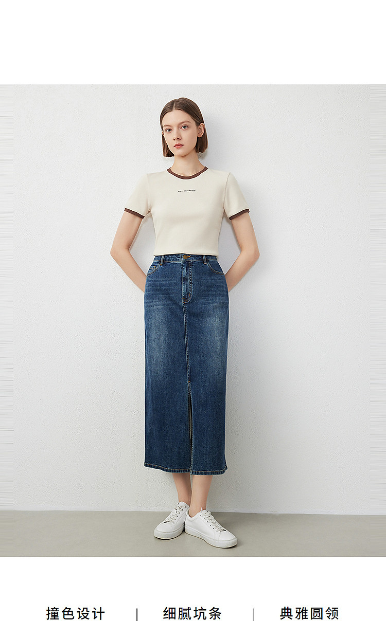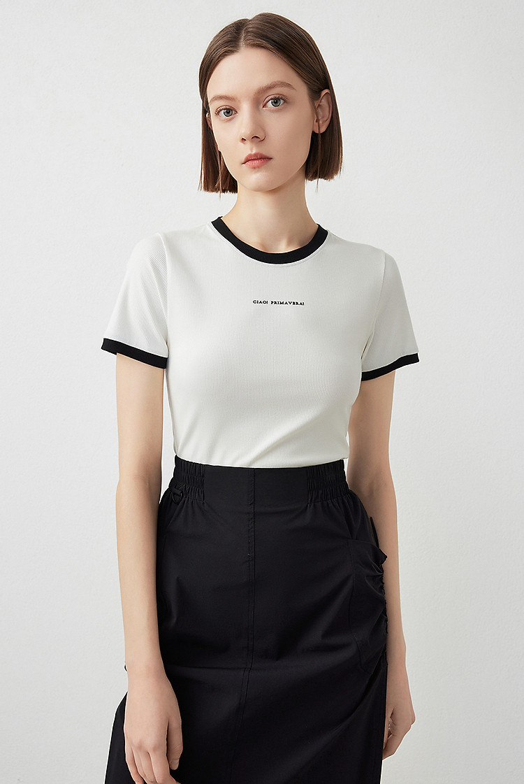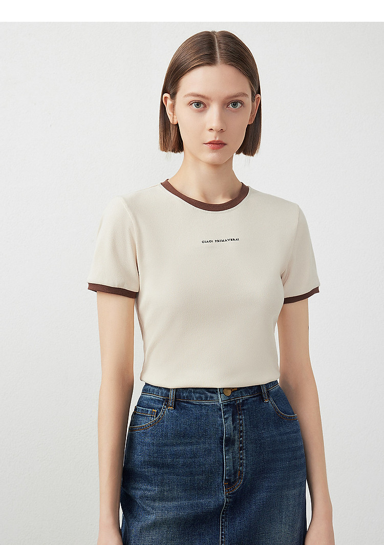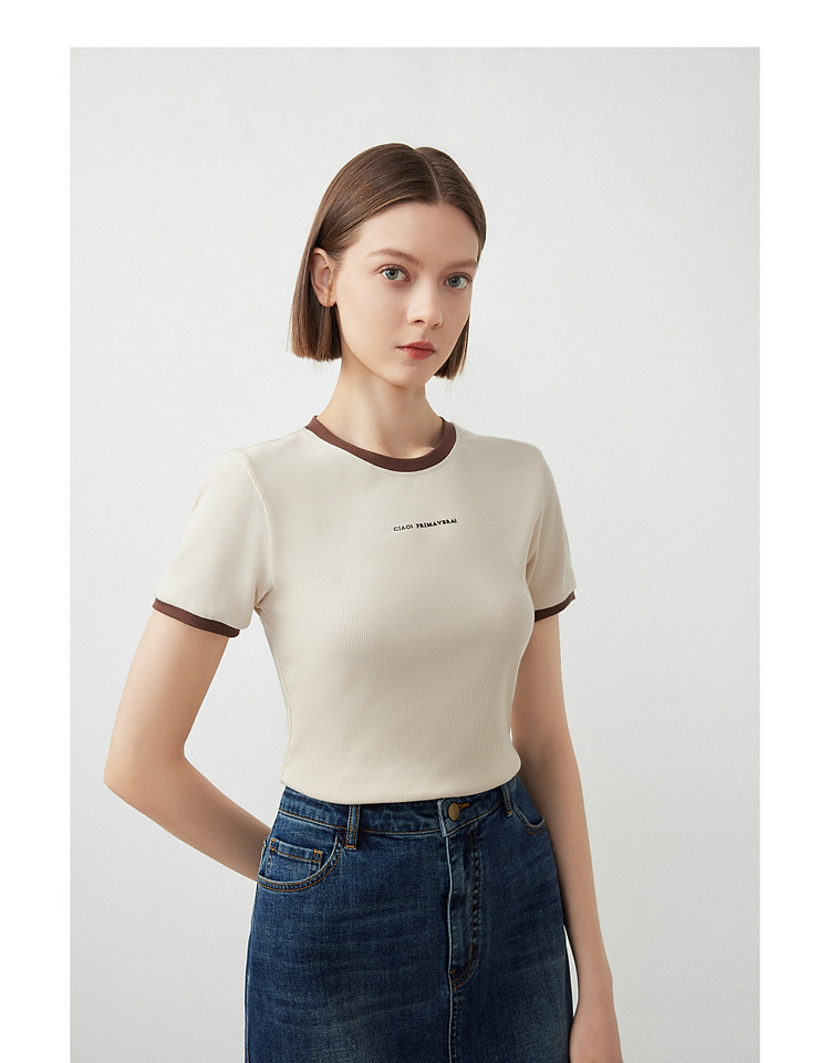 朗姿修身撞色拼条T恤LCFA18JTS027B11