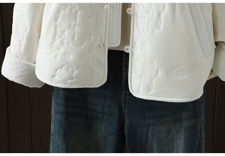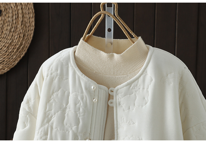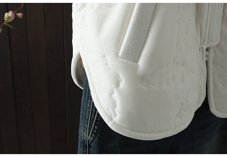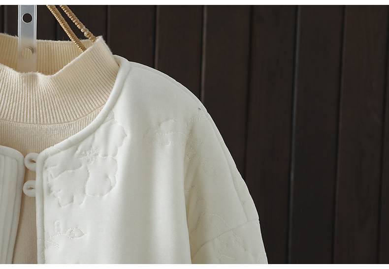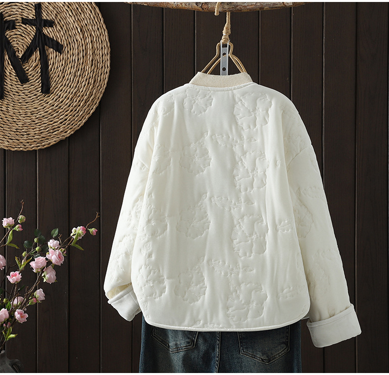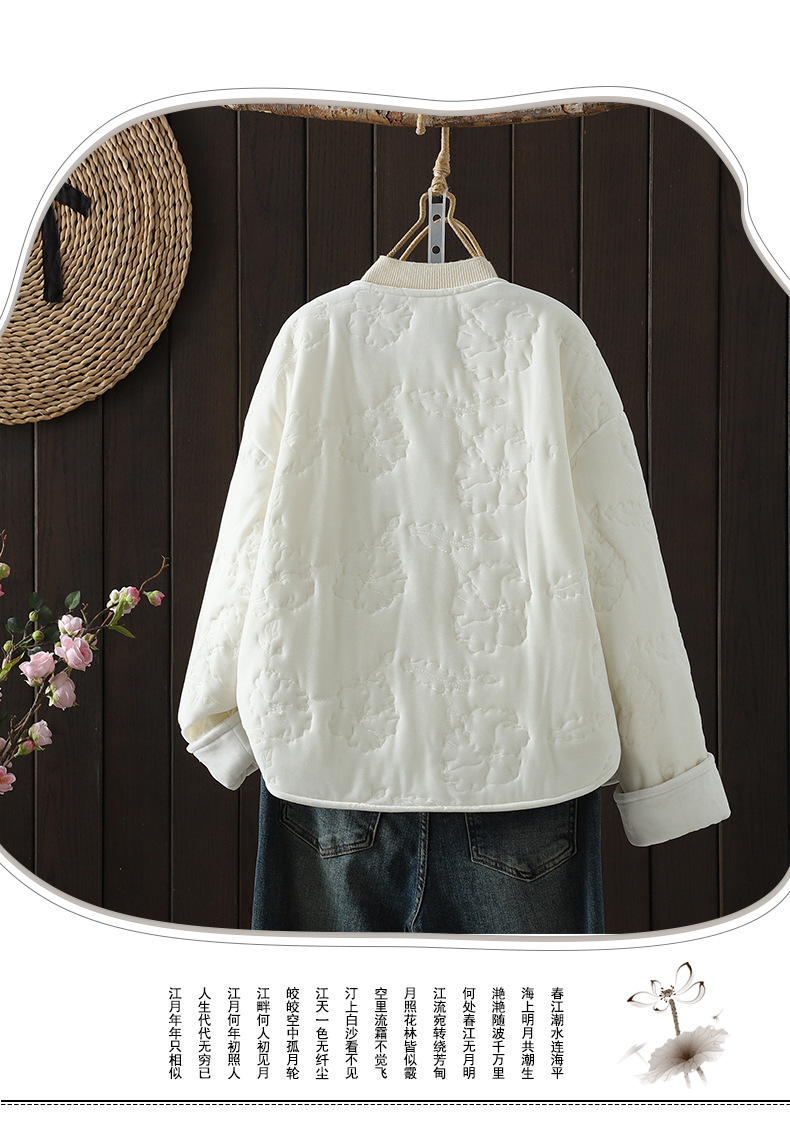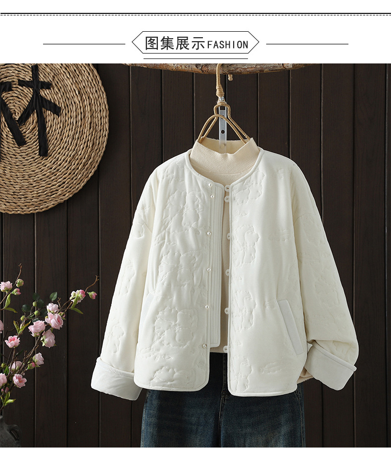 2025冬季新款复古中式国风改良纯色文艺休闲圆领夹棉棉袄外套女