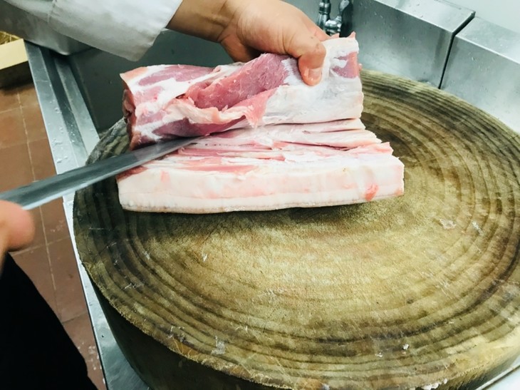 1. 将猪肉肥瘦肉部分分割,按照8:2(瘦肉:肥肉)配比后剁碎