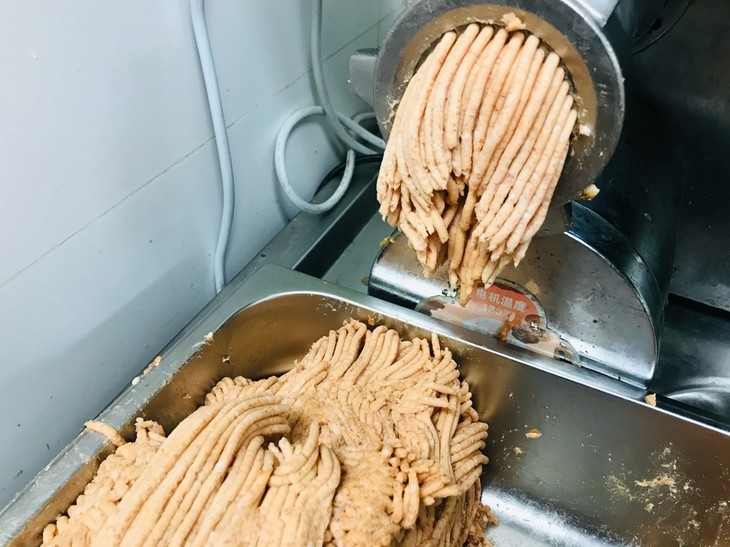 3. 将搅拌好的猪肉放入碎肉机,搅成肉糜后待用