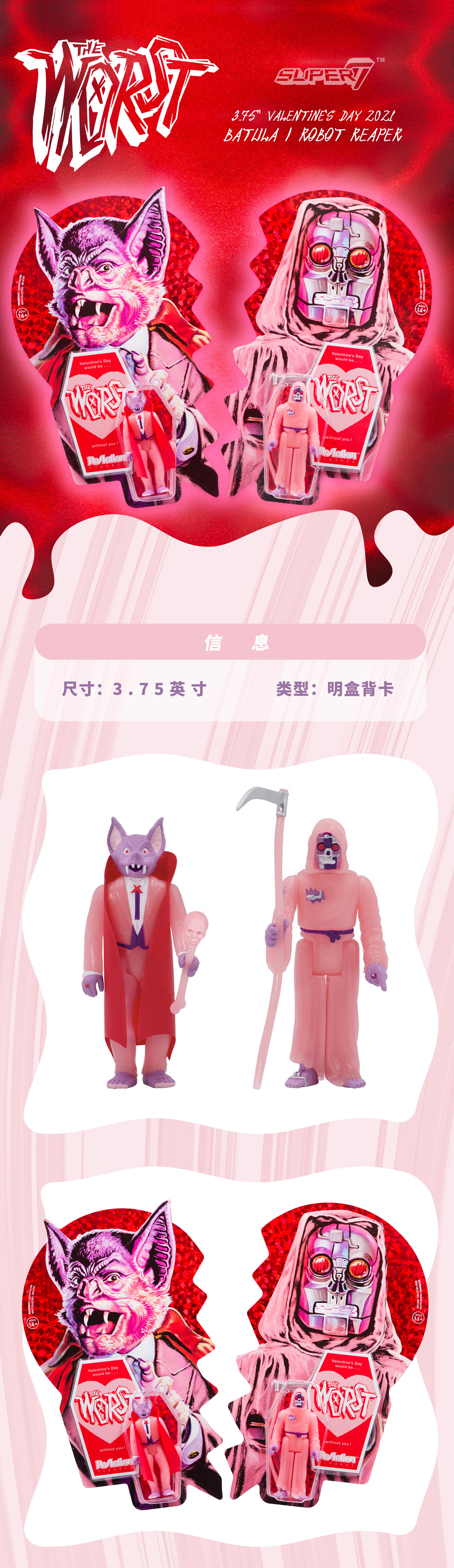现货 Super7 The Worst 情人节限定 3.75挂卡 套装 潮玩