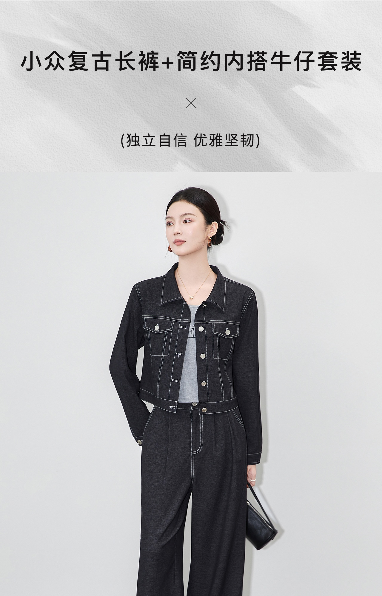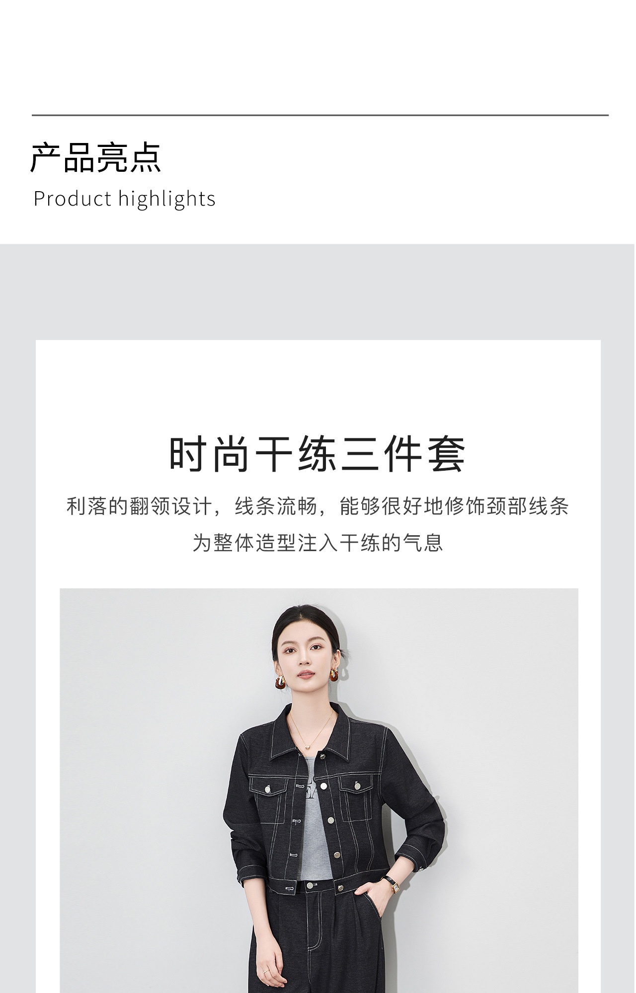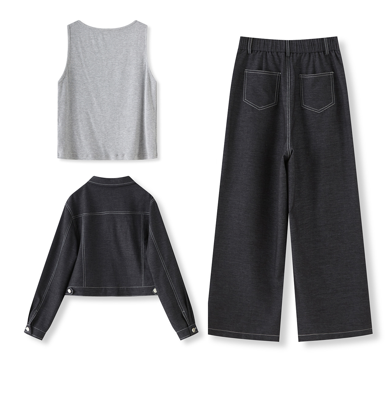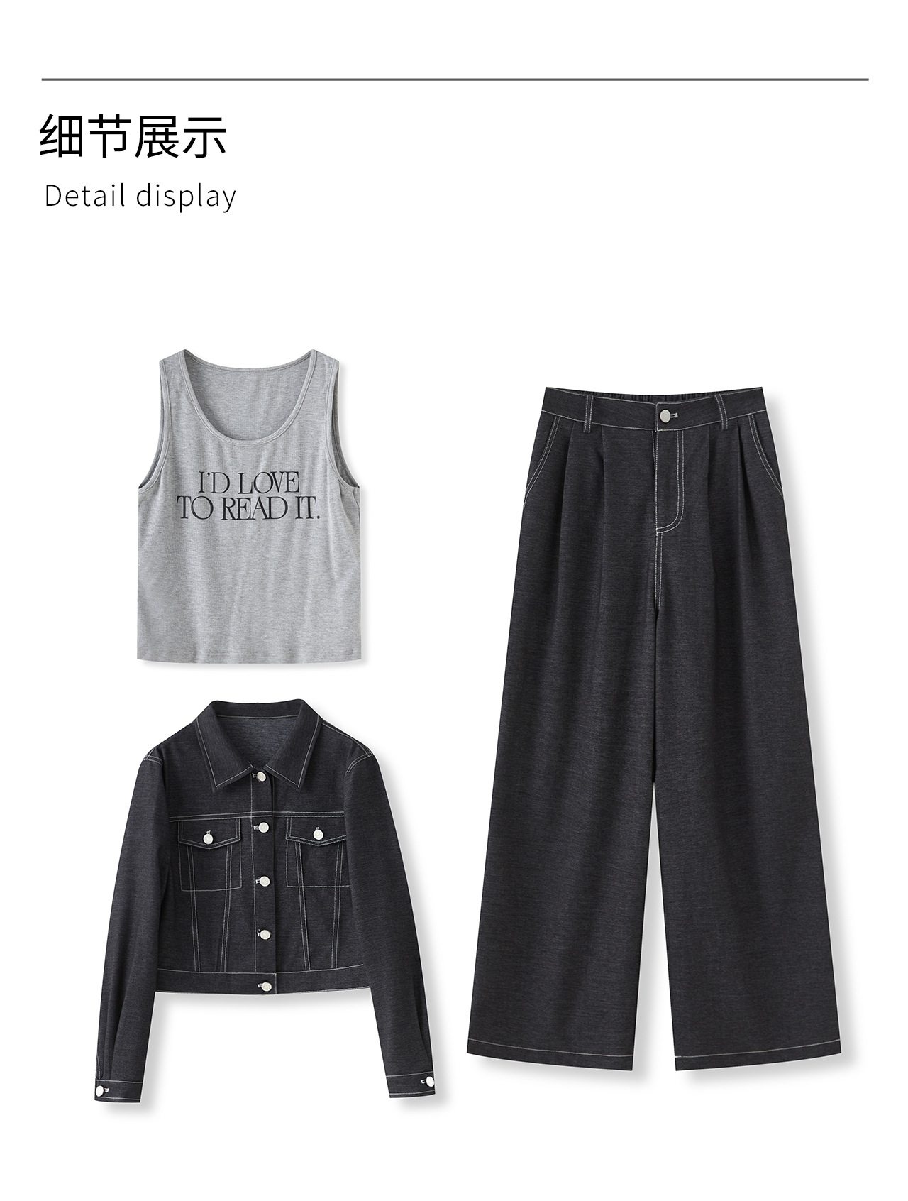 「高货wl」全新升级【铂金会员404/天猫539/差价135】(99312)洛诗琳2025秋季时髦牛仔短外套字母背心阔腿长裤三件套