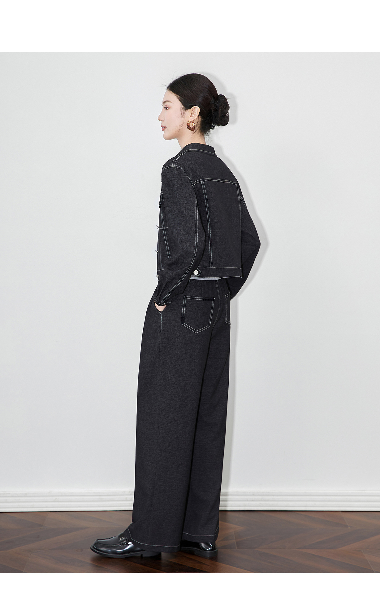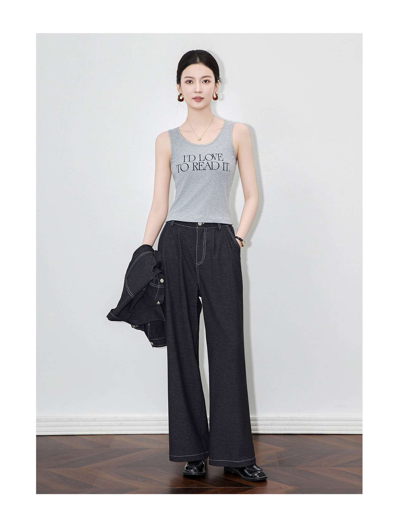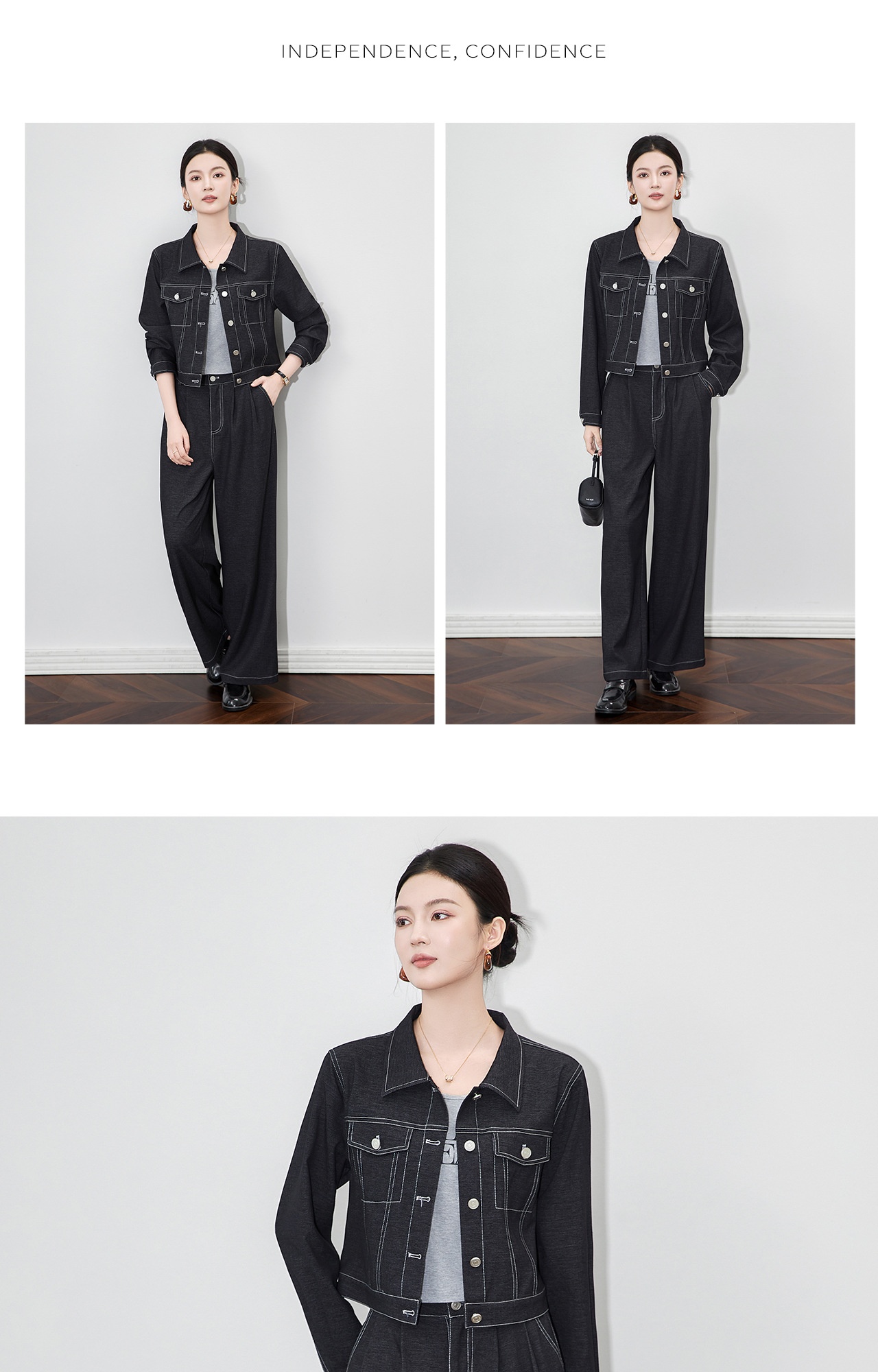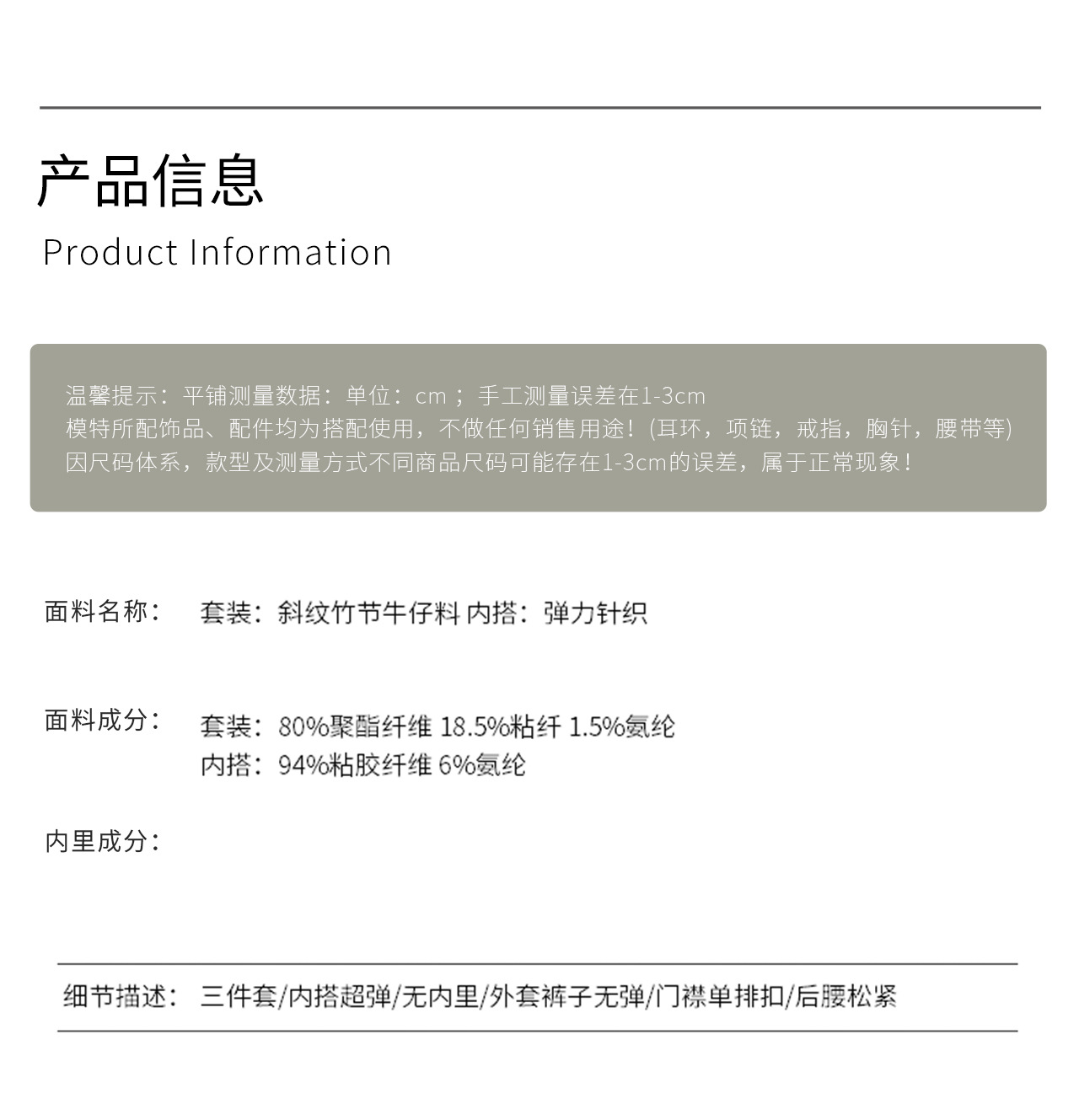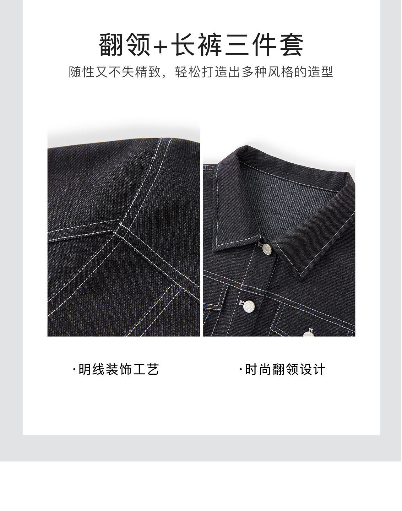 「高货wl」全新升级【铂金会员404/天猫539/差价135】(99312)洛诗琳2025秋季时髦牛仔短外套字母背心阔腿长裤三件套