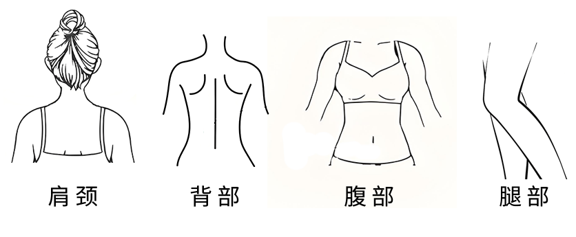 取适量按摩油,于手心温热后,涂抹肩颈、背部、腹部、腿部等位置,按摩直至吸收。