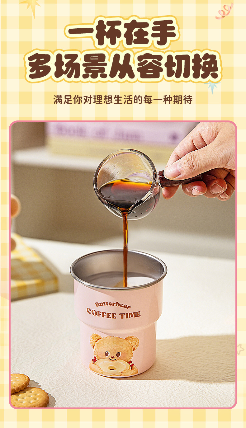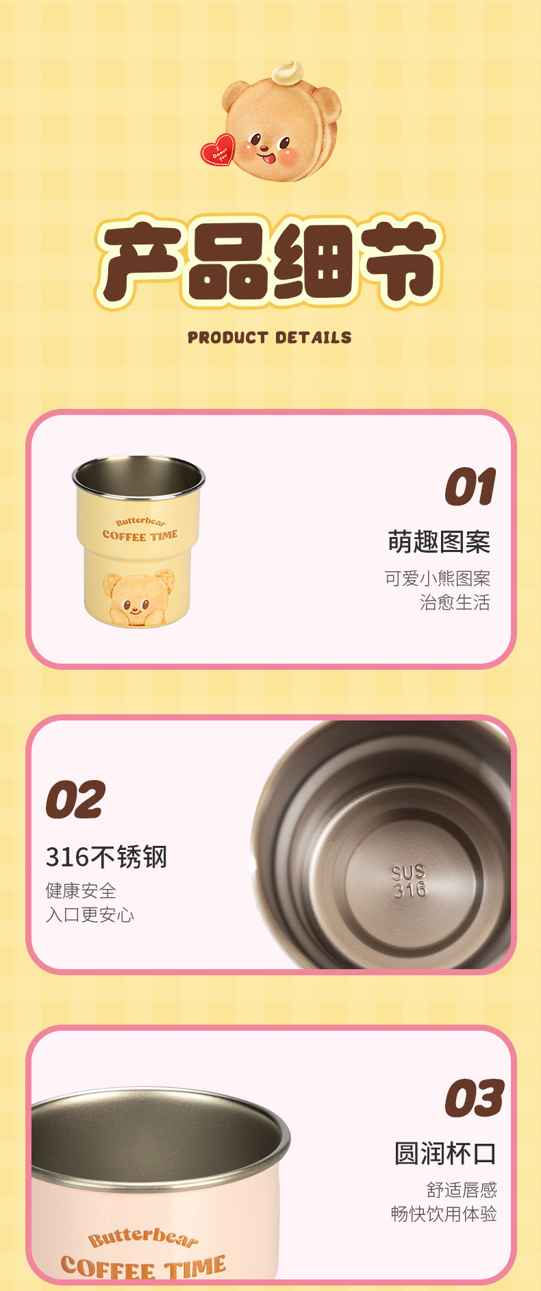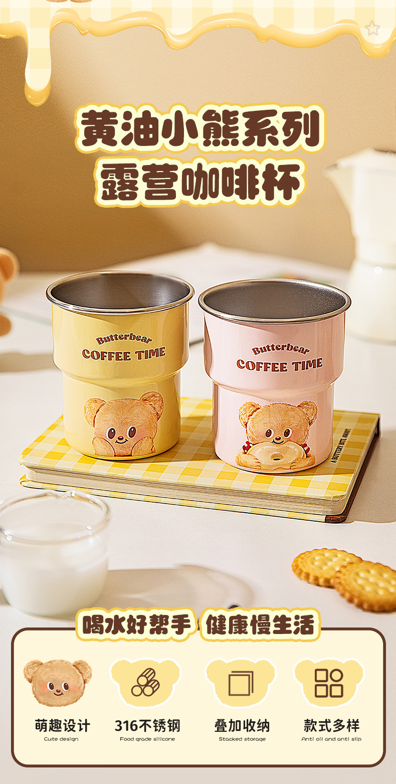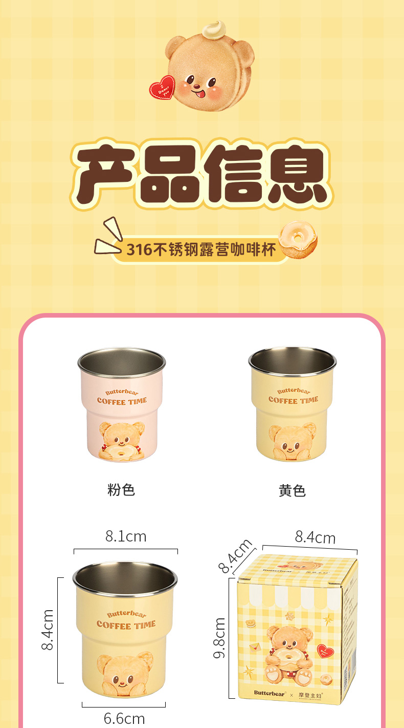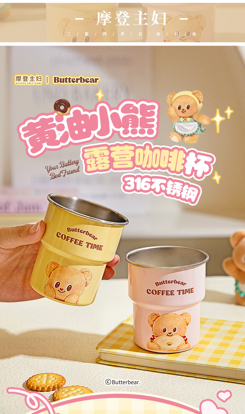 摩登主妇&黄油小熊 咖啡杯不锈钢露营杯子外出携带水杯马克杯