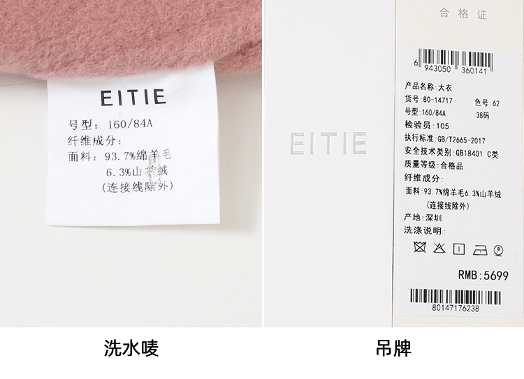 EITIE爱特爱高级感气质翻领收腰显瘦羊毛羊绒毛呢大衣冬季新款8014717