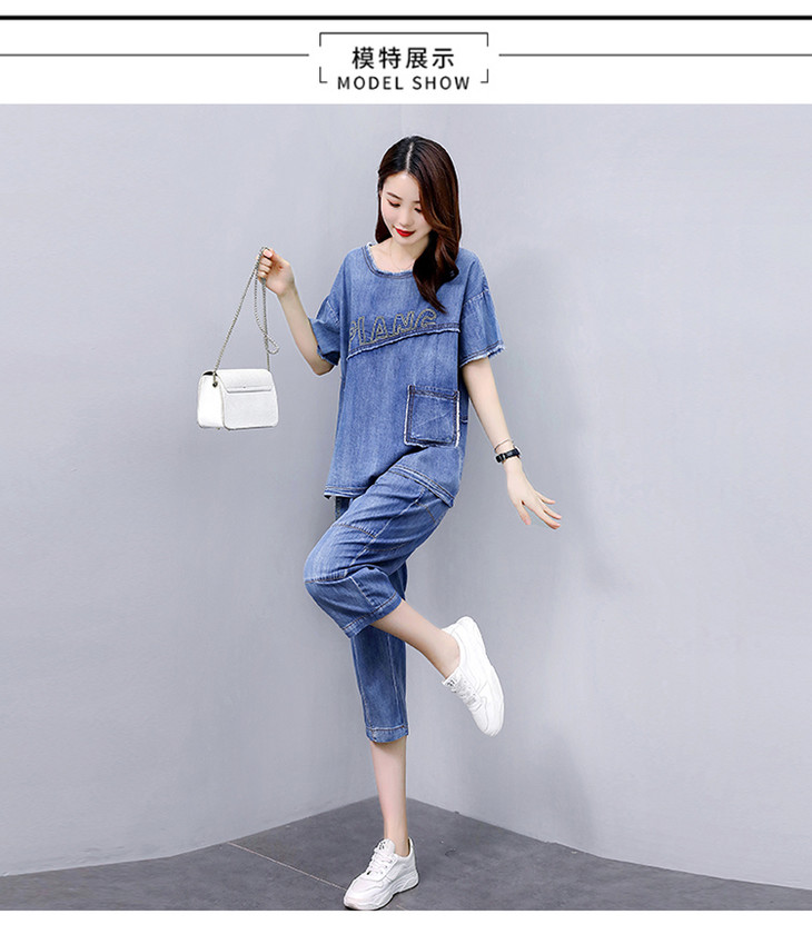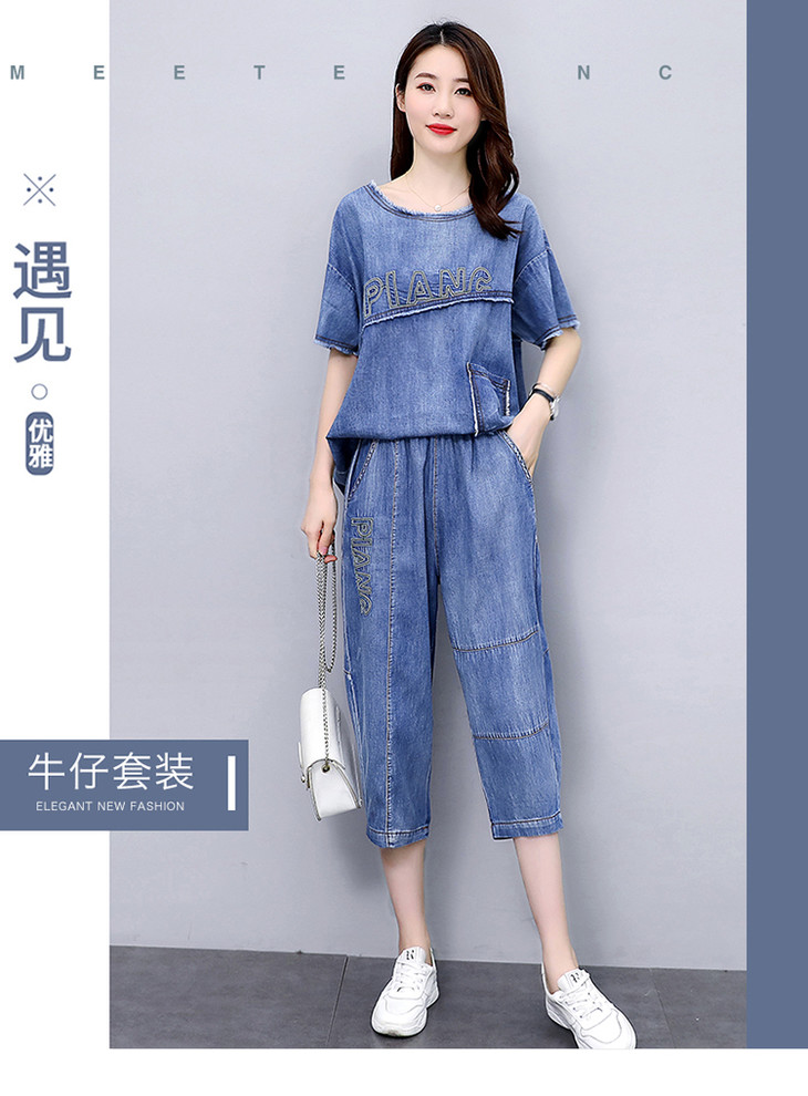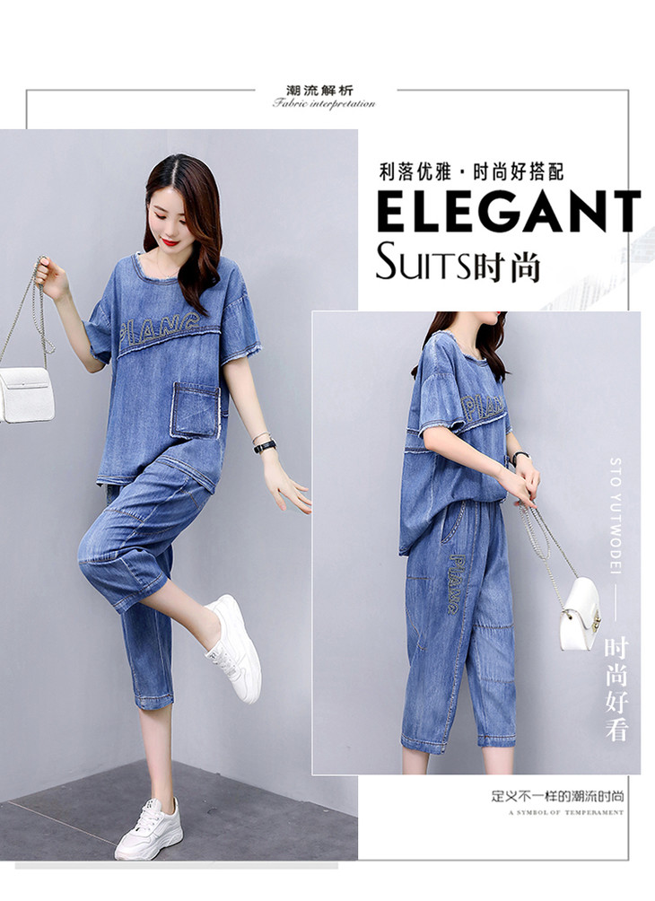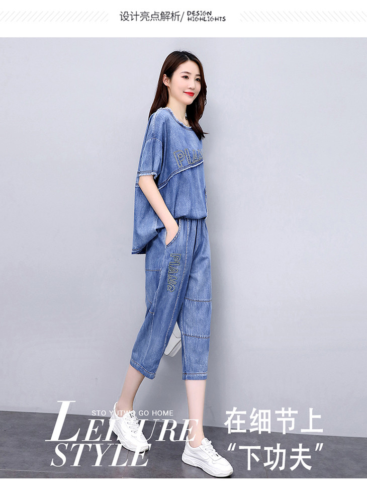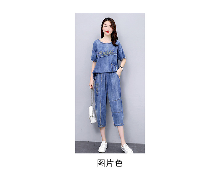 KY-LIANGC6635休闲时尚显瘦牛仔阔腿裤套装