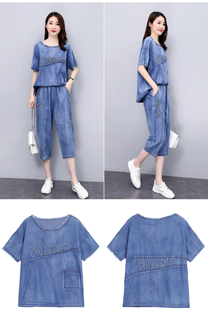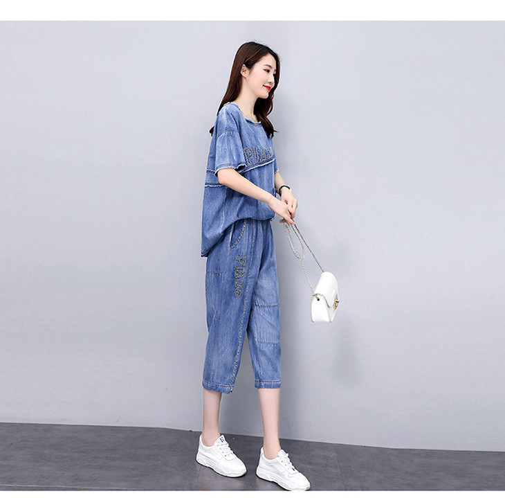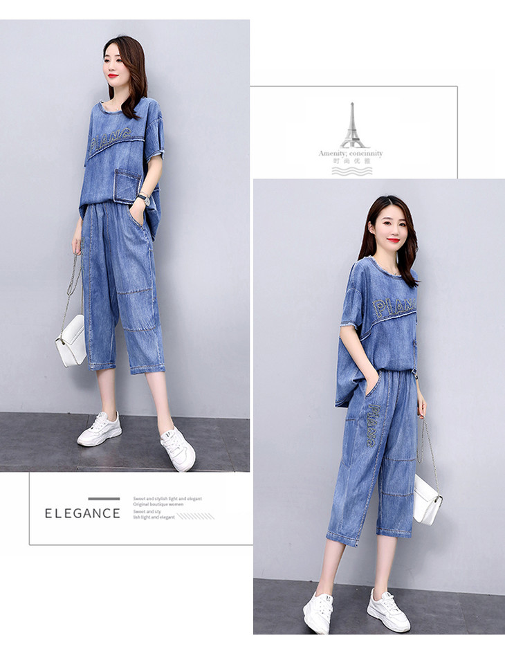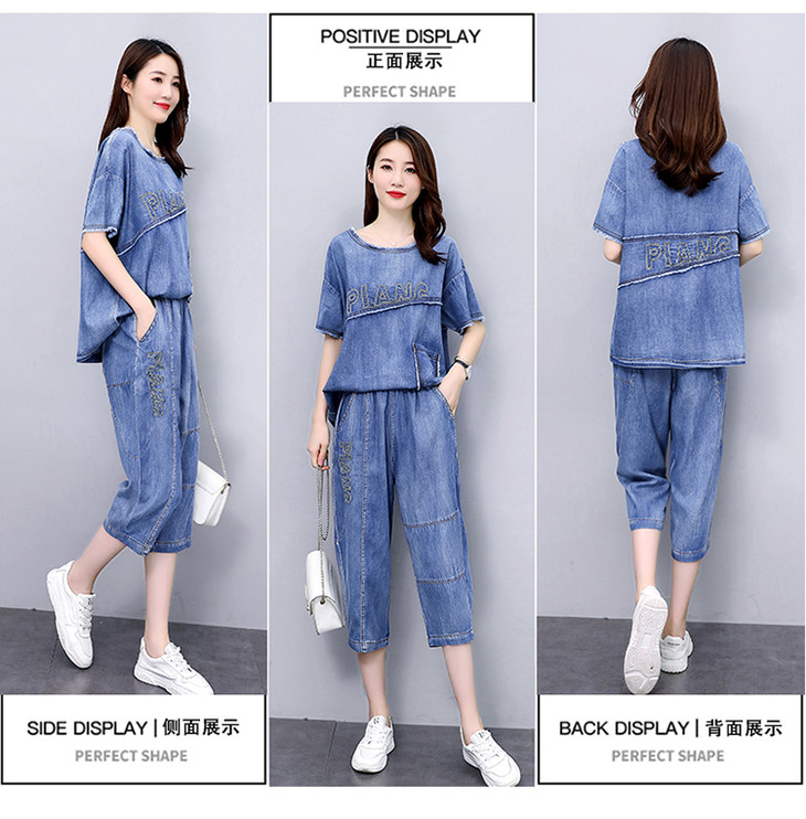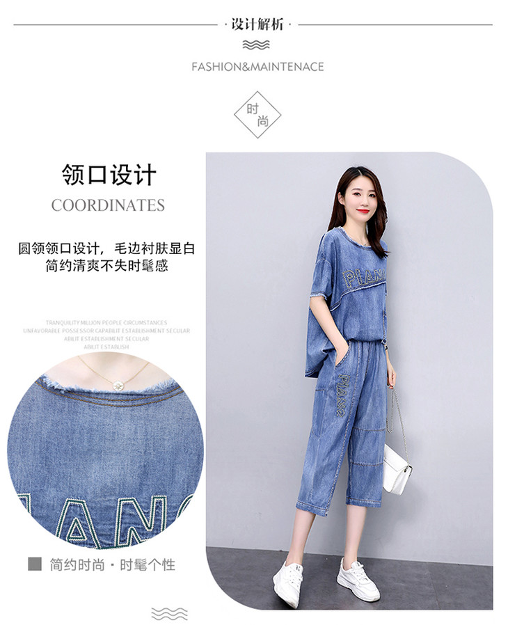KY-LIANGC6635休闲时尚显瘦牛仔阔腿裤套装