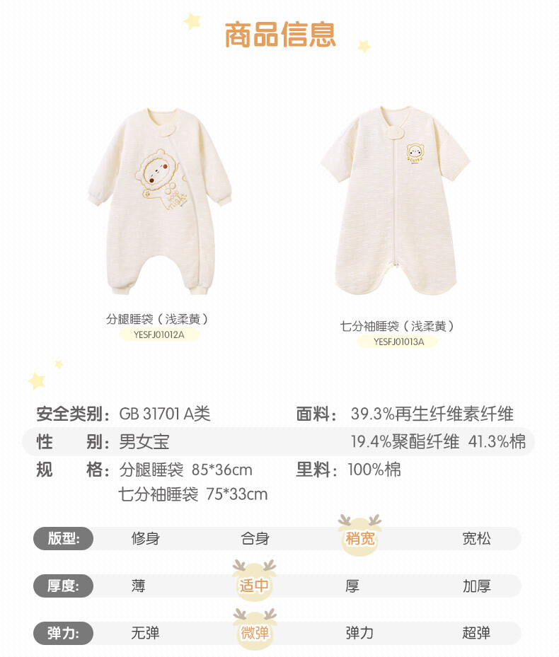 英氏儿童恒温分腿睡袋婴儿睡眠防踢被 秋冬款