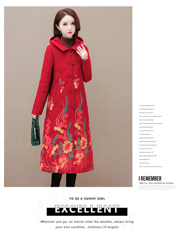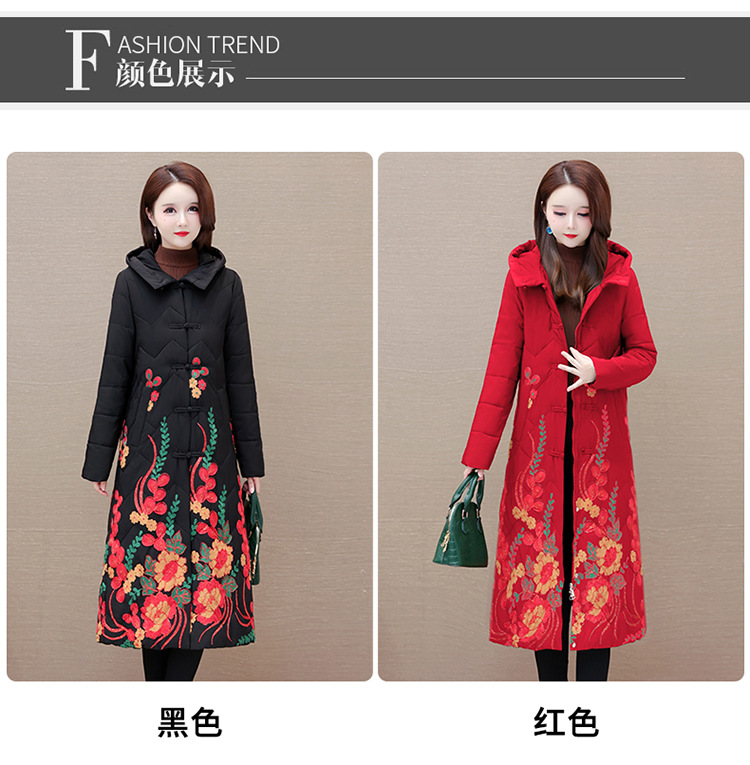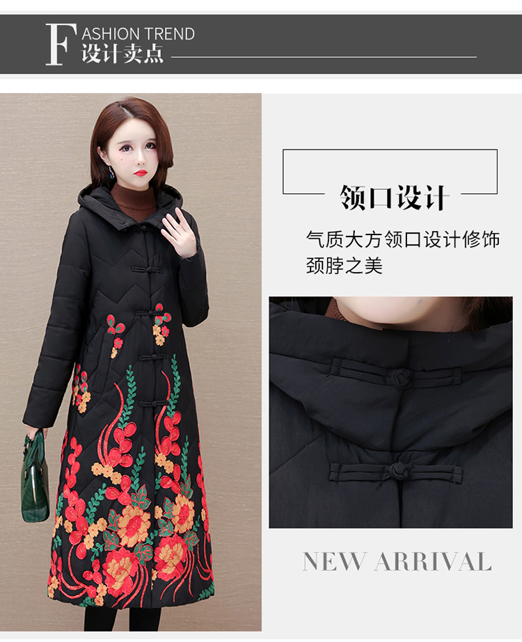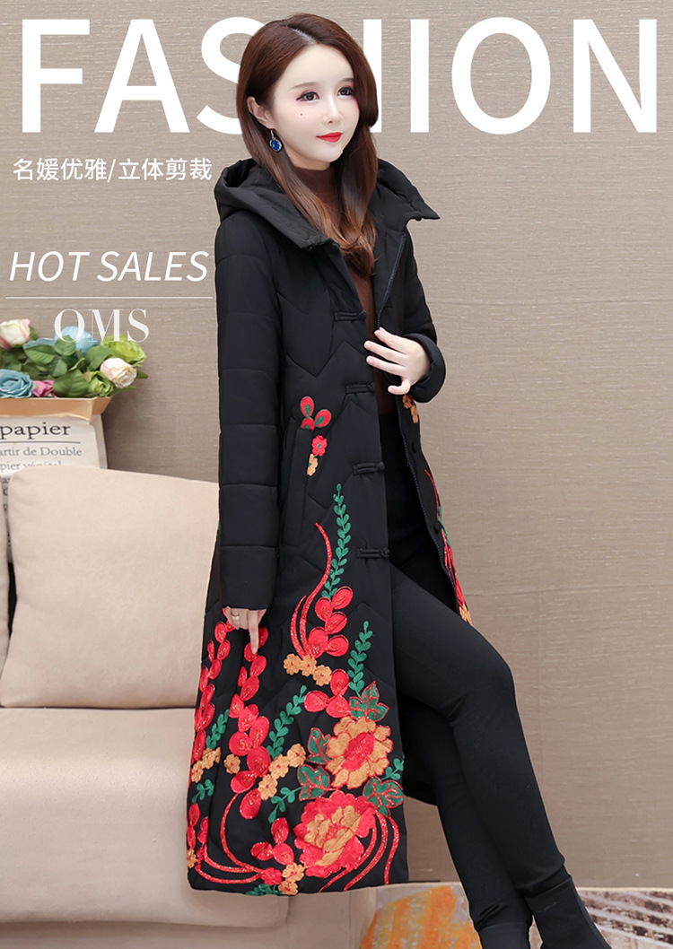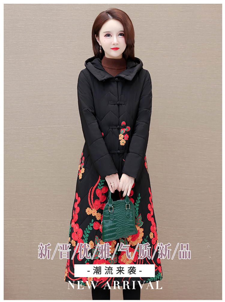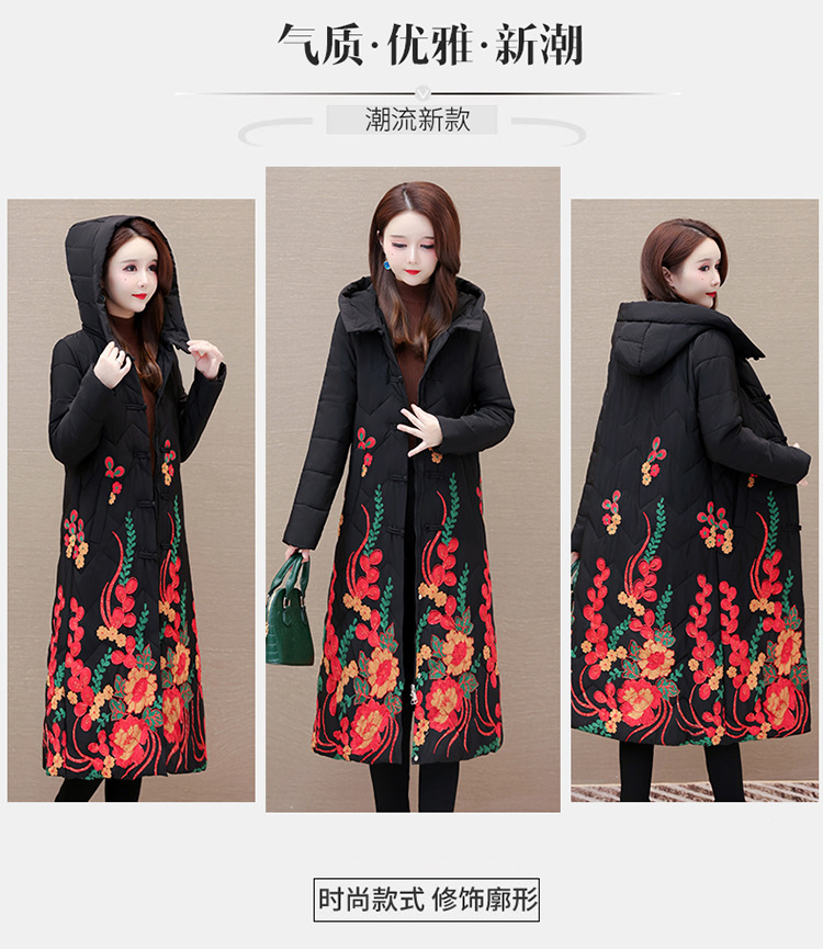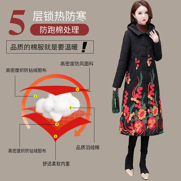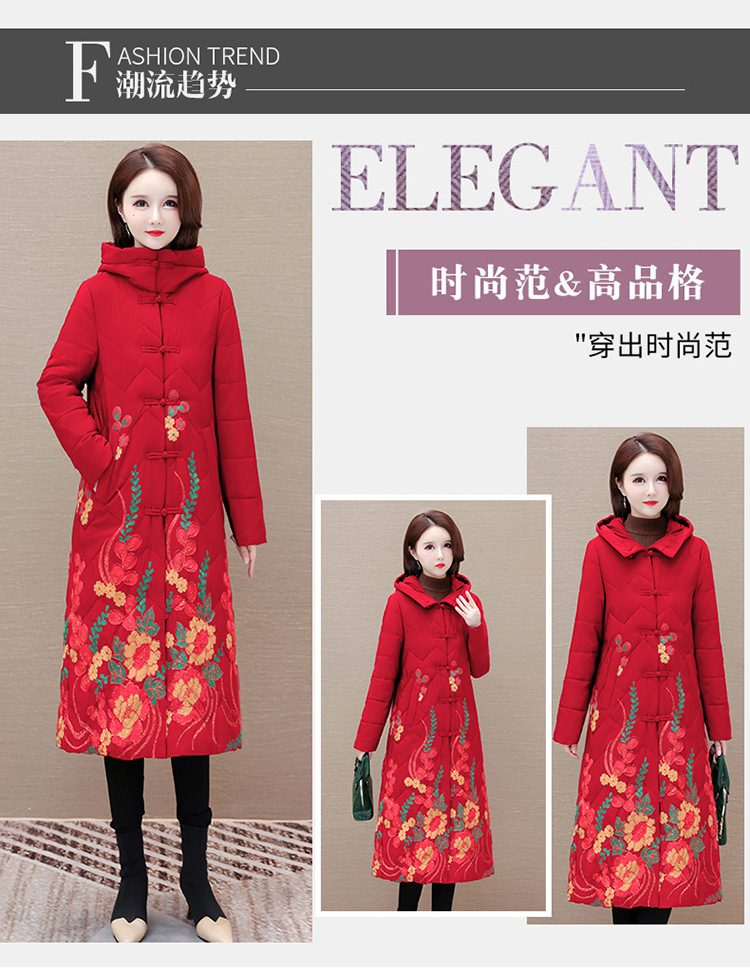 时尚保暖,冬款长款印花中年妈妈装棉服长袖连帽大码修身棉衣QYM-OMS-SDB377-L