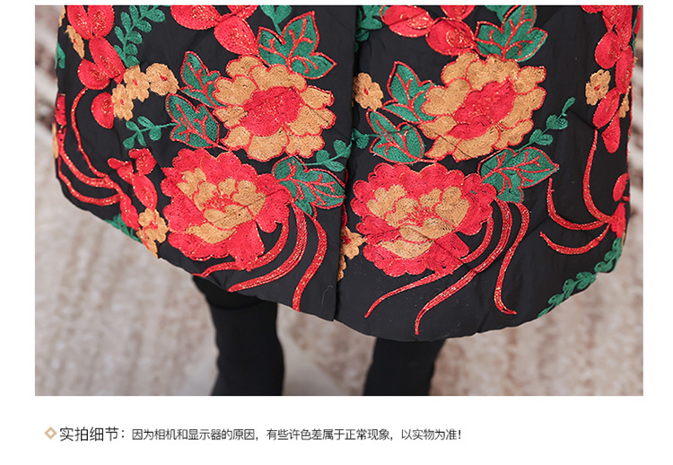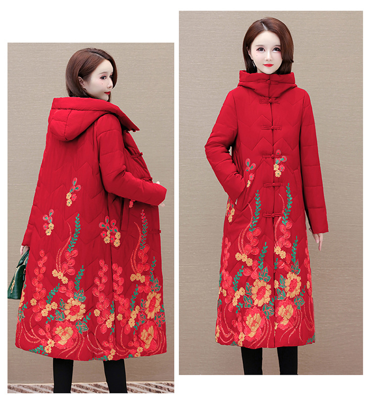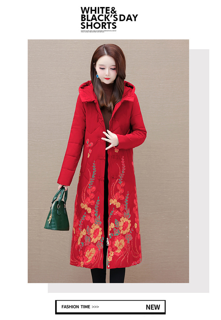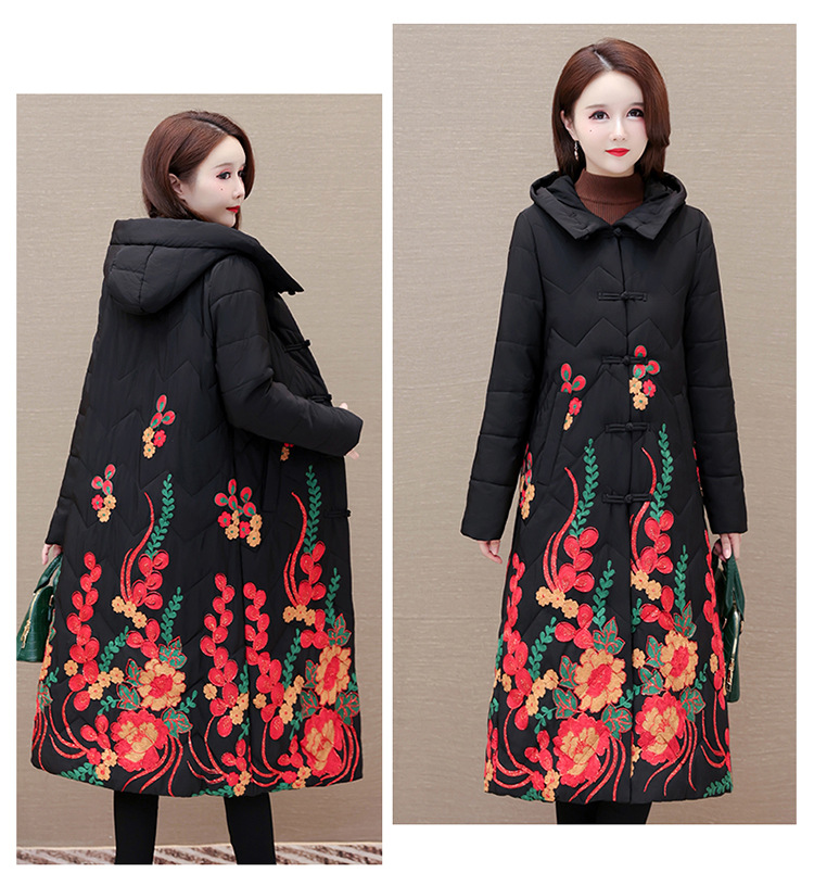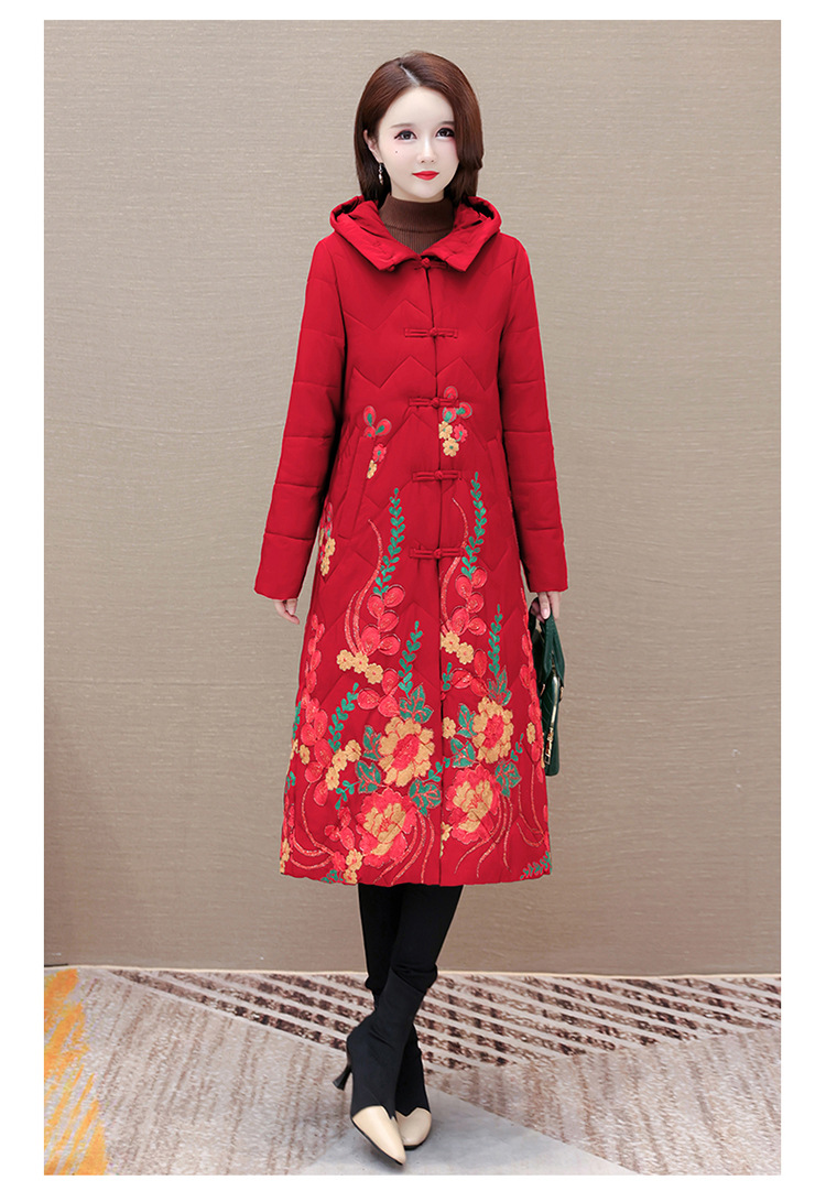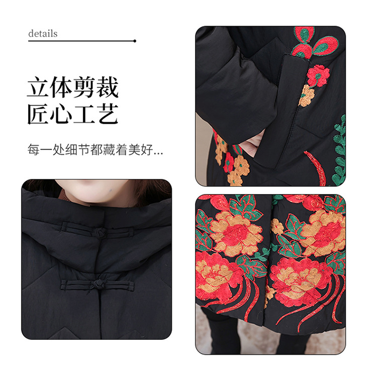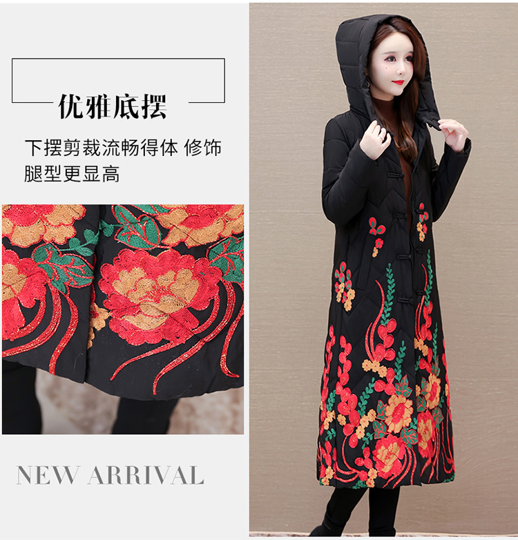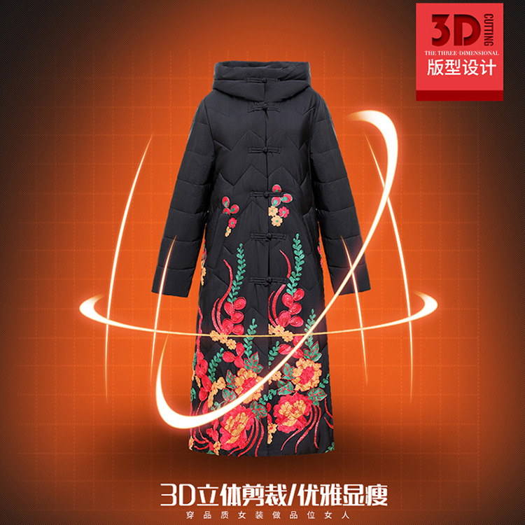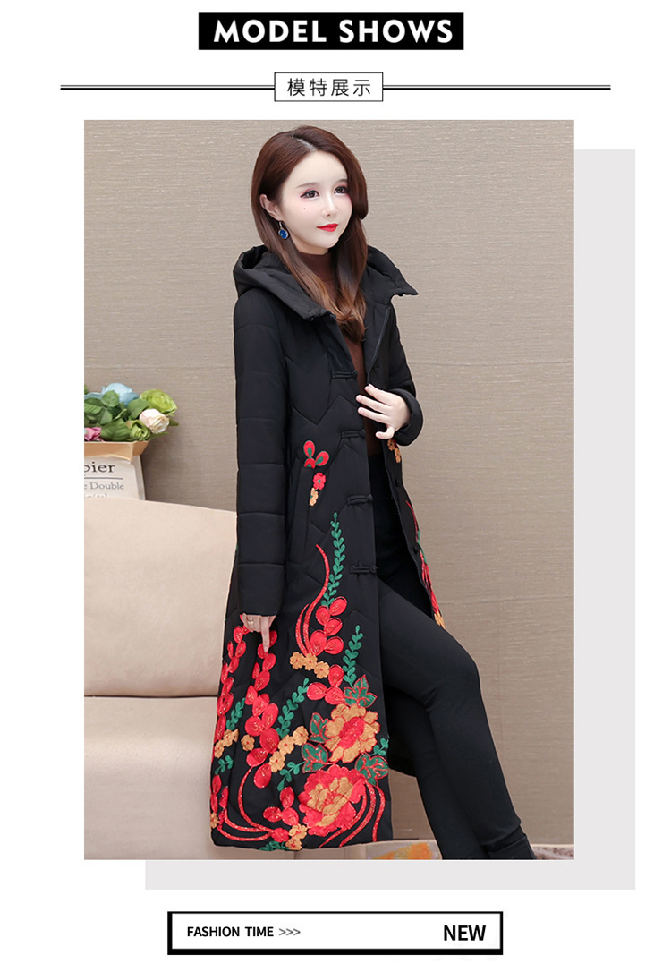 时尚保暖,冬款长款印花中年妈妈装棉服长袖连帽大码修身棉衣QYM-OMS-SDB377-L