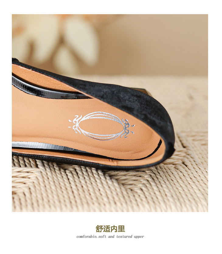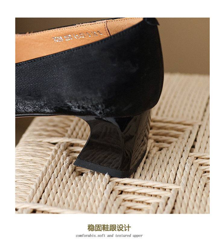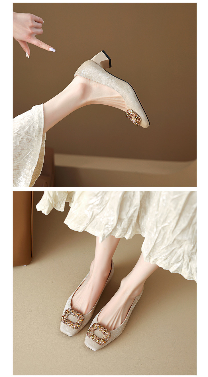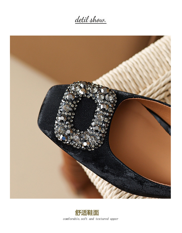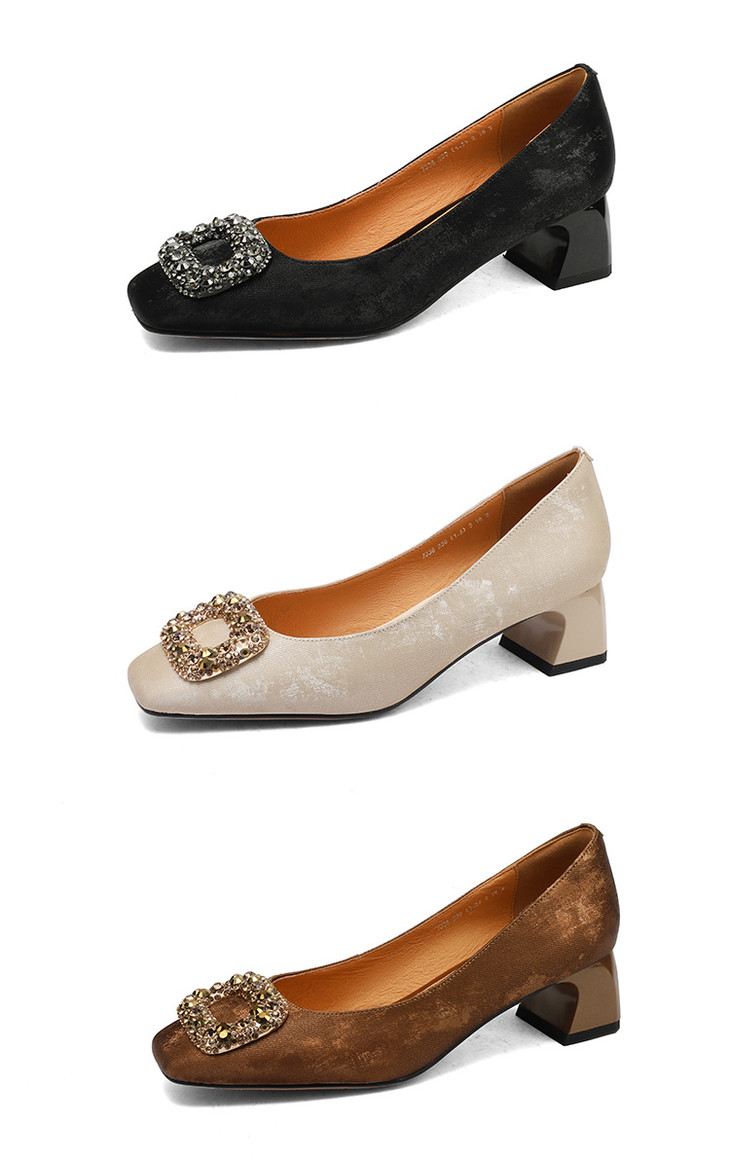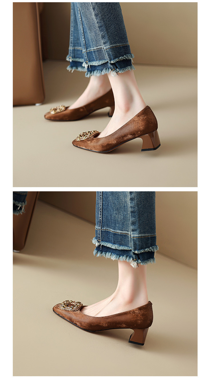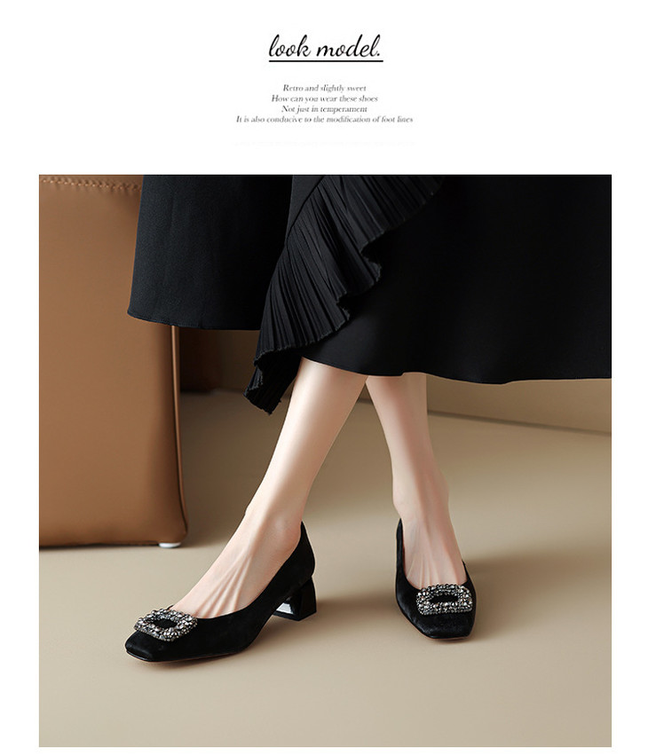【预售5天】复古方头浅口单鞋女新款真皮百搭粗跟水钻方扣一脚蹬通勤低跟单鞋MS-7336