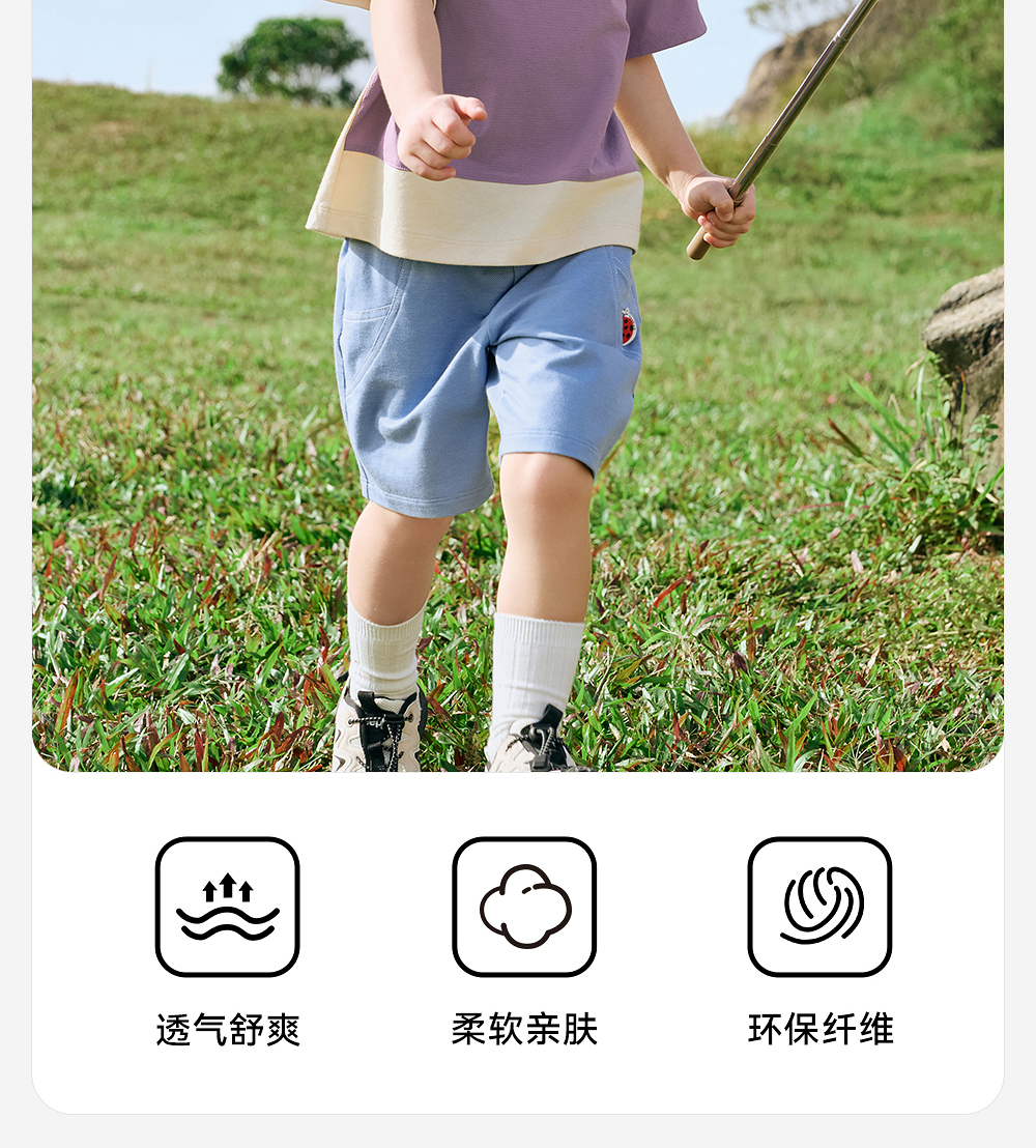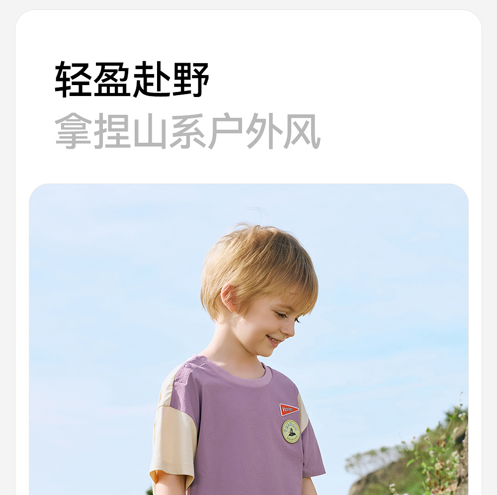 【户外探索系列】英氏儿童T恤上衣夏季短袖透气吸湿速干男童休闲T恤套头衫2025新款