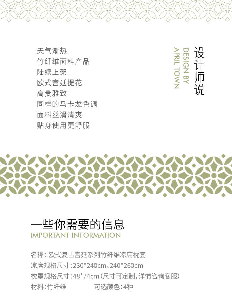 欧式复古宫廷系列竹纤维凉席枕套可机洗可折叠枕套枕罩2024夏季新款