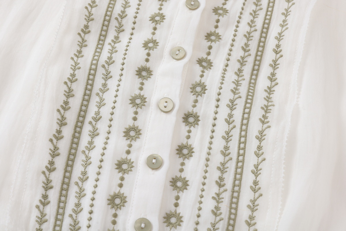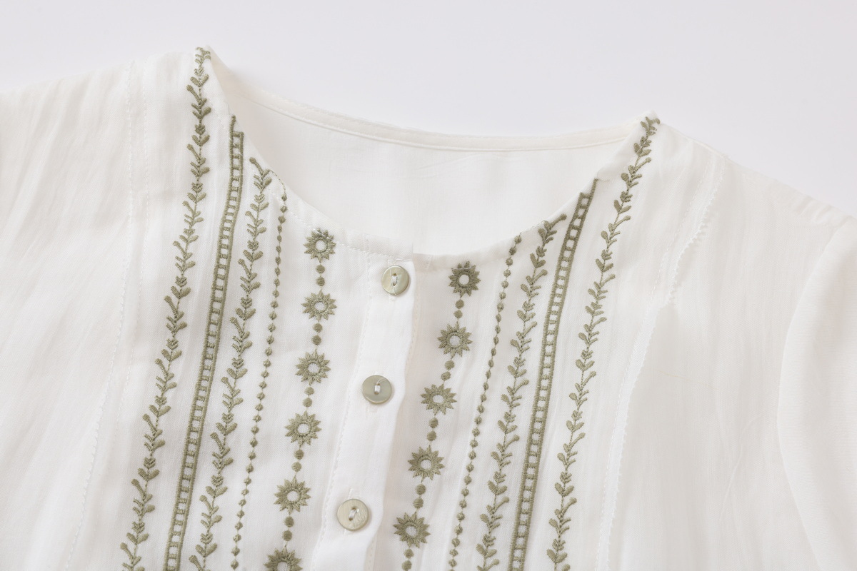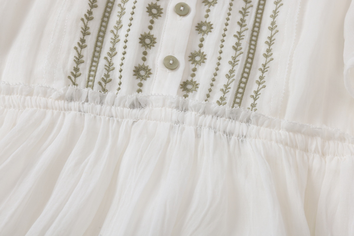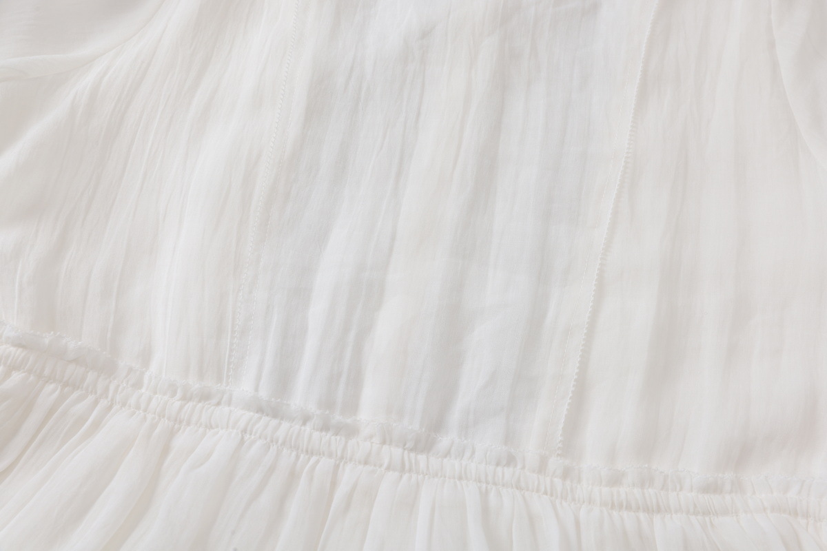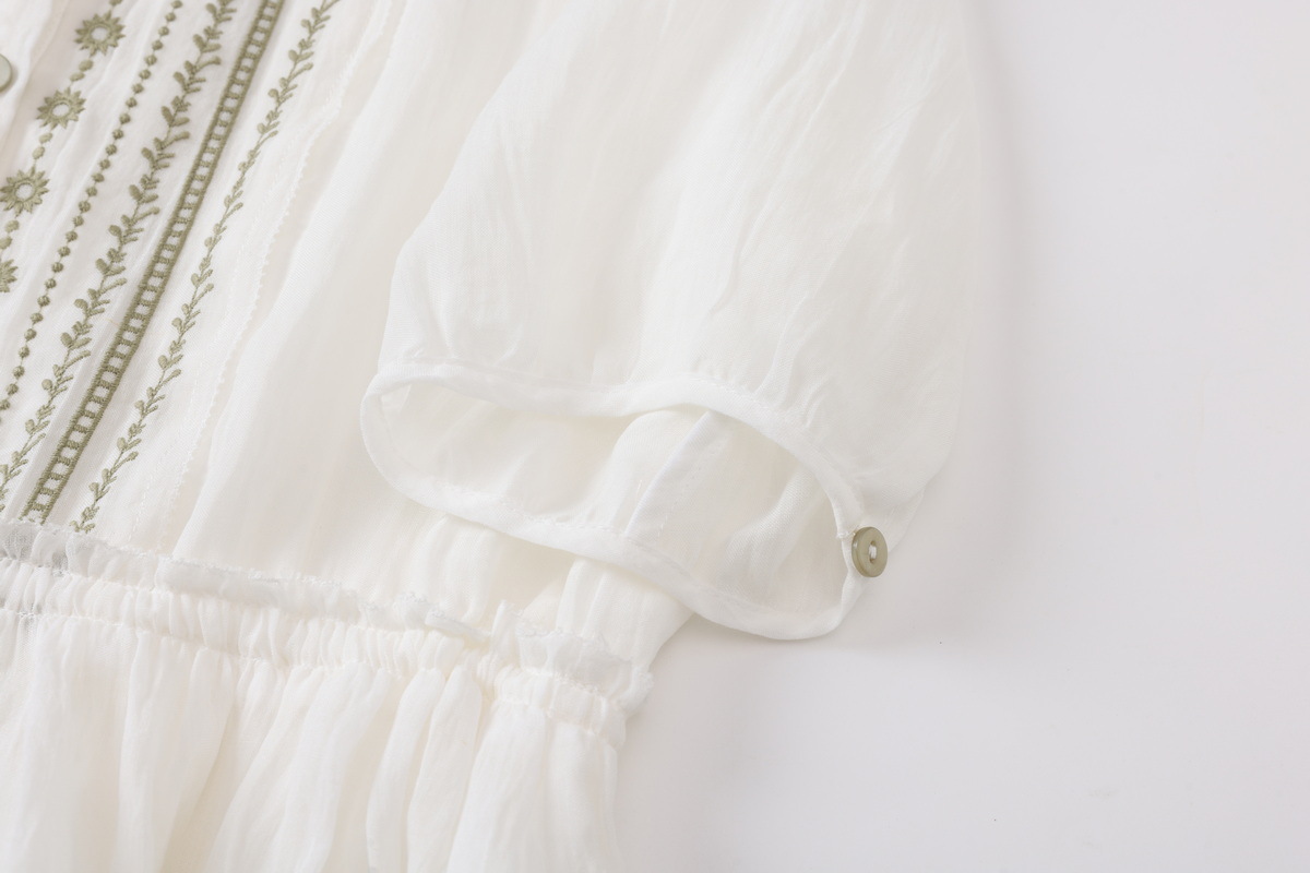 丁摩 白色飘逸细苎麻加捻刺绣短五分袖系带大码显瘦连衣裙HS25803