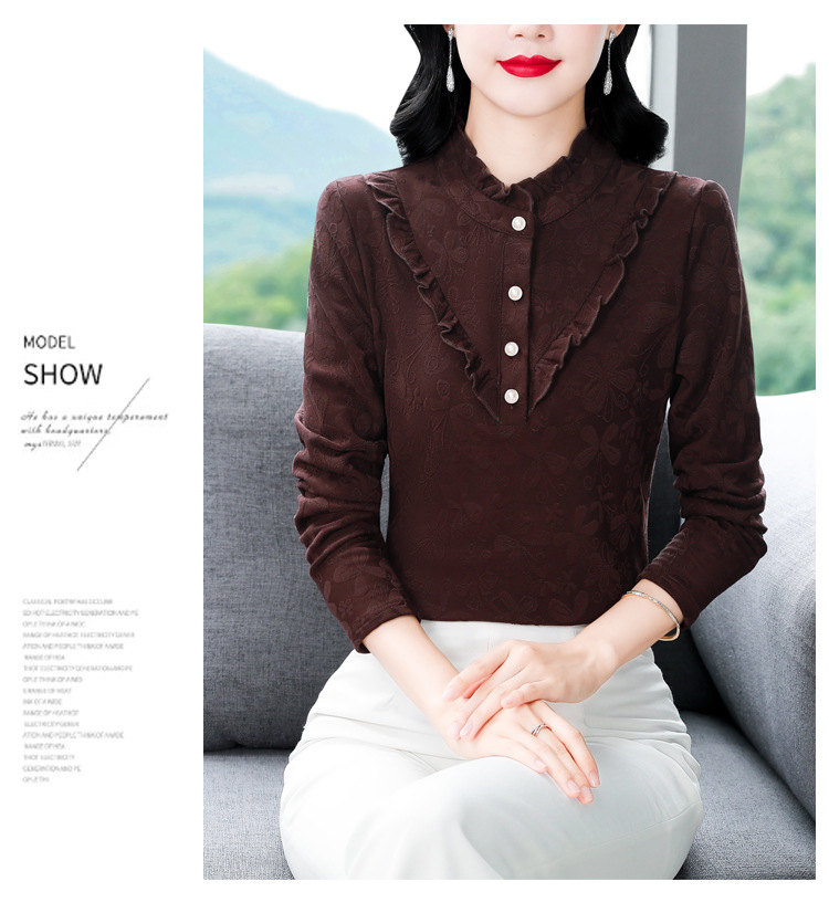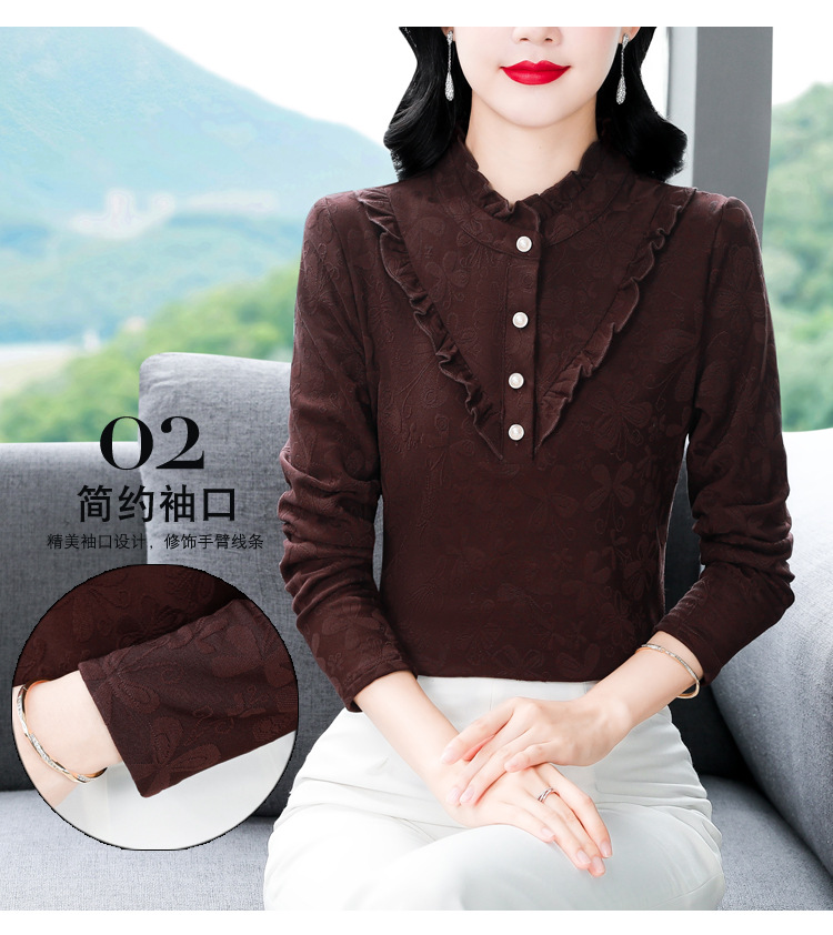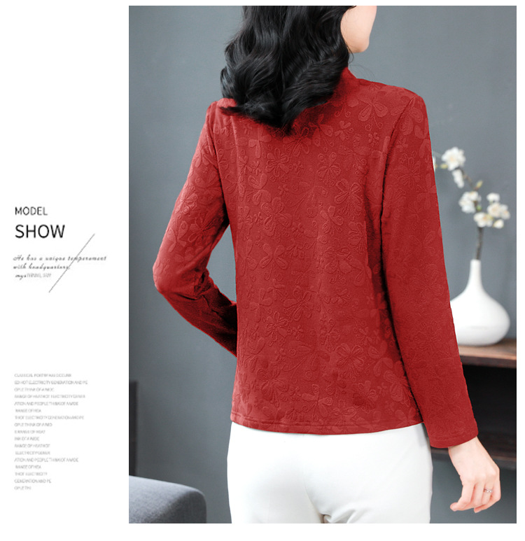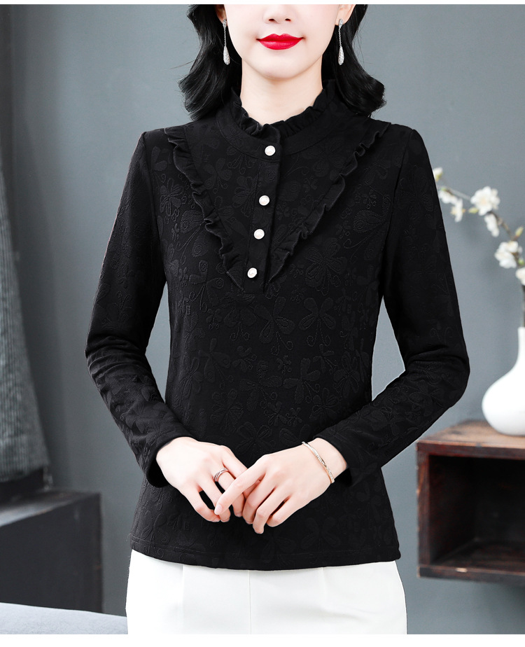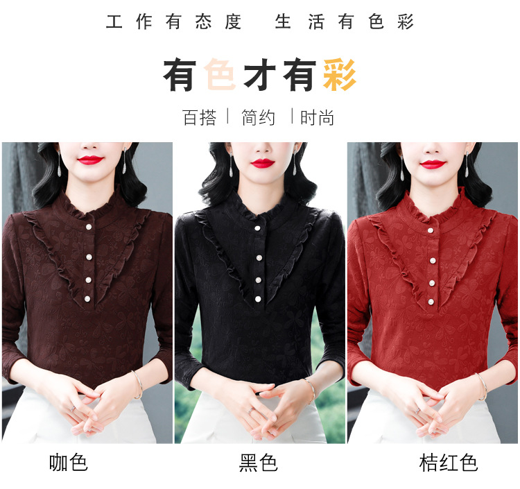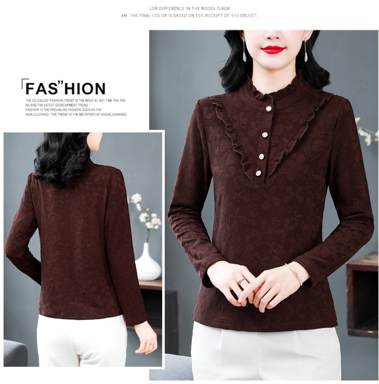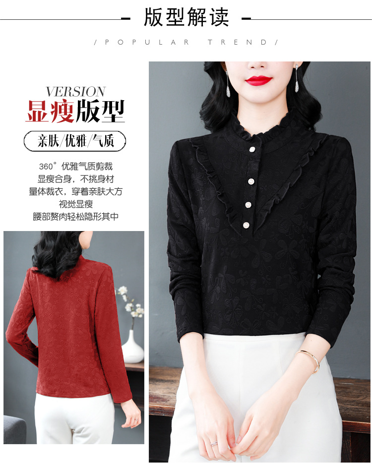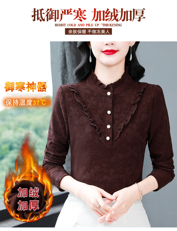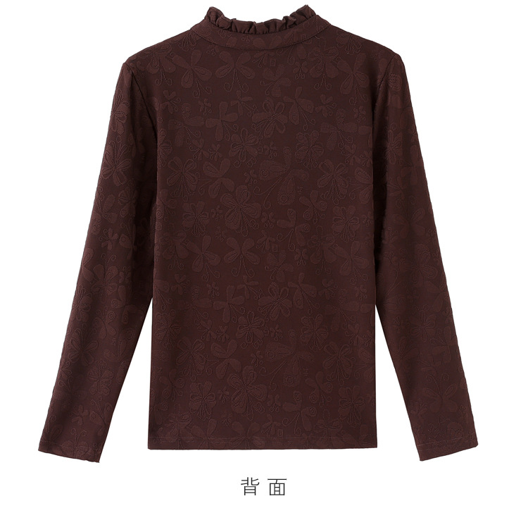 KQL 765G315加绒加厚三色半高领荷叶边打底衫妈妈装t恤