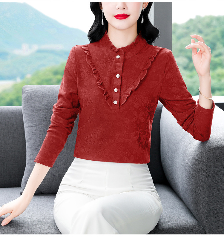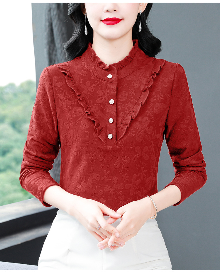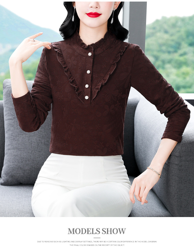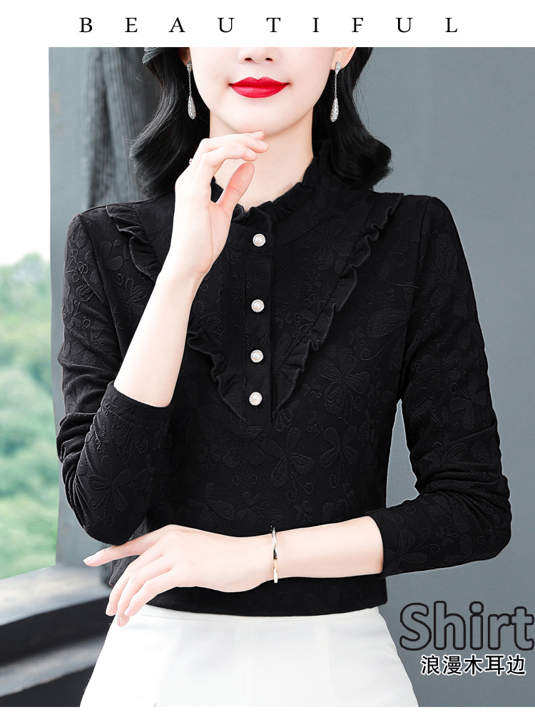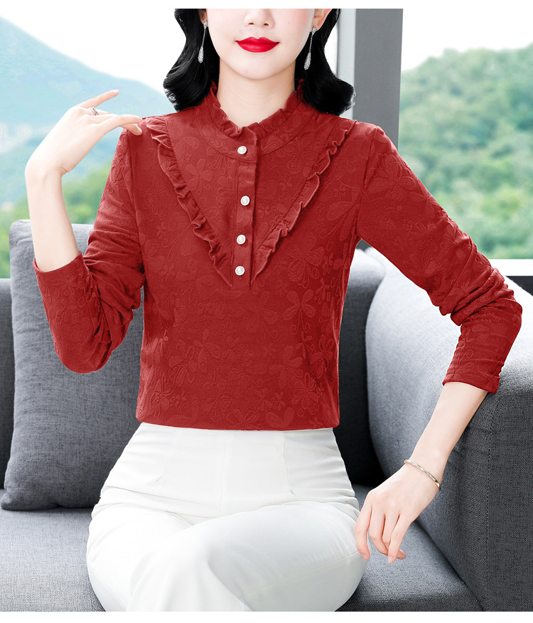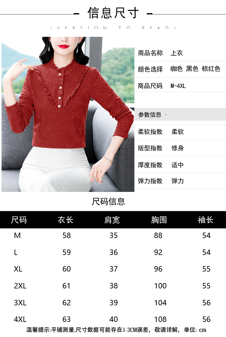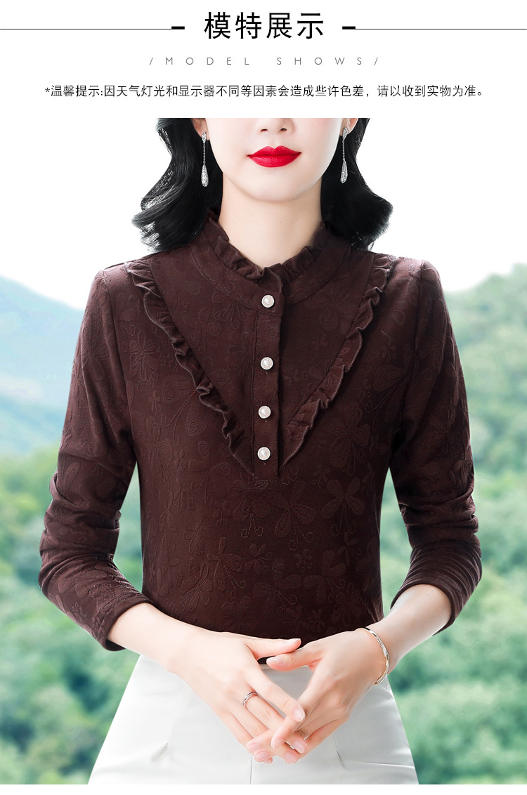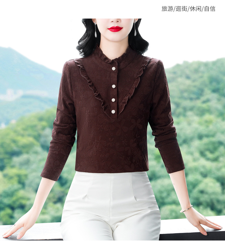 KQL 765G315加绒加厚三色半高领荷叶边打底衫妈妈装t恤