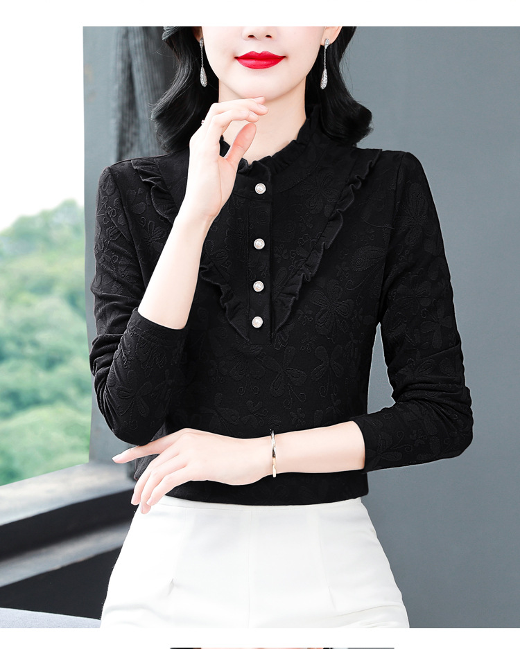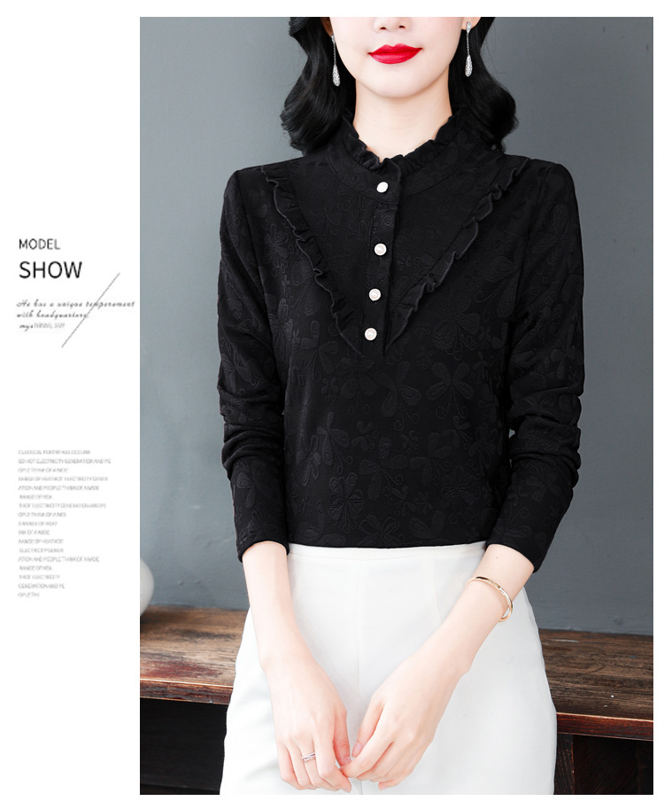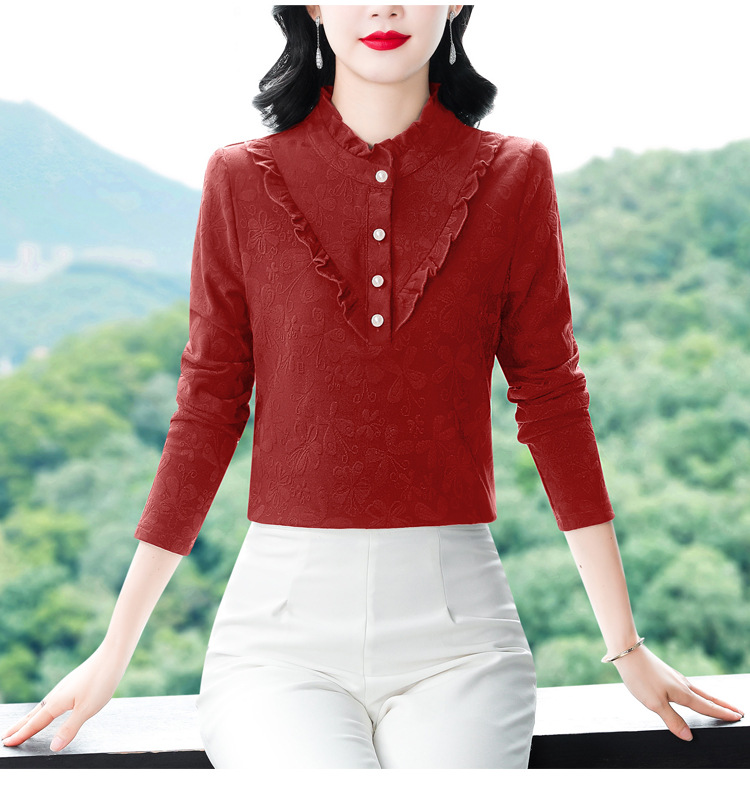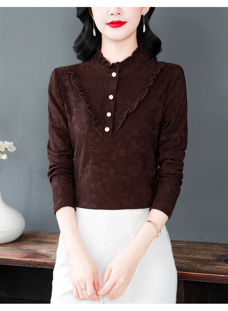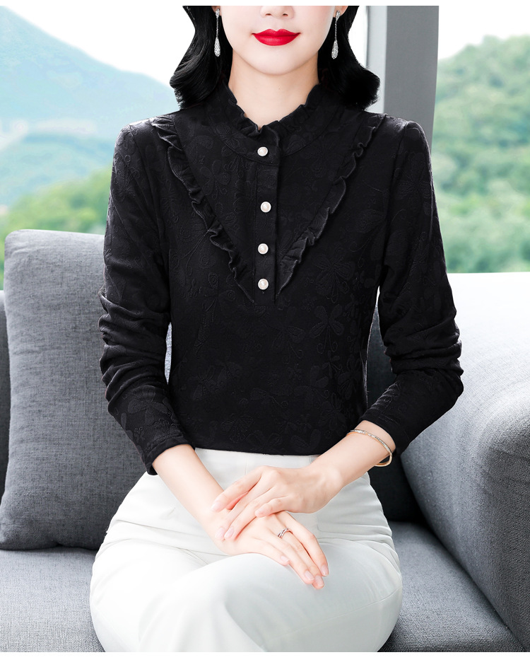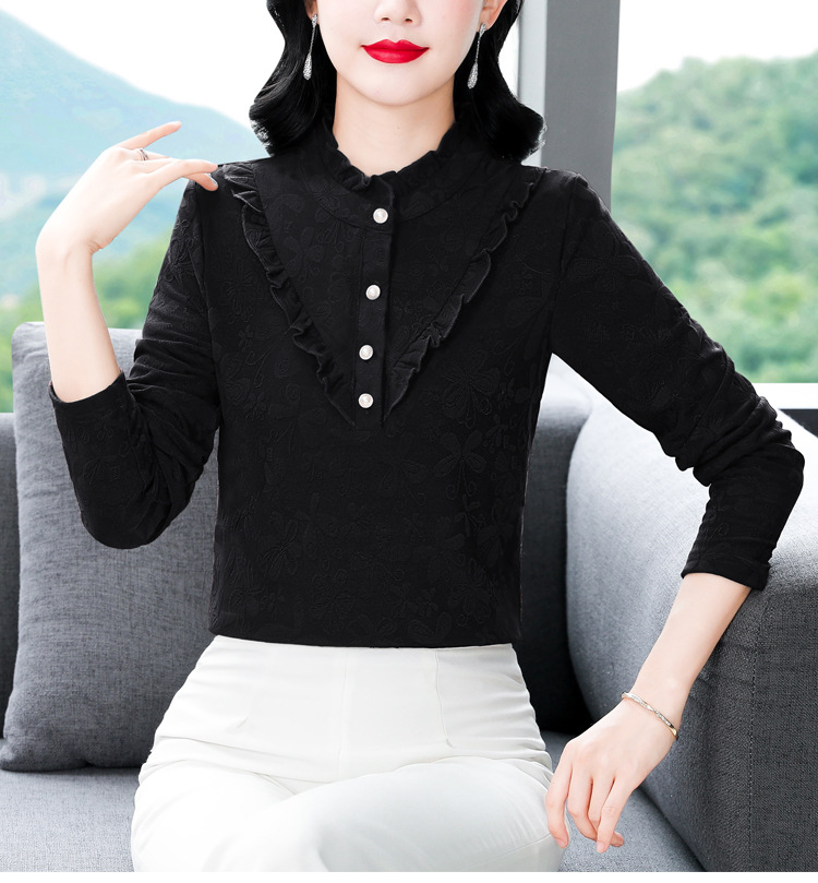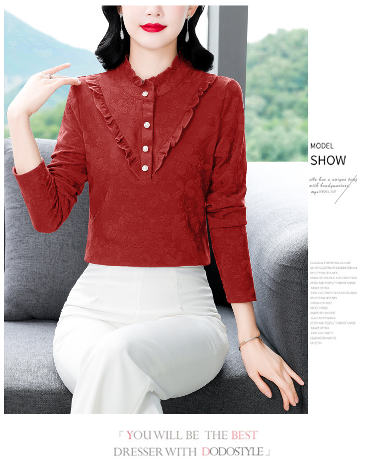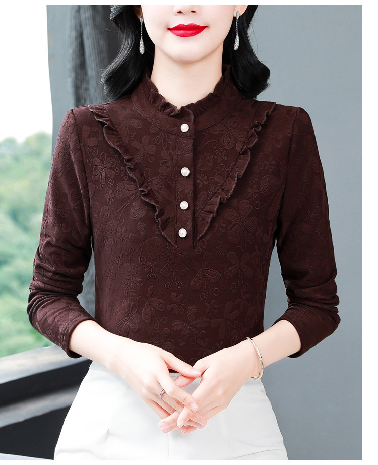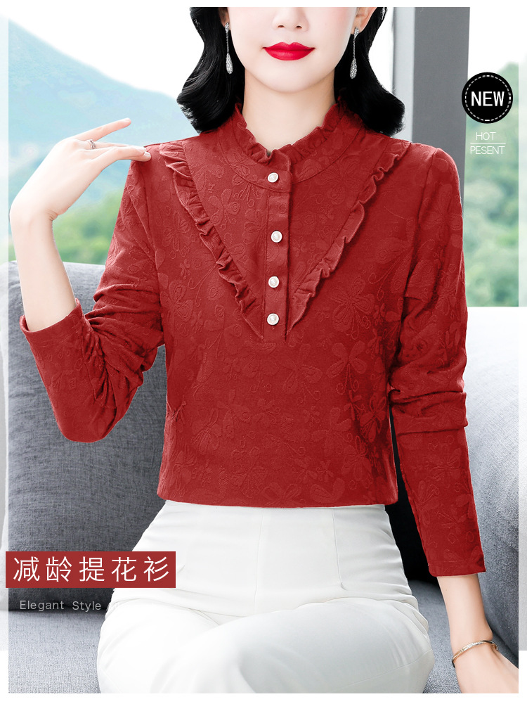 KQL 765G315加绒加厚三色半高领荷叶边打底衫妈妈装t恤