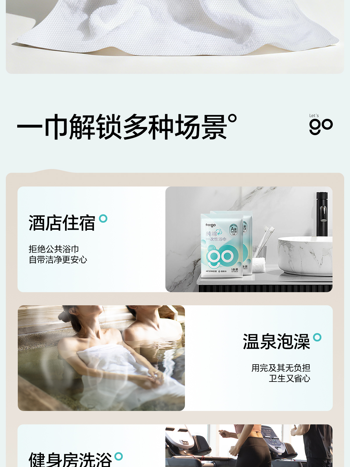 Freego 一次性纯棉浴巾「A类纯棉灭菌加厚」