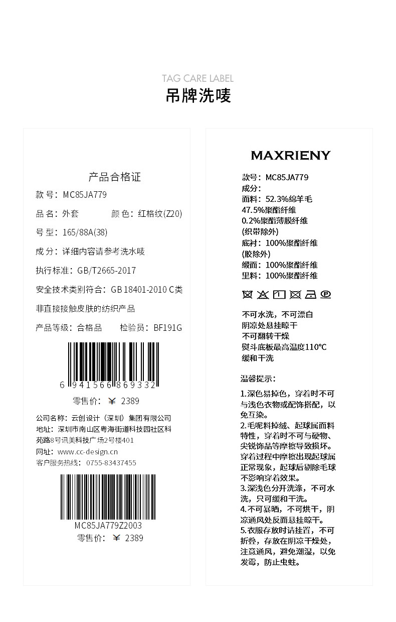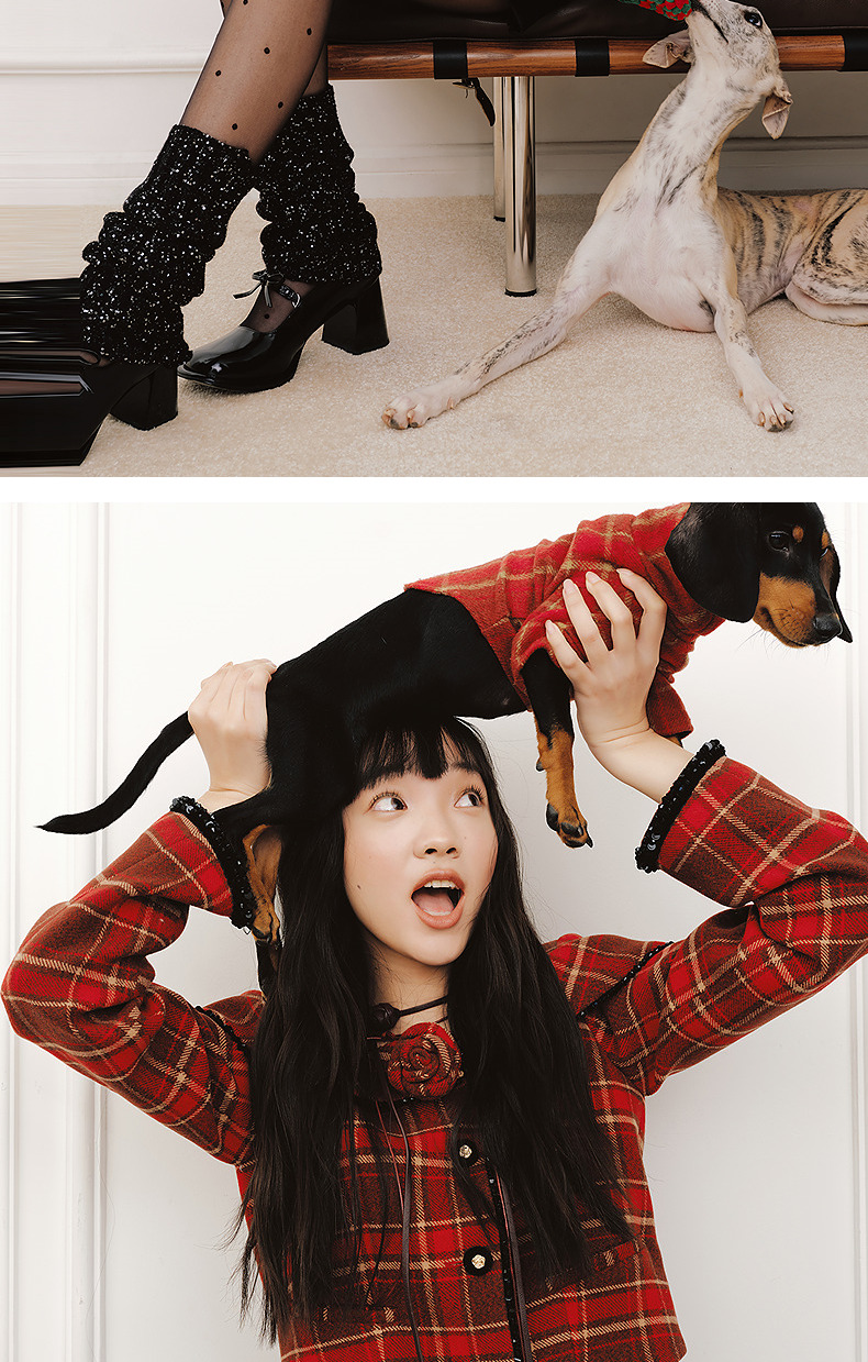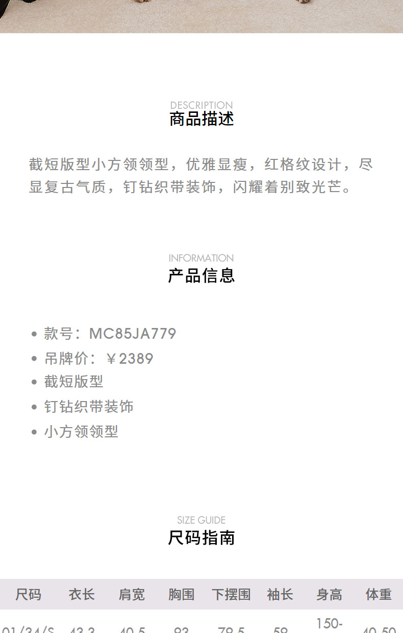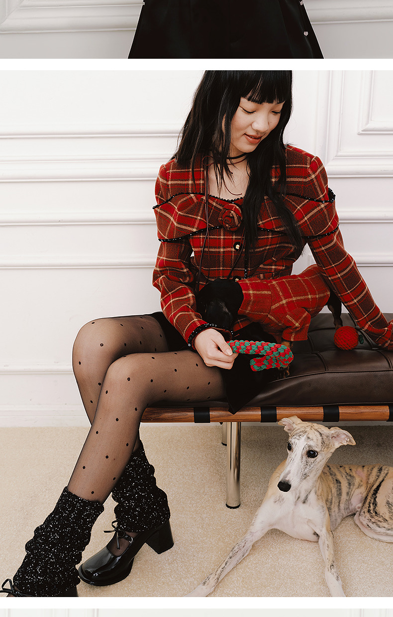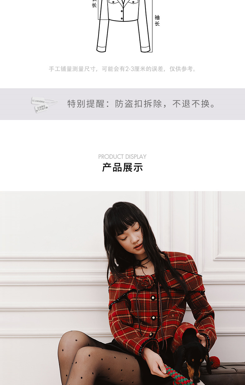 MAXRIENY【商场同款-节庆穿搭新年红】复古优雅感红格纹外套女(货号:MC85JA779)