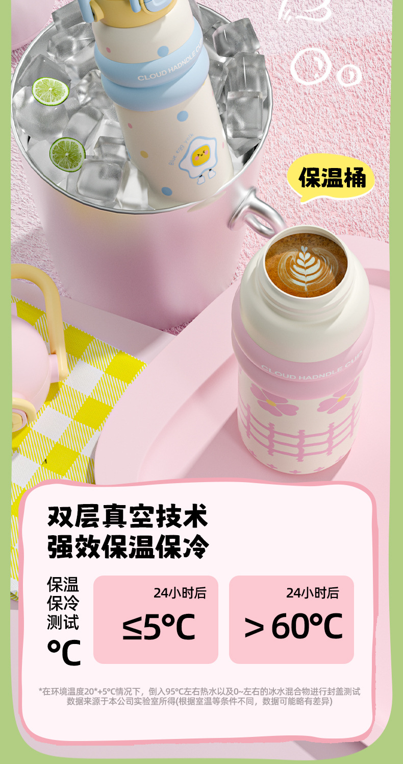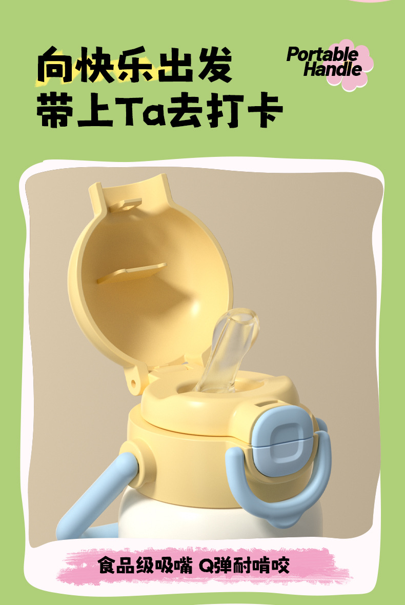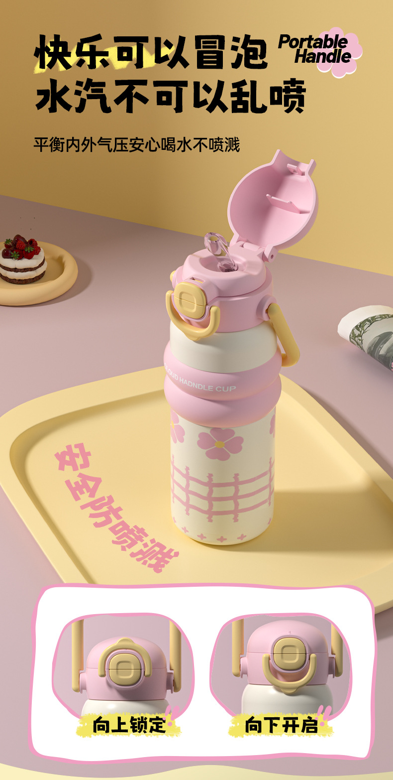 【一杯多饮❗️原创趣味图案】卡通双弹可爱杯子女生高颜值316保温杯手提便携吸管铃铃保温水杯。jc