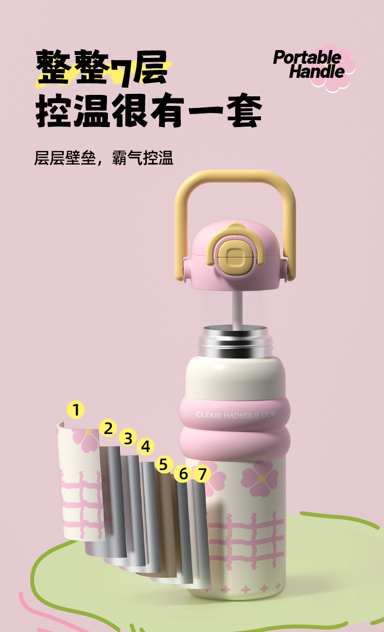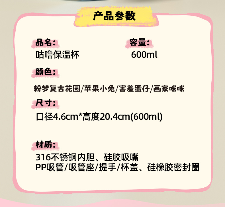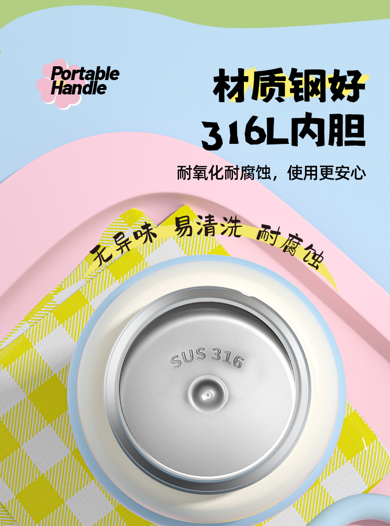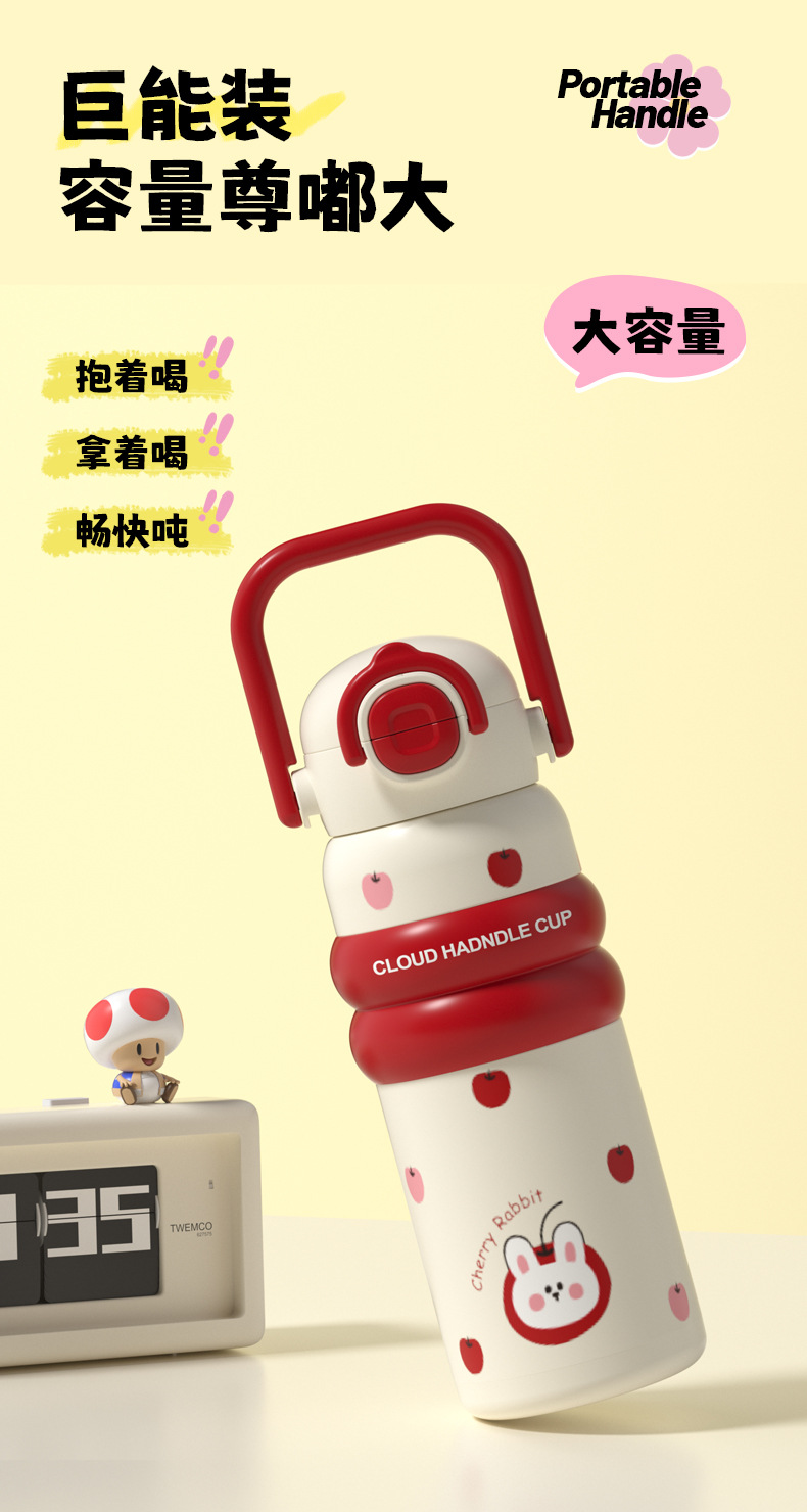 【一杯多饮❗️原创趣味图案】卡通双弹可爱杯子女生高颜值316保温杯手提便携吸管铃铃保温水杯。jc