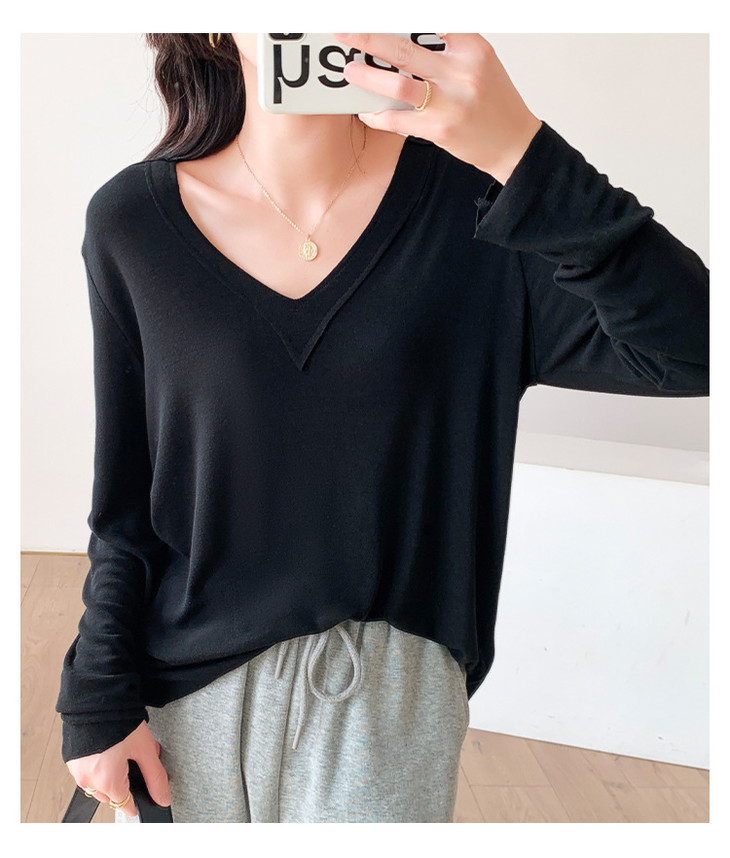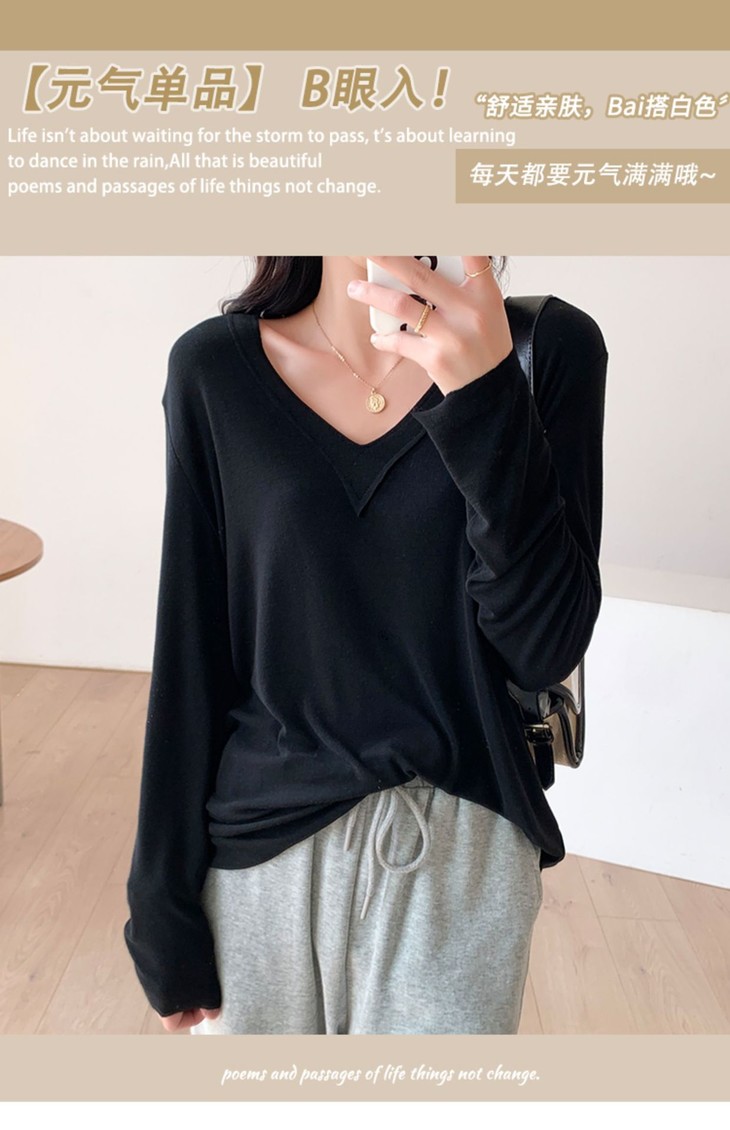 CPMY7162新款时尚气质休闲宽松显瘦百搭V领长袖打底衫
