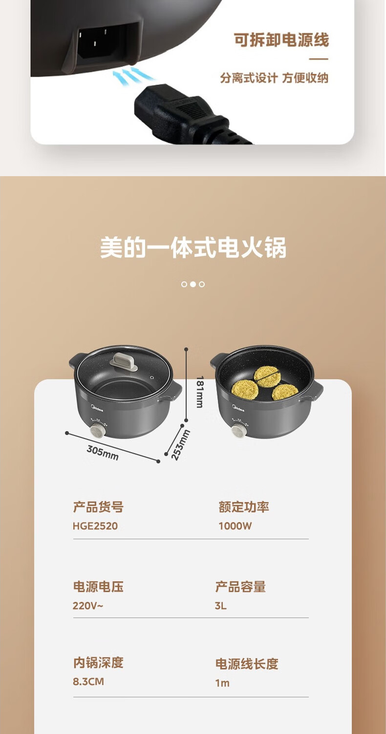 【安达联帮&美的&仅限快递】电火锅HGE2520(厂家直发)