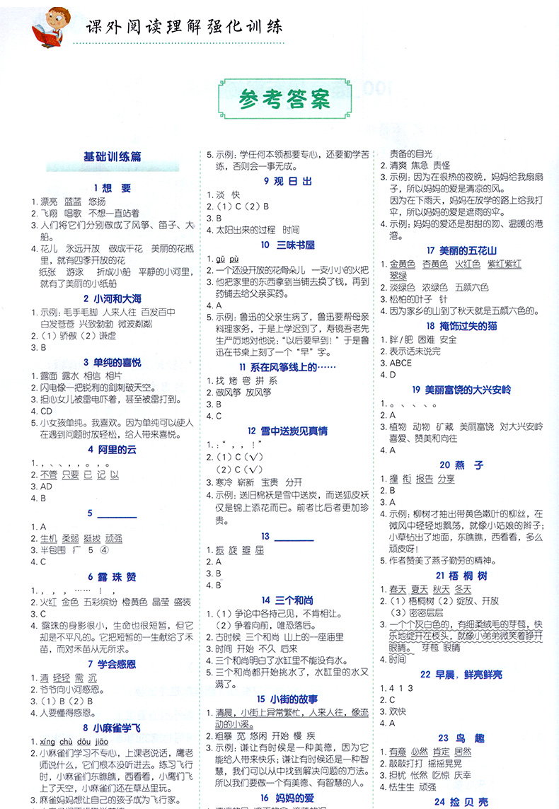 小学语文课外阅读理解强化训练100分三年级(全一册)彩绘版